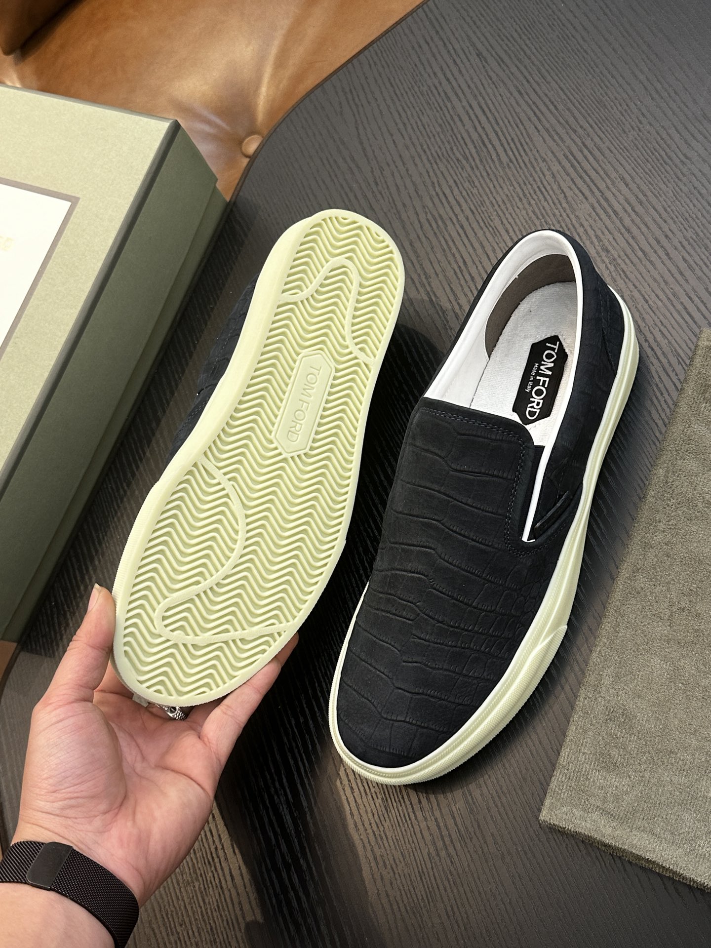 这款鞋子是AAAAA 1:1 质量 (非常棒). 使用了和原版一模一样的材料. 商标部分也保持了和汤姆福特/Tom Ford一样. 图片拍摄是实物鞋子拍摄, 您所收到的实物保证和我们图片一模一样.
