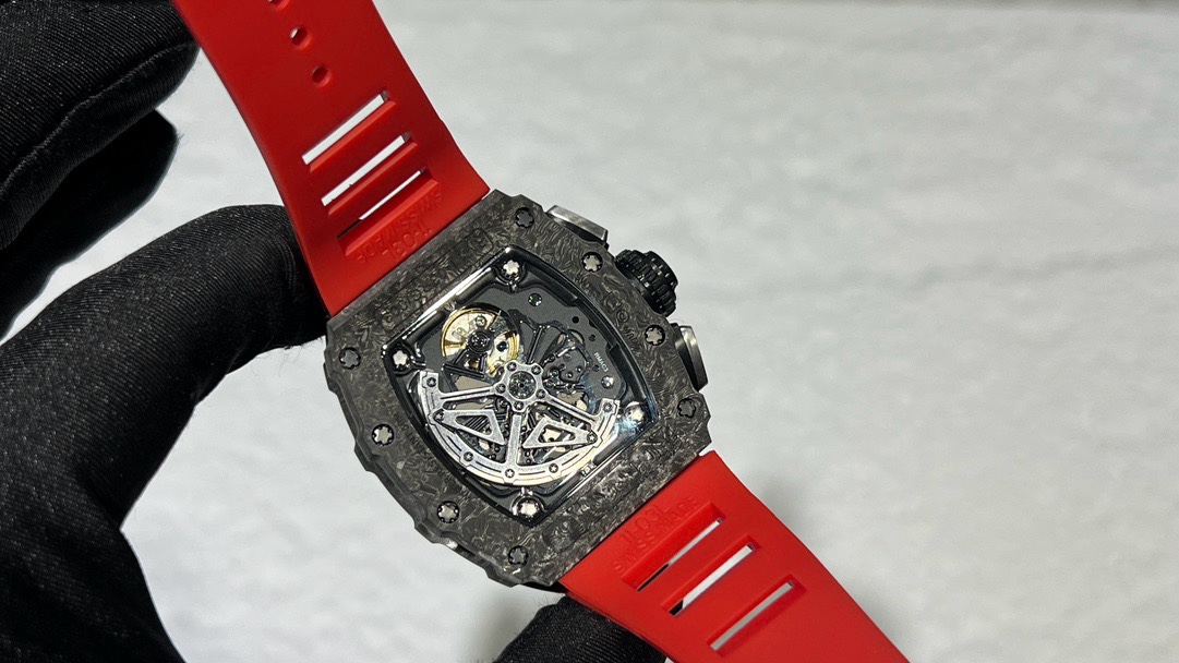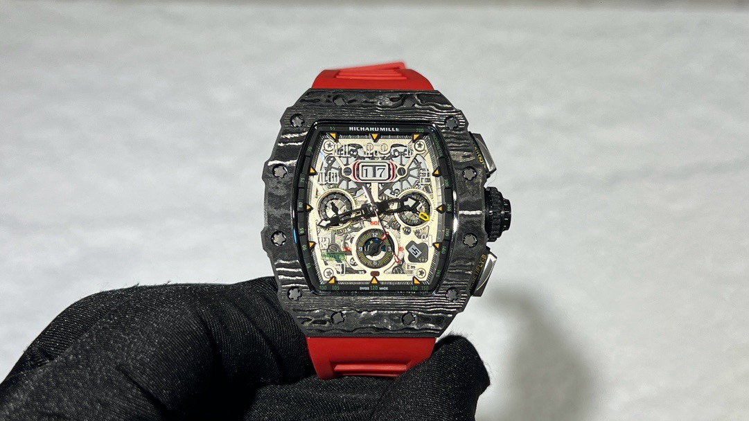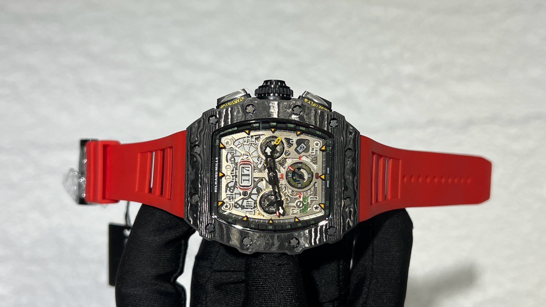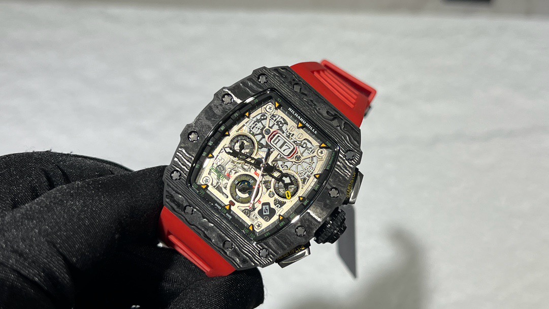 这款手表是AAAAA 1:1 质量 (非常棒). 使用了和原版一模一样的材料. 商标部分也保持了和理查德·米尔/Richard Mille一样. 图片拍摄是实物手表拍摄, 您所收到的实物保证和我们图片一模一样.