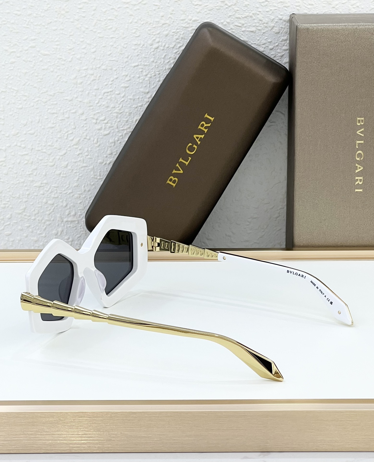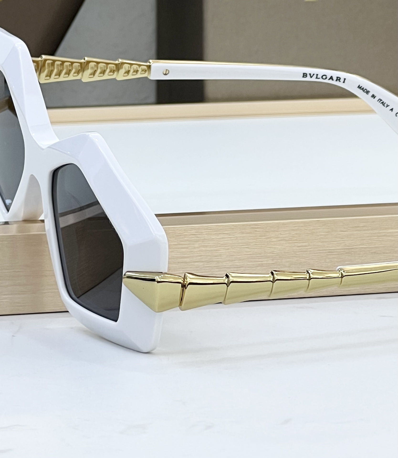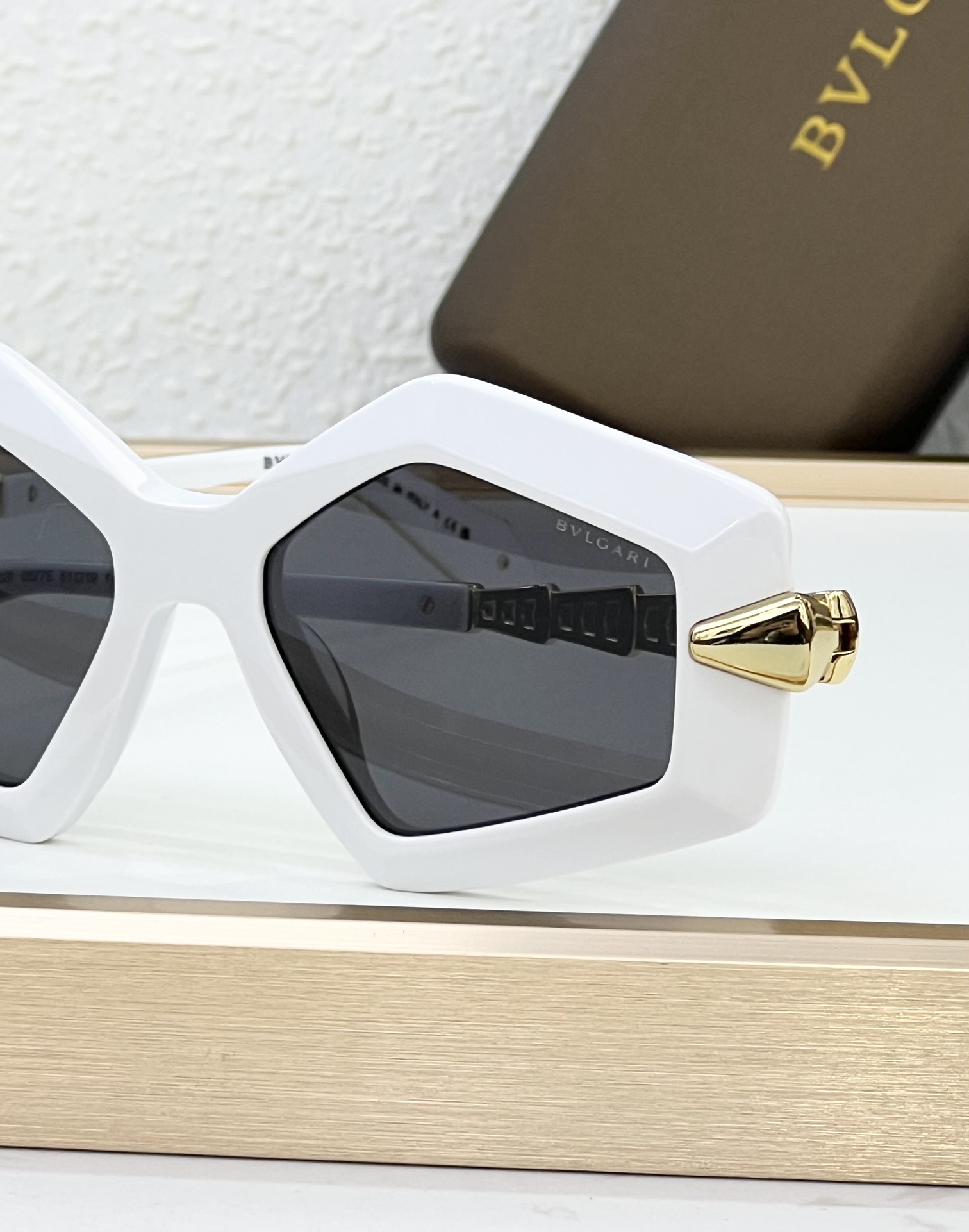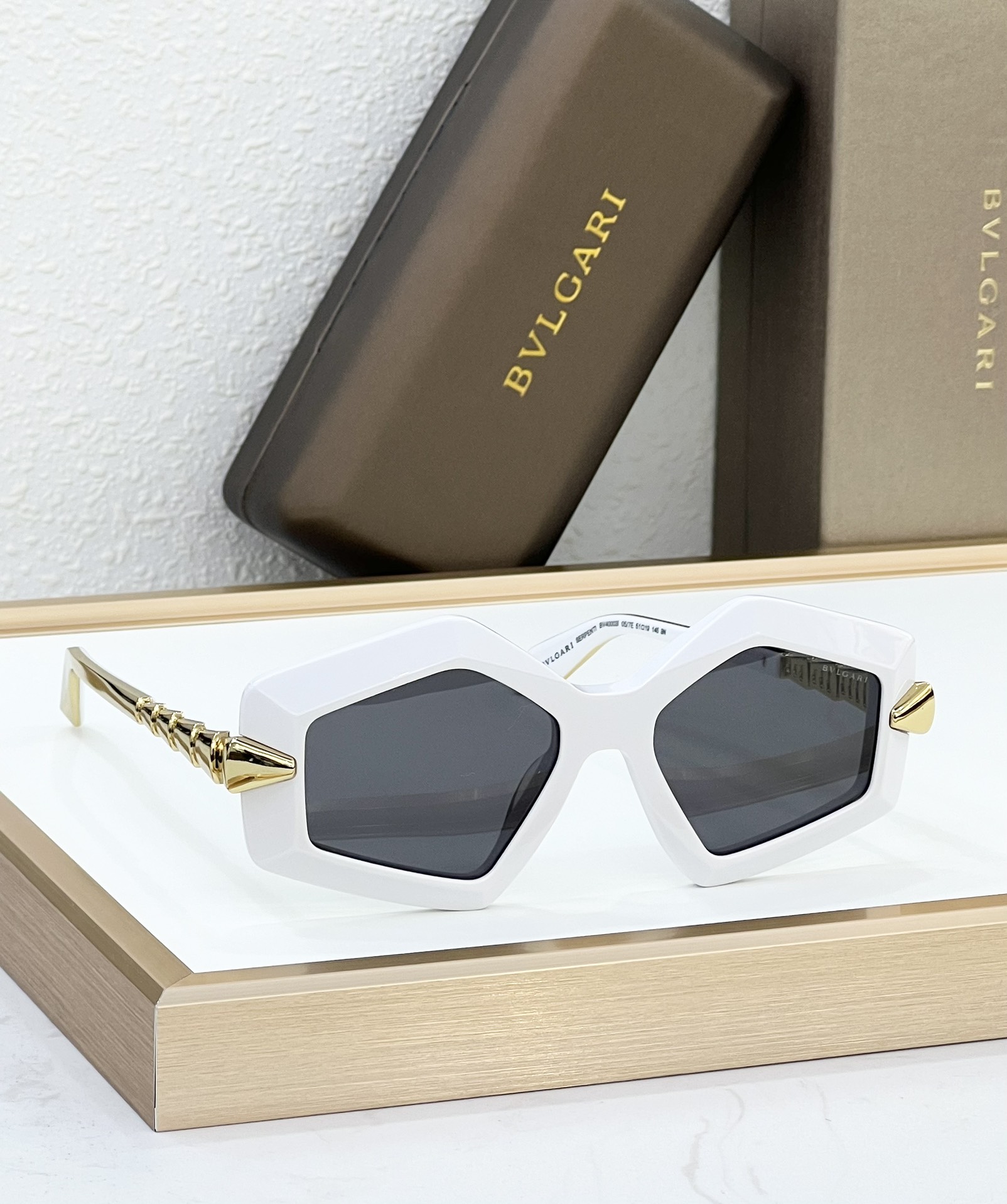 这款太阳眼镜是AAAAA 1:1 质量 (非常棒). 使用了和原版一模一样的材料. 商标部分也保持了和宝格丽/Bulgari一样. 图片拍摄是实物太阳眼镜拍摄, 您所收到的实物保证和我们图片一模一样.