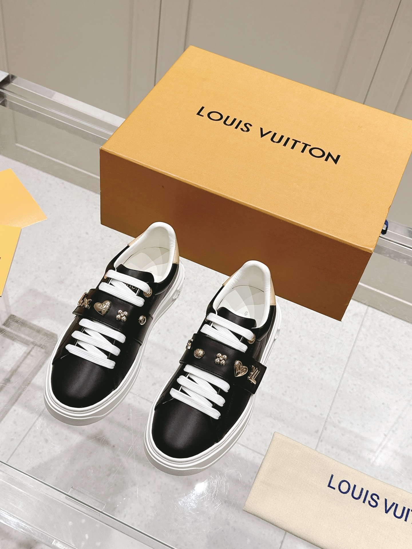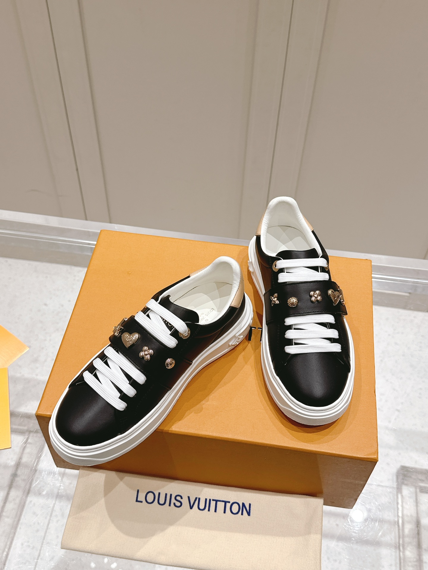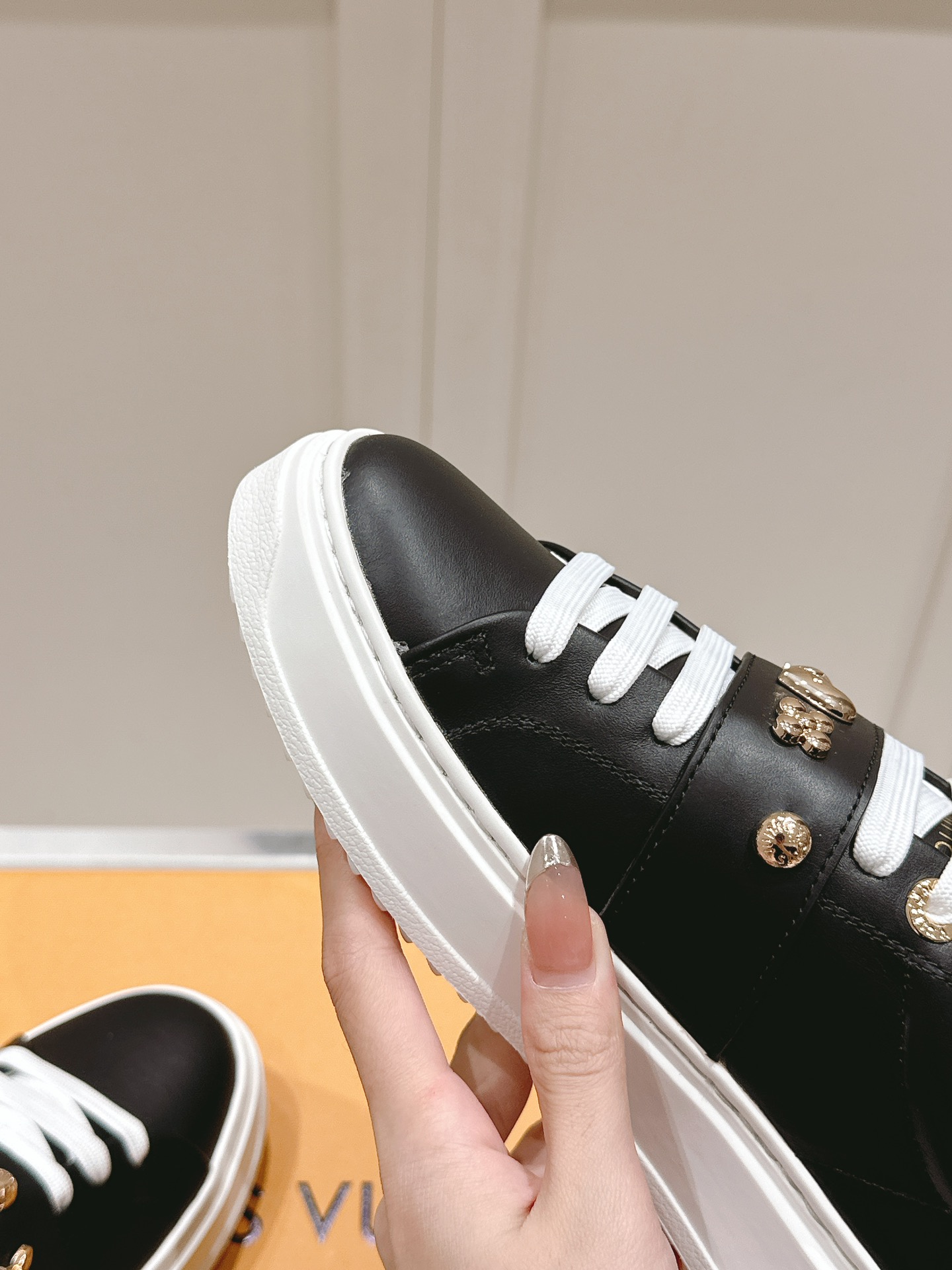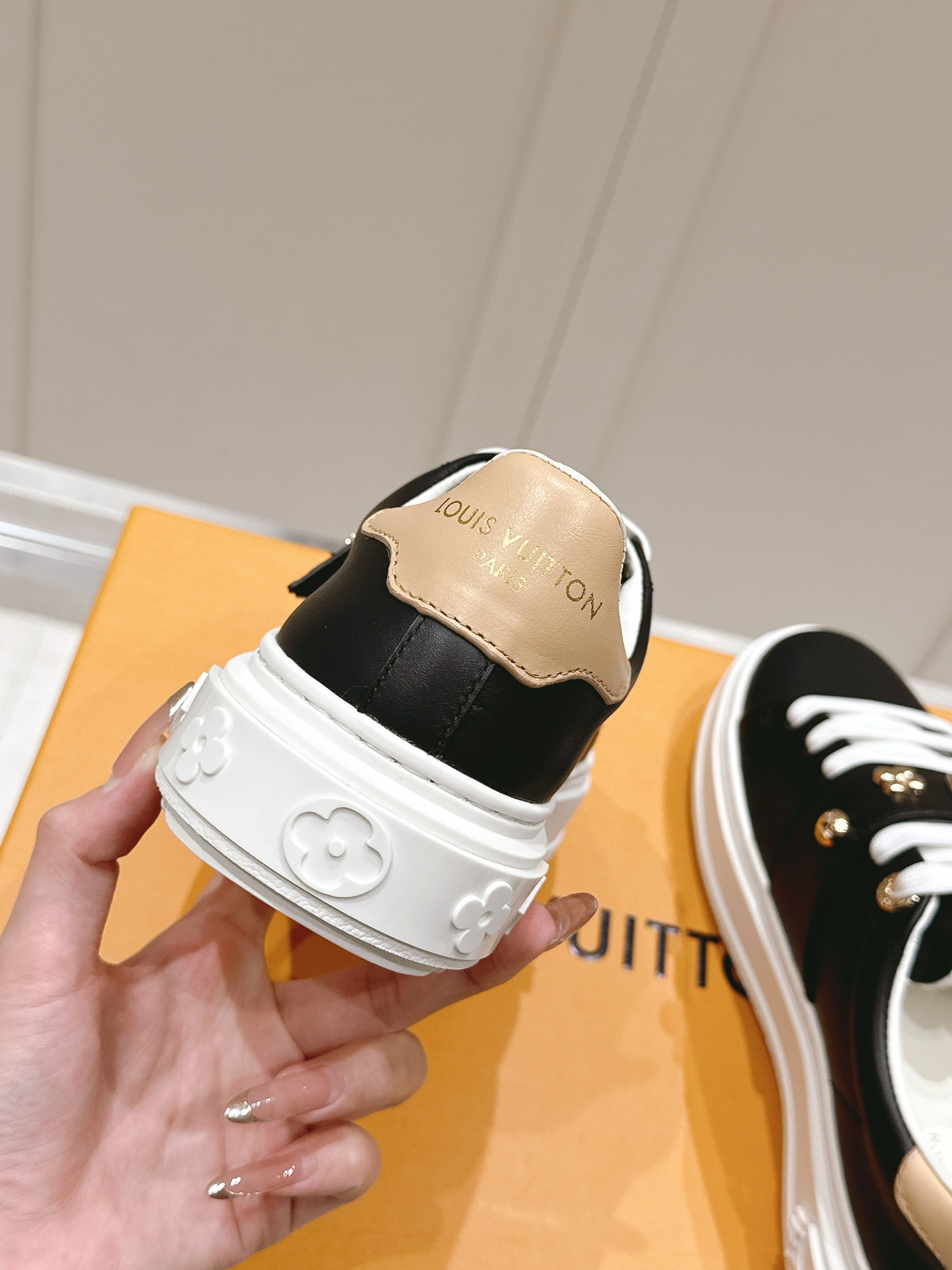 这款鞋子是AAAAA 1:1 质量 (非常棒). 使用了和原版一模一样的材料. 商标部分也保持了和路易威登/Louis Vuitton一样. 图片拍摄是实物鞋子拍摄, 您所收到的实物保证和我们图片一模一样.
