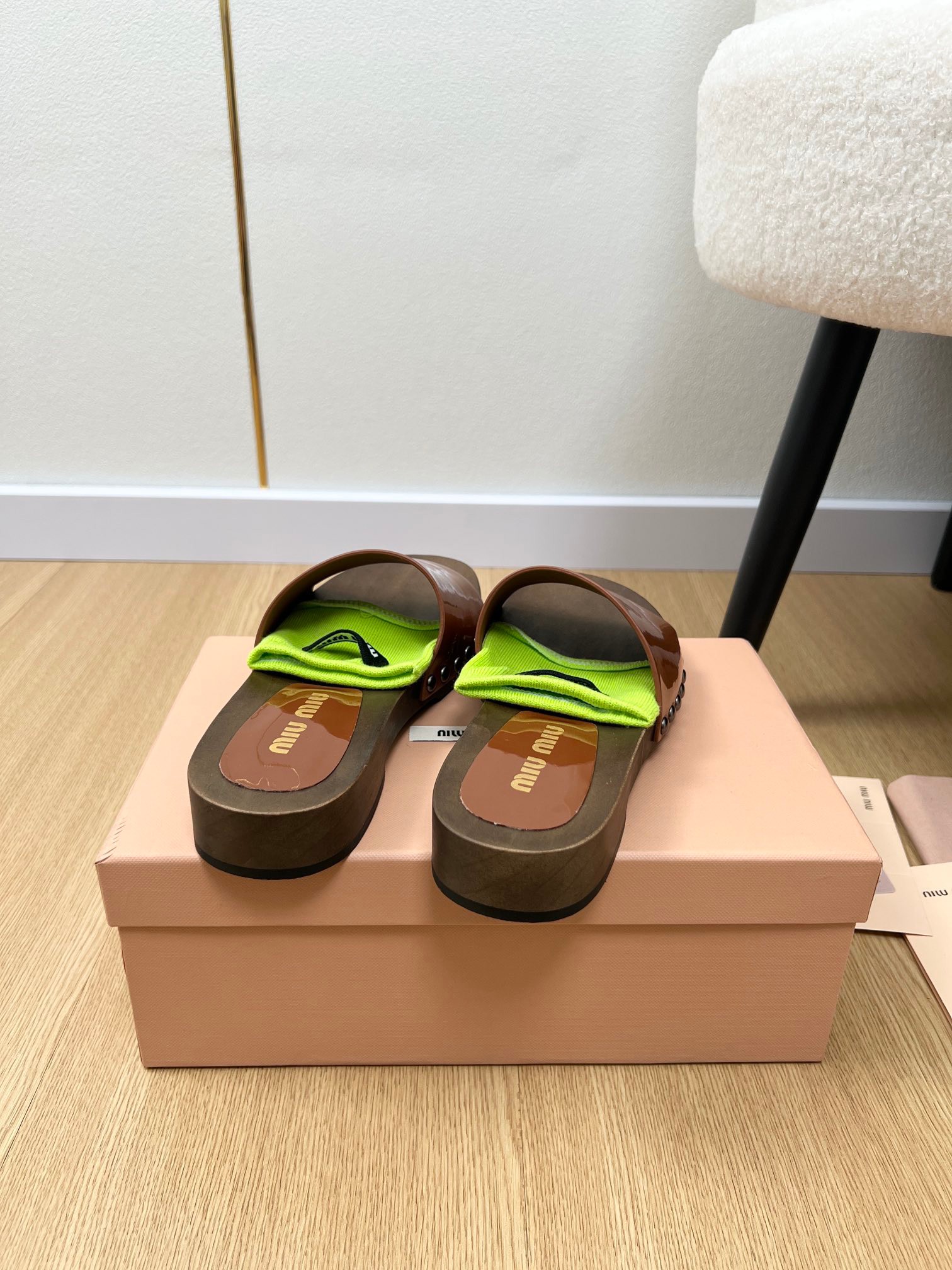 这款鞋子是AAAAA 1:1 质量 (非常棒). 使用了和原版一模一样的材料. 商标部分也保持了和缪缪/Miu Miu一样. 图片拍摄是实物鞋子拍摄, 您所收到的实物保证和我们图片一模一样.