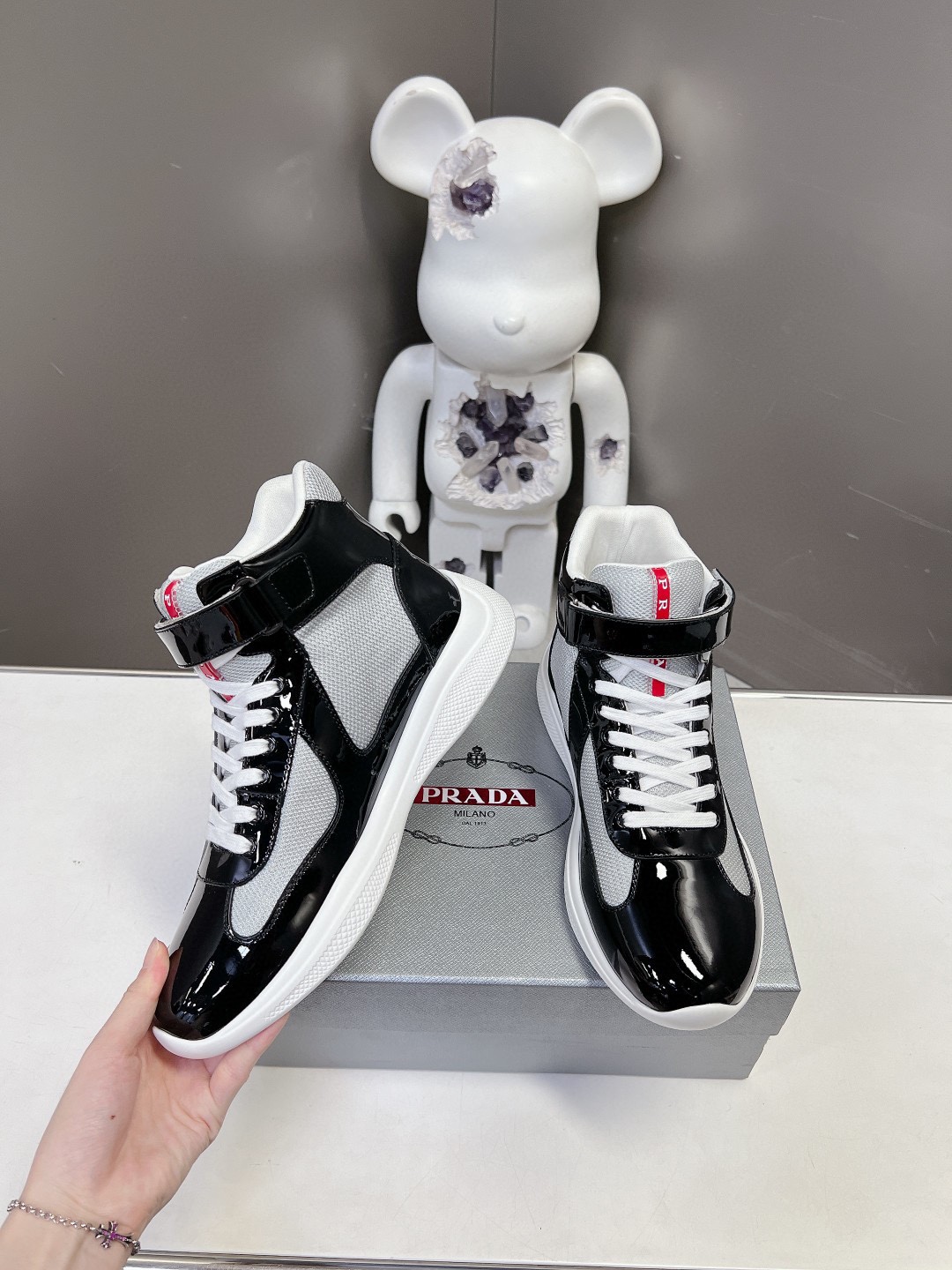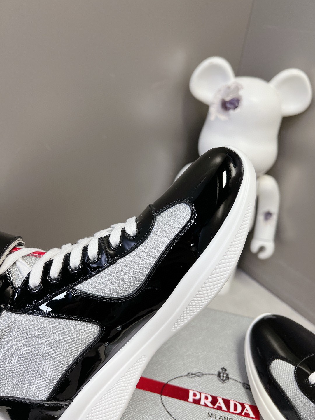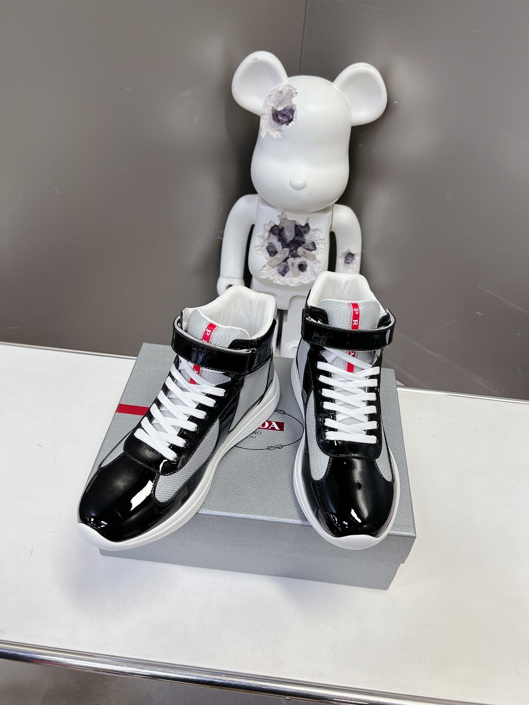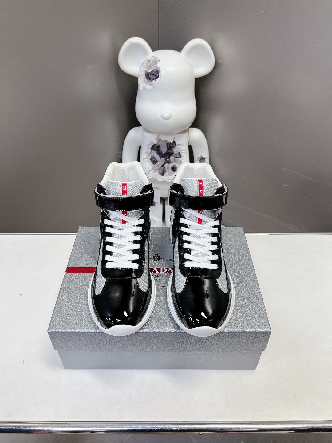 这款鞋子是AAAAA 1:1 质量 (非常棒). 使用了和原版一模一样的材料. 商标部分也保持了和普拉达/Prada一样. 图片拍摄是实物鞋子拍摄, 您所收到的实物保证和我们图片一模一样.
