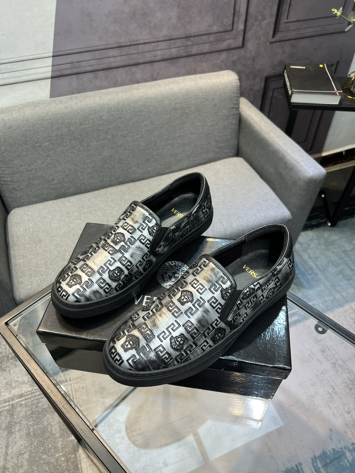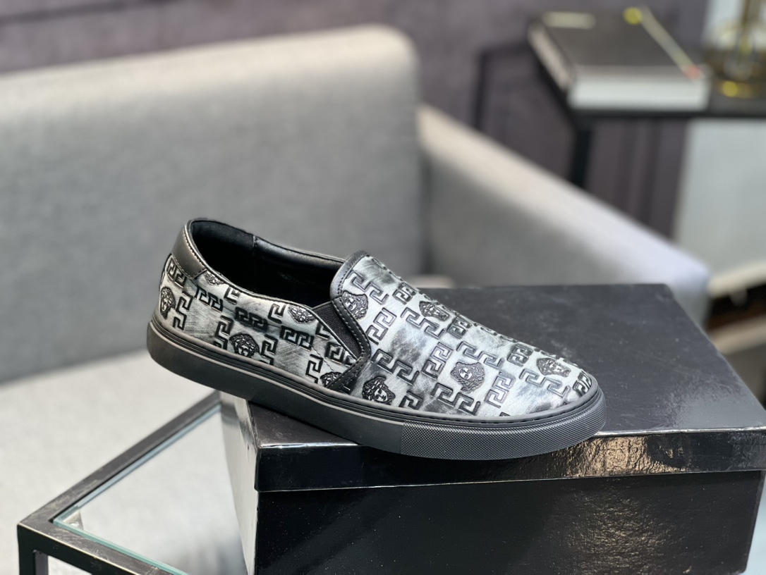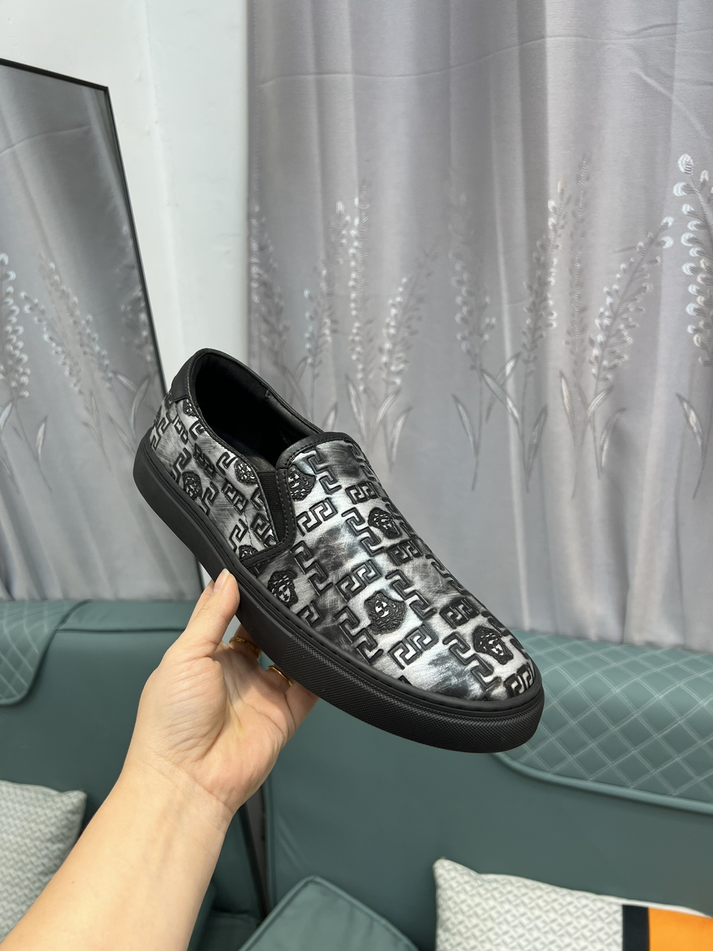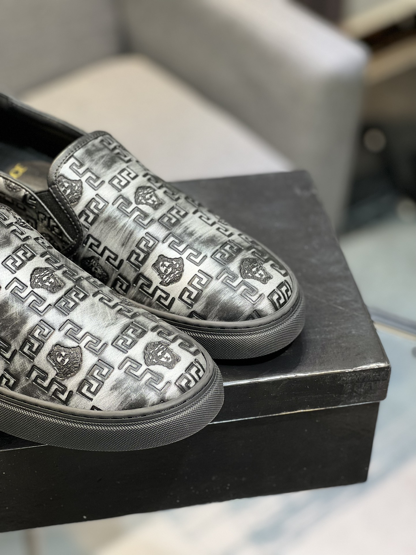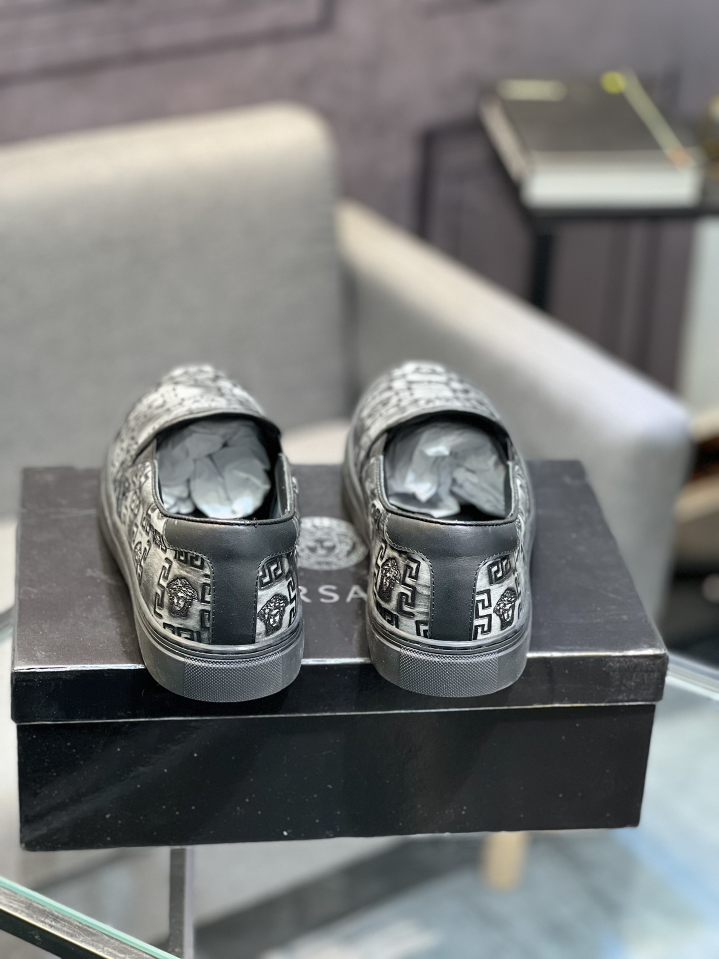 这款鞋子是AAAAA 1:1 质量 (非常棒). 使用了和原版一模一样的材料. 商标部分也保持了和范思哲/Versace一样. 图片拍摄是实物鞋子拍摄, 您所收到的实物保证和我们图片一模一样.