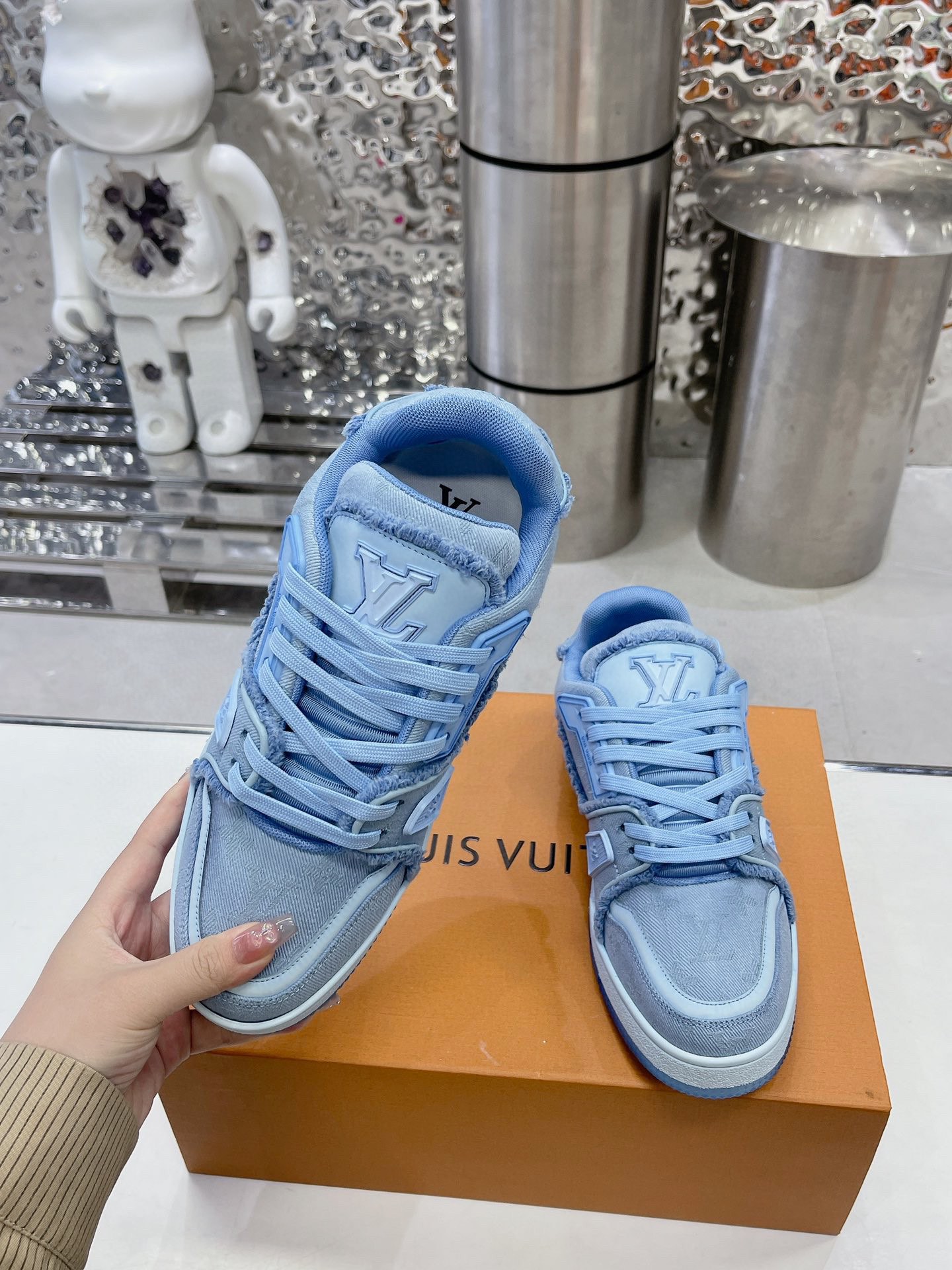 这款鞋子是AAAAA 1:1 质量 (非常棒). 使用了和原版一模一样的材料. 商标部分也保持了和路易威登/Louis Vuitton一样. 图片拍摄是实物鞋子拍摄, 您所收到的实物保证和我们图片一模一样.