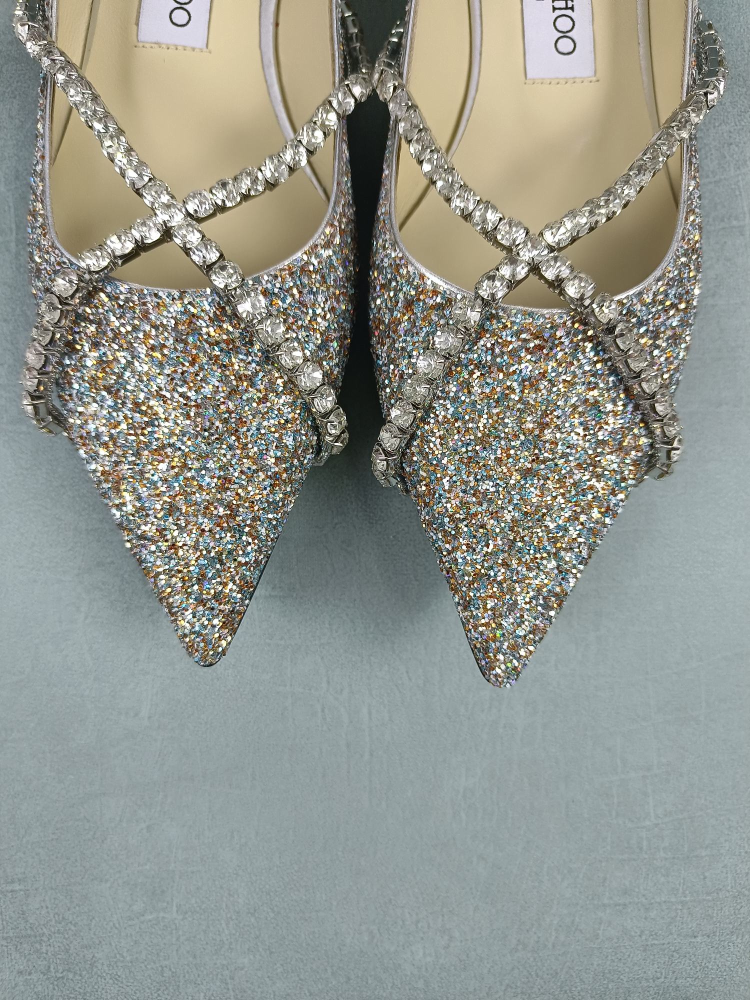 这款鞋子是AAAAA 1:1 质量 (非常棒). 使用了和原版一模一样的材料. 商标部分也保持了和吉米乔/JIMMY CHOO一样. 图片拍摄是实物鞋子拍摄, 您所收到的实物保证和我们图片一模一样.
