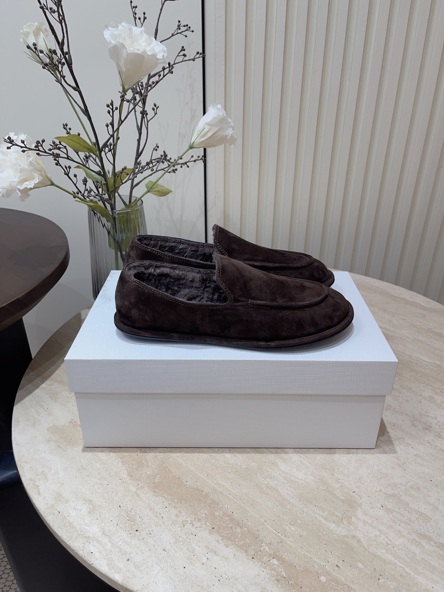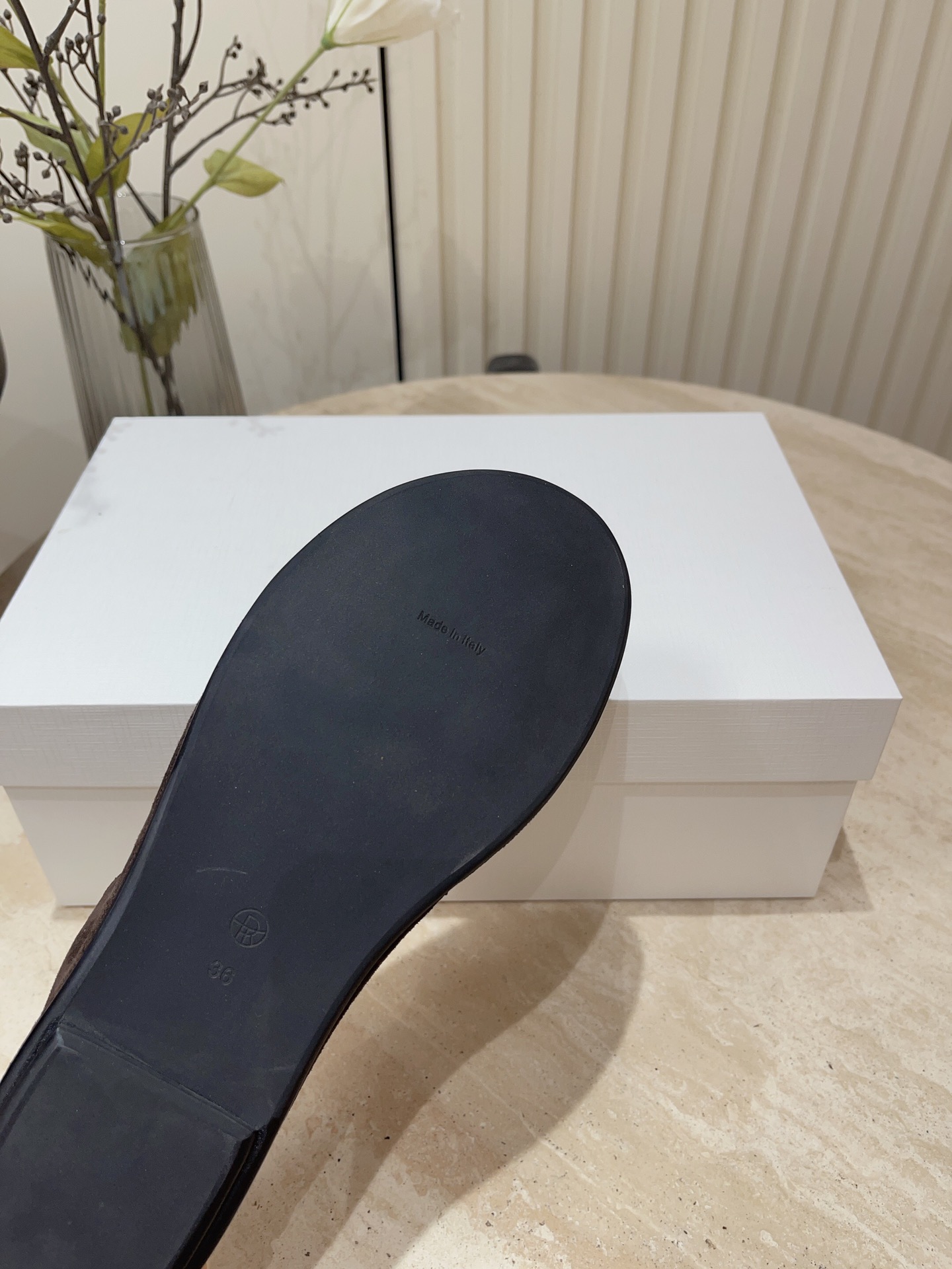 这款鞋子是AAAAA 1:1 质量 (非常棒). 使用了和原版一模一样的材料. 商标部分也保持了和The Row一样. 图片拍摄是实物鞋子拍摄, 您所收到的实物保证和我们图片一模一样.
