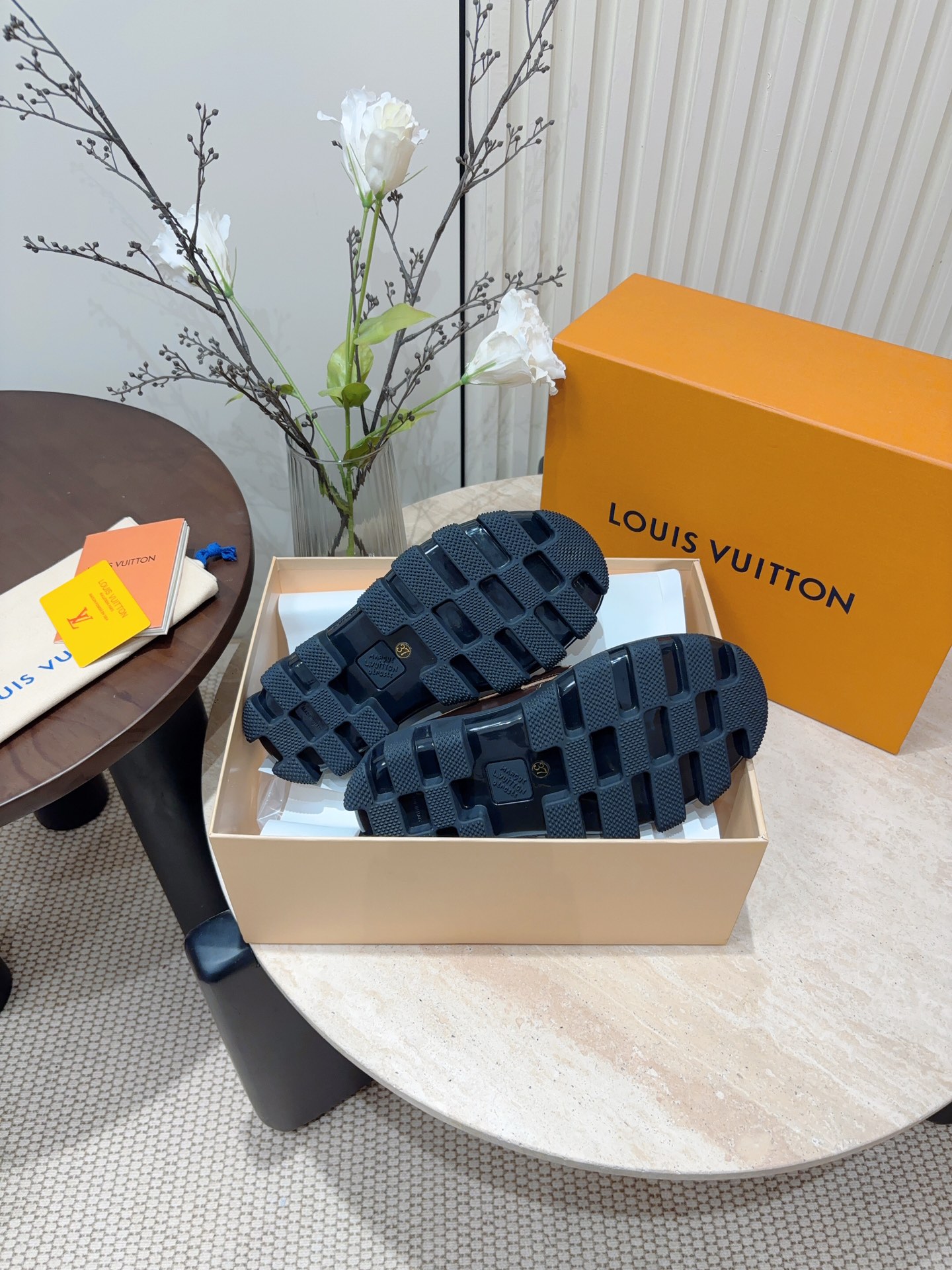 这款鞋子是AAAAA 1:1 质量 (非常棒). 使用了和原版一模一样的材料. 商标部分也保持了和路易威登/Louis Vuitton一样. 图片拍摄是实物鞋子拍摄, 您所收到的实物保证和我们图片一模一样.