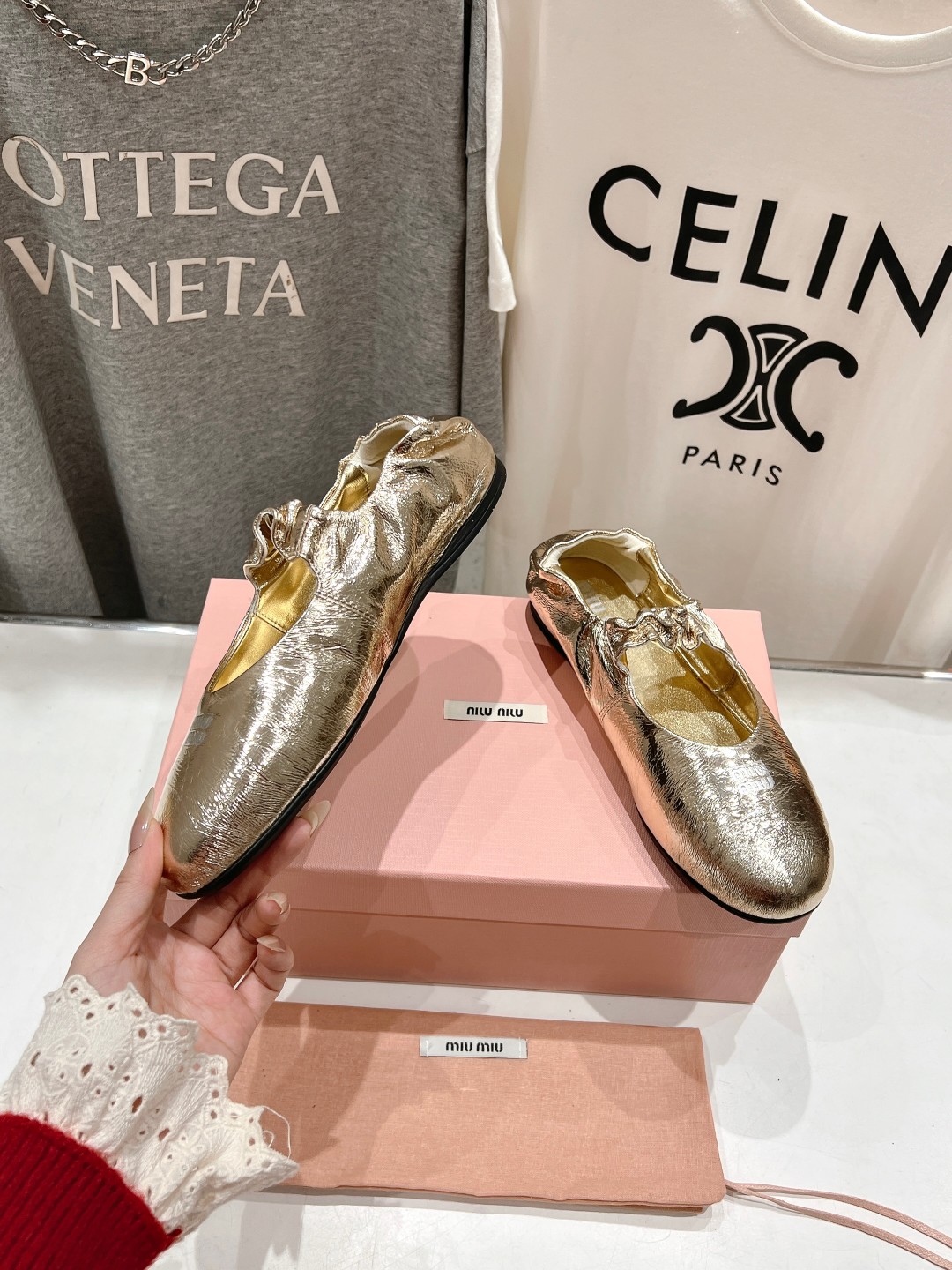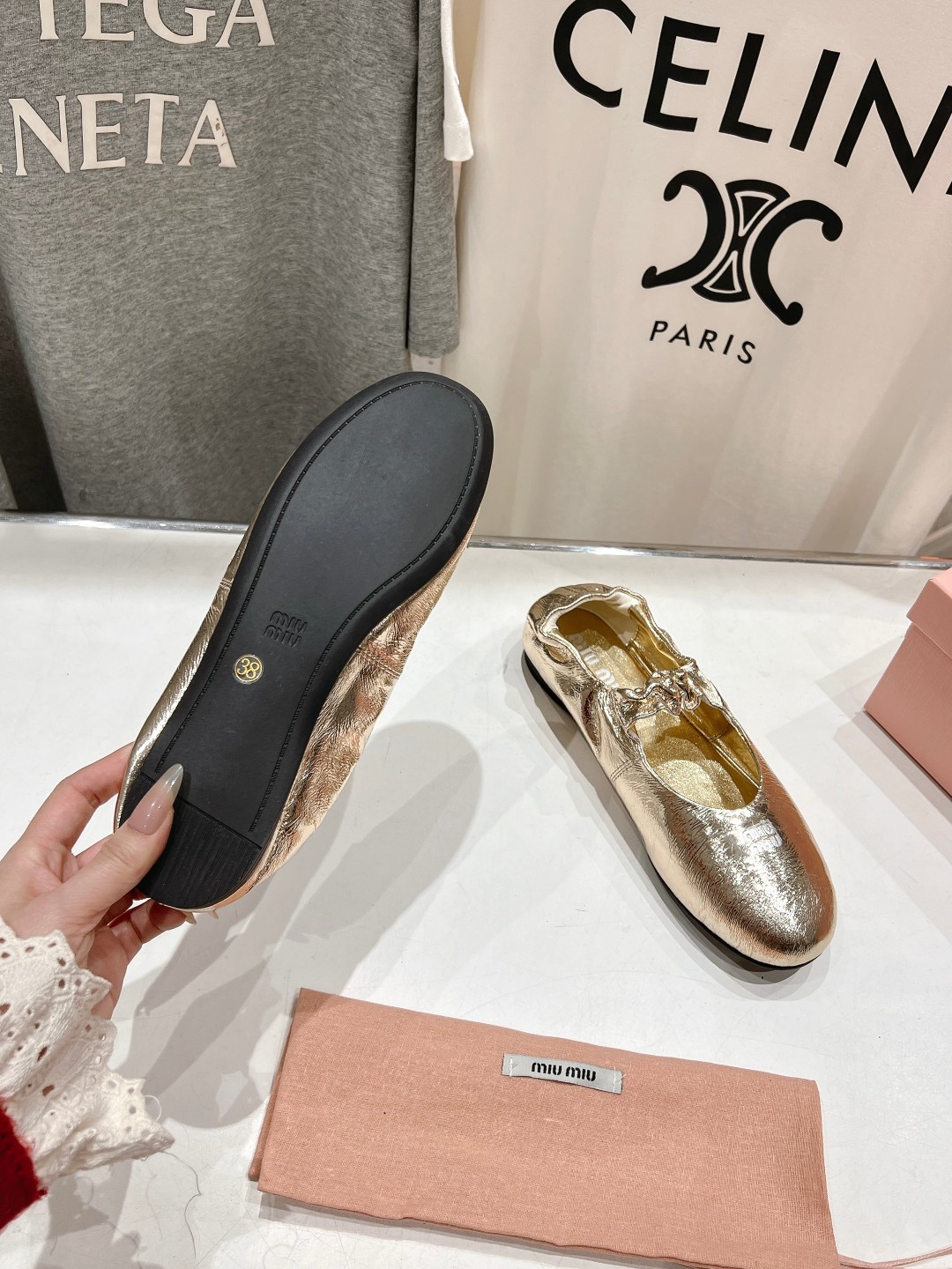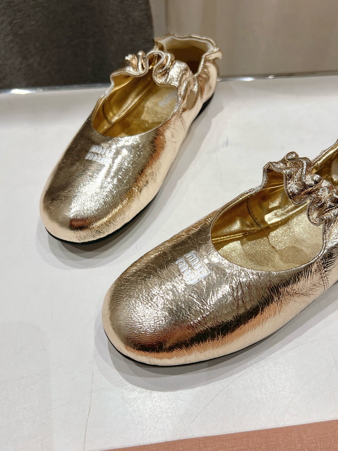 这款鞋子是AAAAA 1:1 质量 (非常棒). 使用了和原版一模一样的材料. 商标部分也保持了和缪缪/Miu Miu一样. 图片拍摄是实物鞋子拍摄, 您所收到的实物保证和我们图片一模一样.