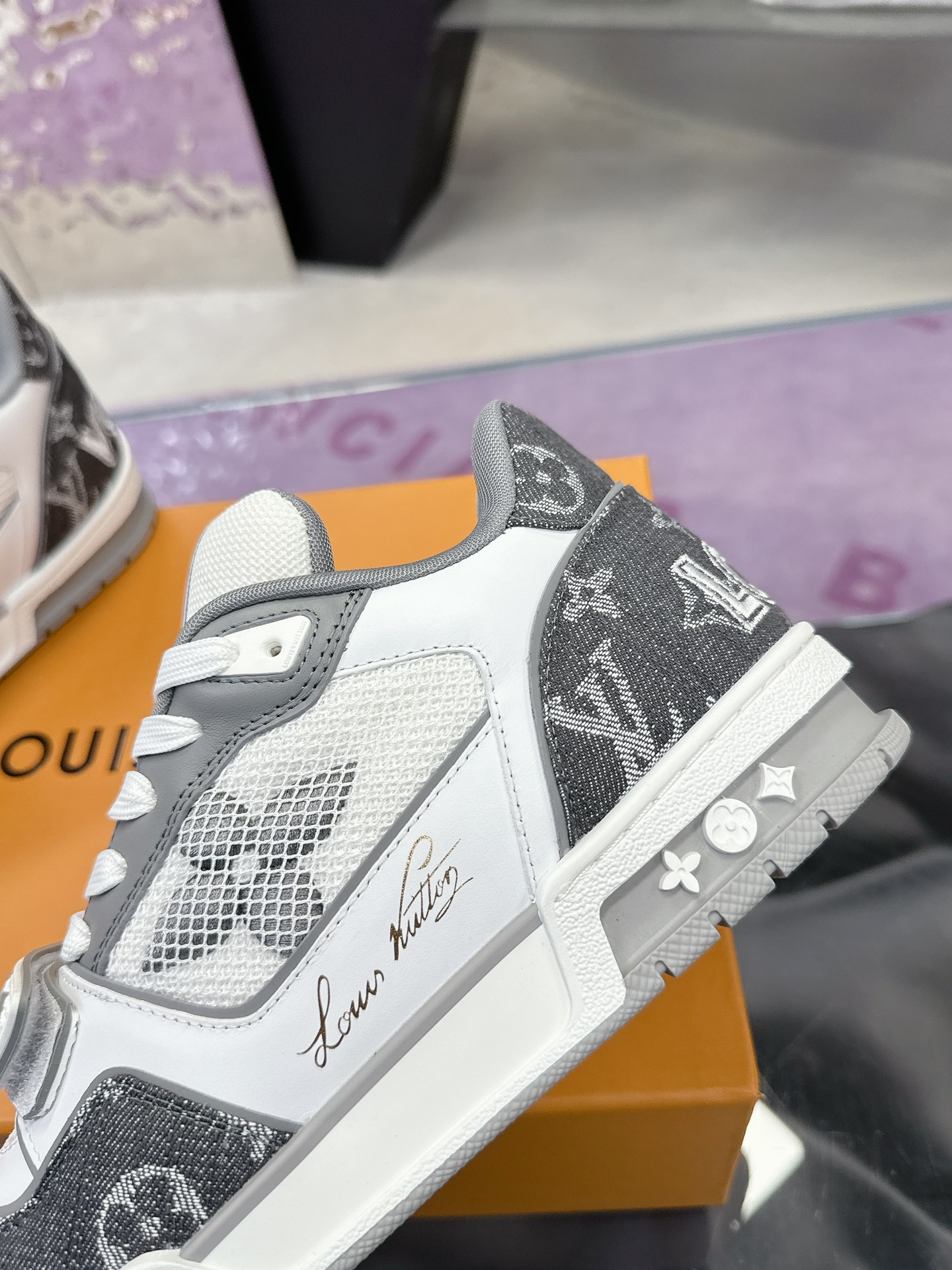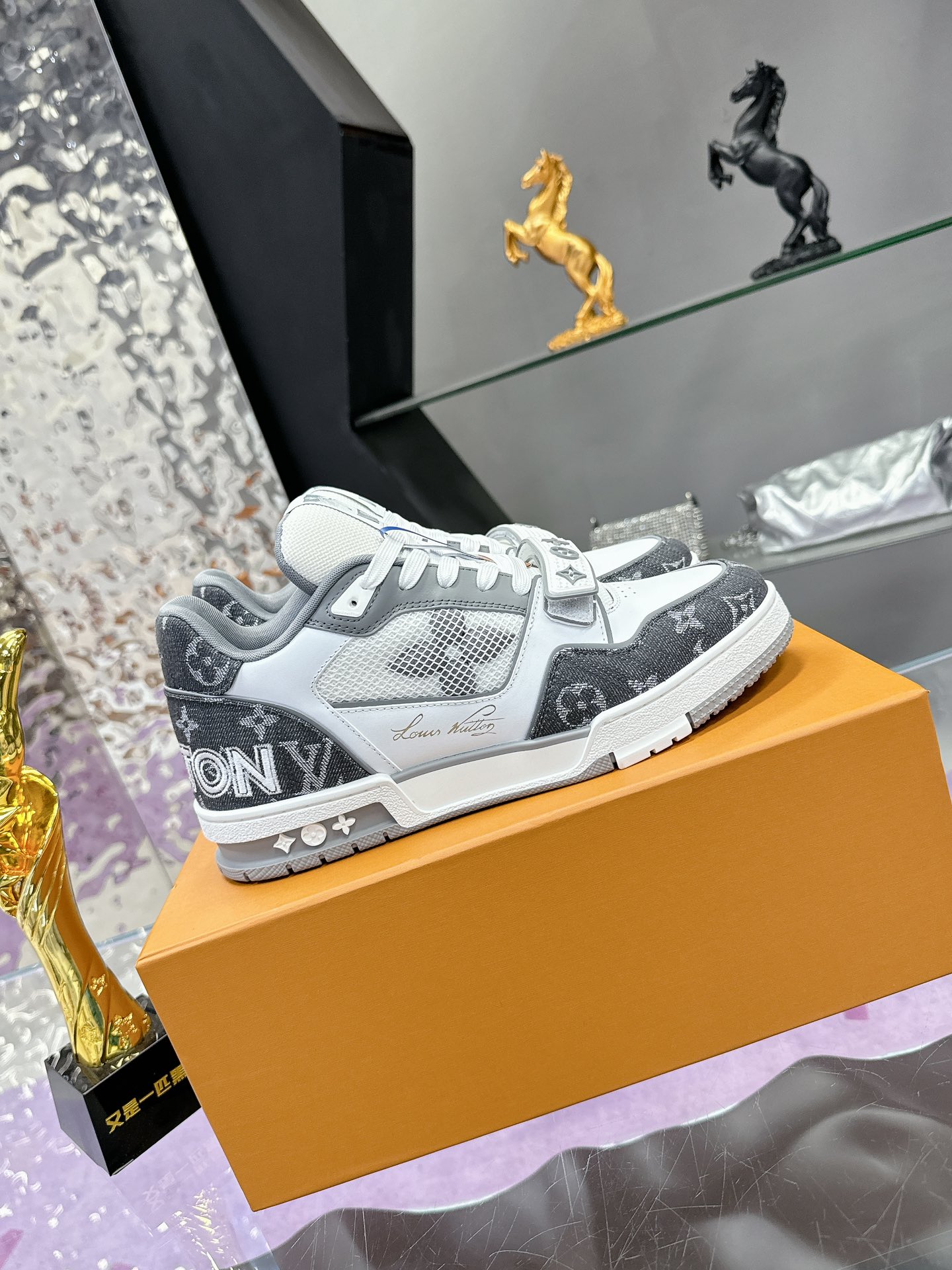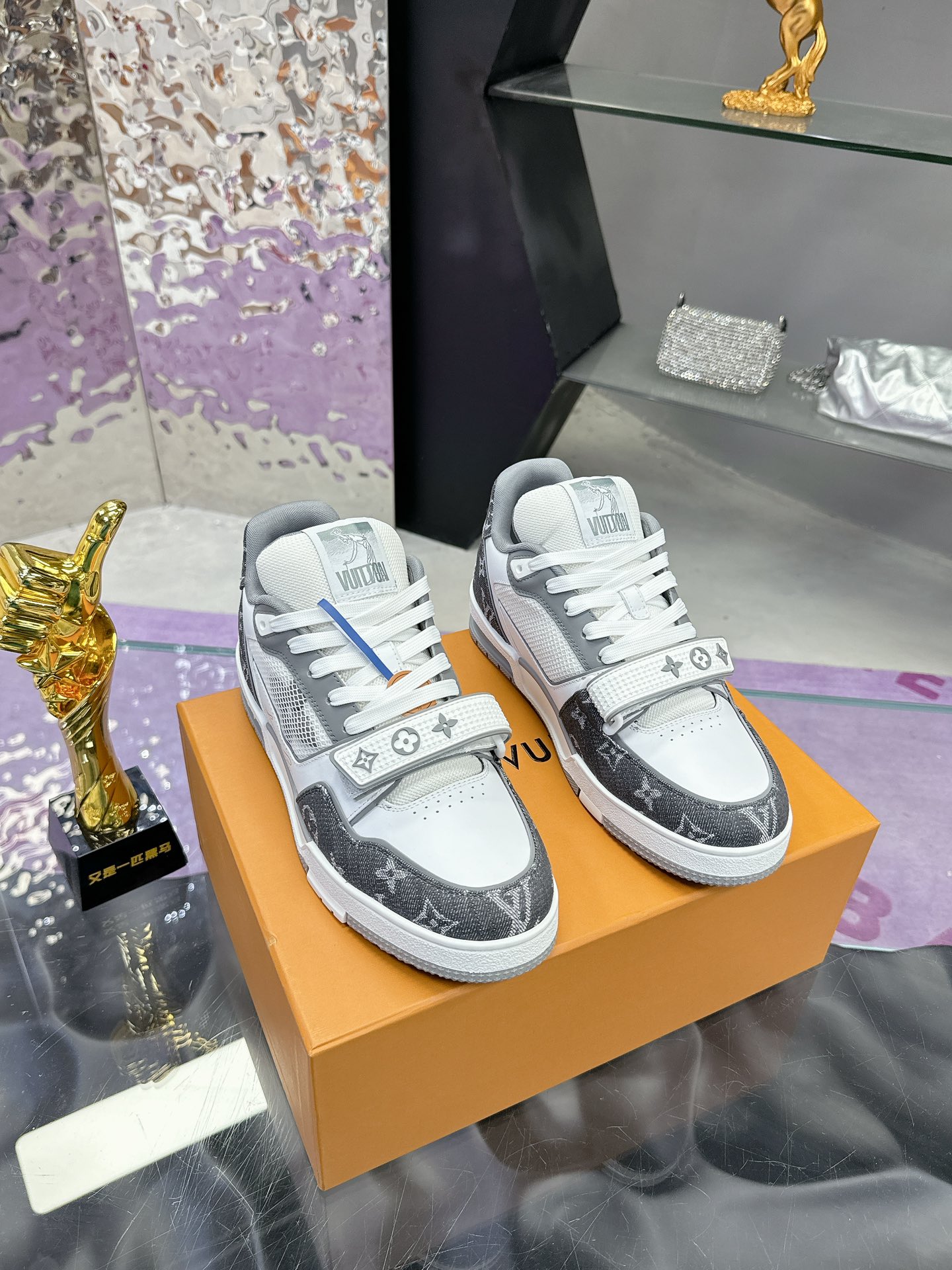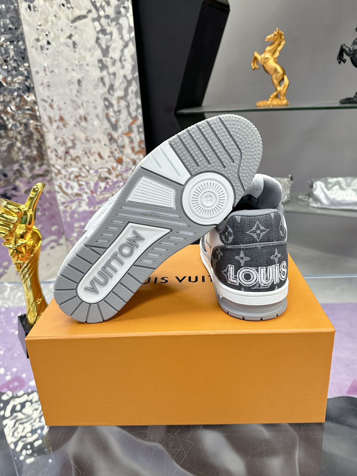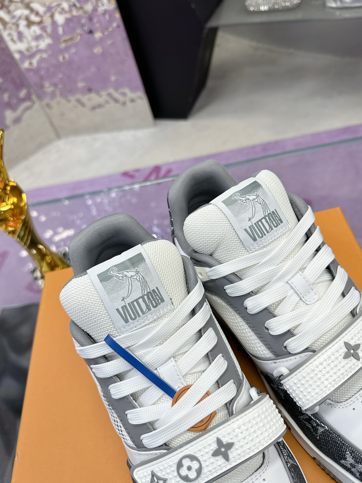 这款鞋子是AAAAA 1:1 质量 (非常棒). 使用了和原版一模一样的材料. 商标部分也保持了和路易威登/Louis Vuitton一样. 图片拍摄是实物鞋子拍摄, 您所收到的实物保证和我们图片一模一样.