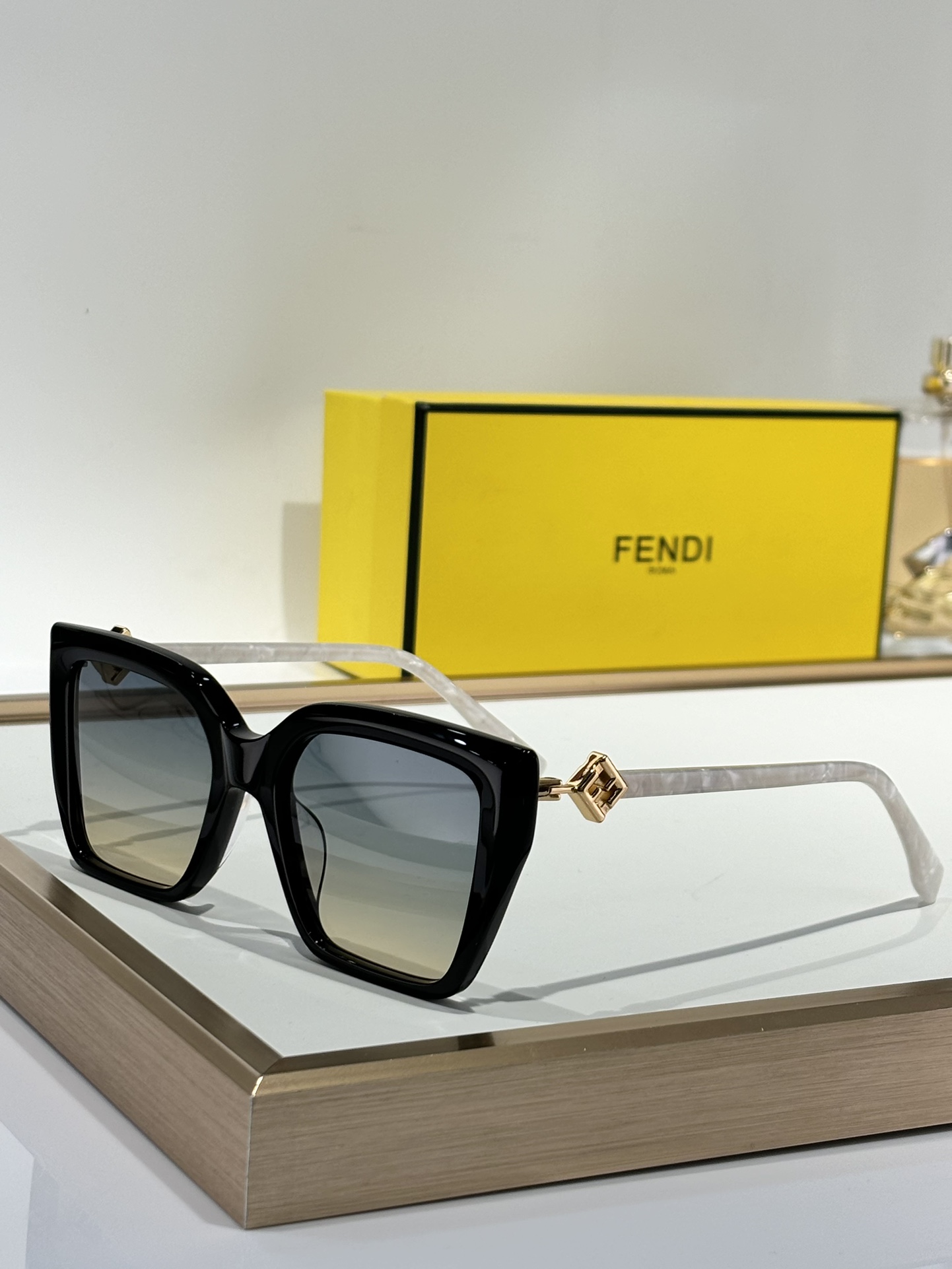 这款太阳眼镜是AAAAA 1:1 质量 (非常棒). 使用了和原版一模一样的材料. 商标部分也保持了和芬迪/Fendi一样. 图片拍摄是实物太阳眼镜拍摄, 您所收到的实物保证和我们图片一模一样.