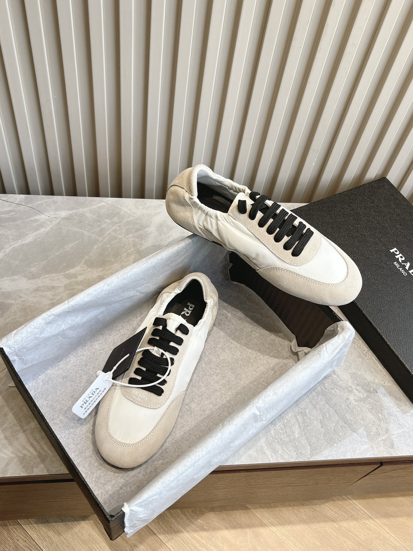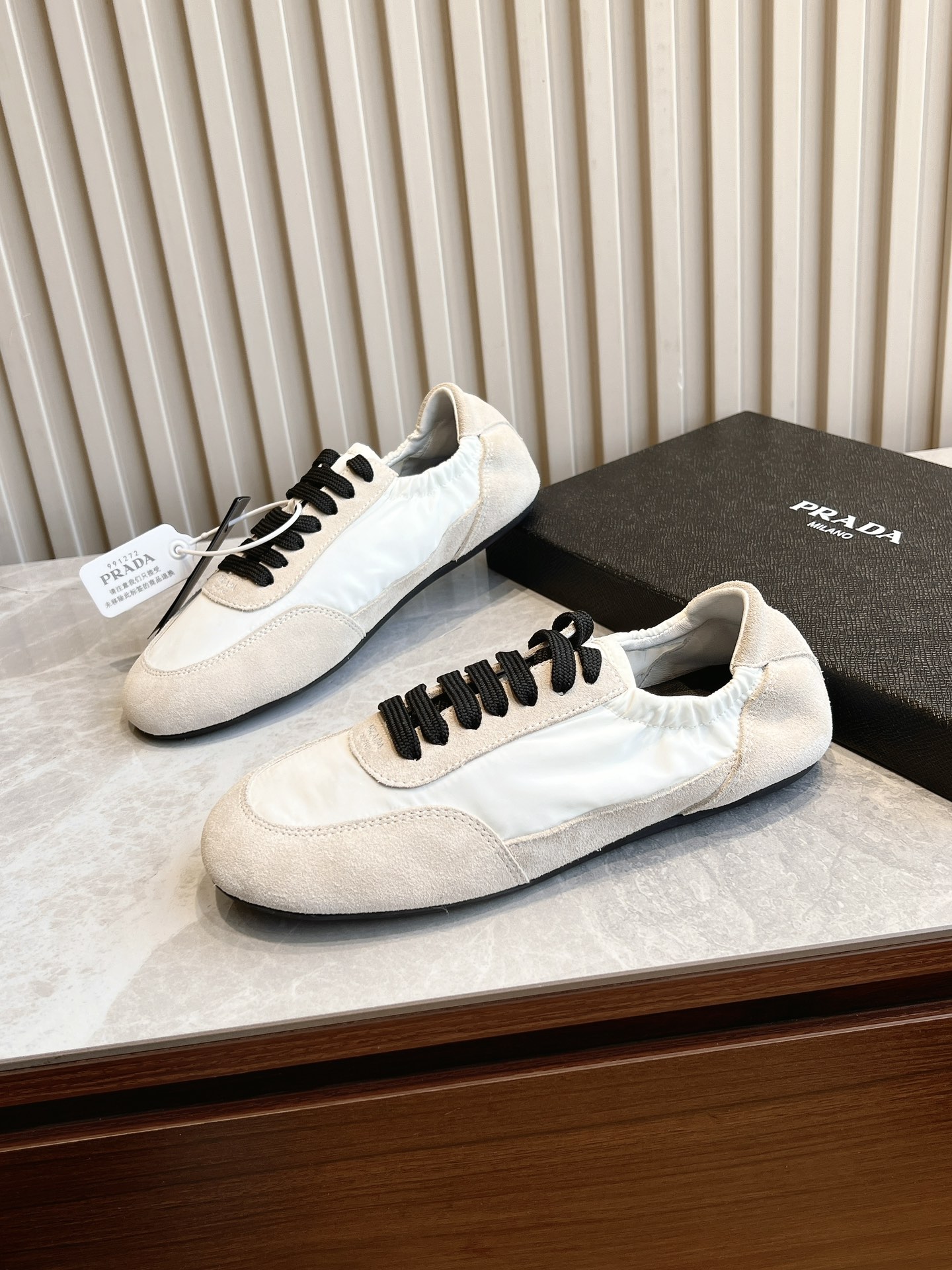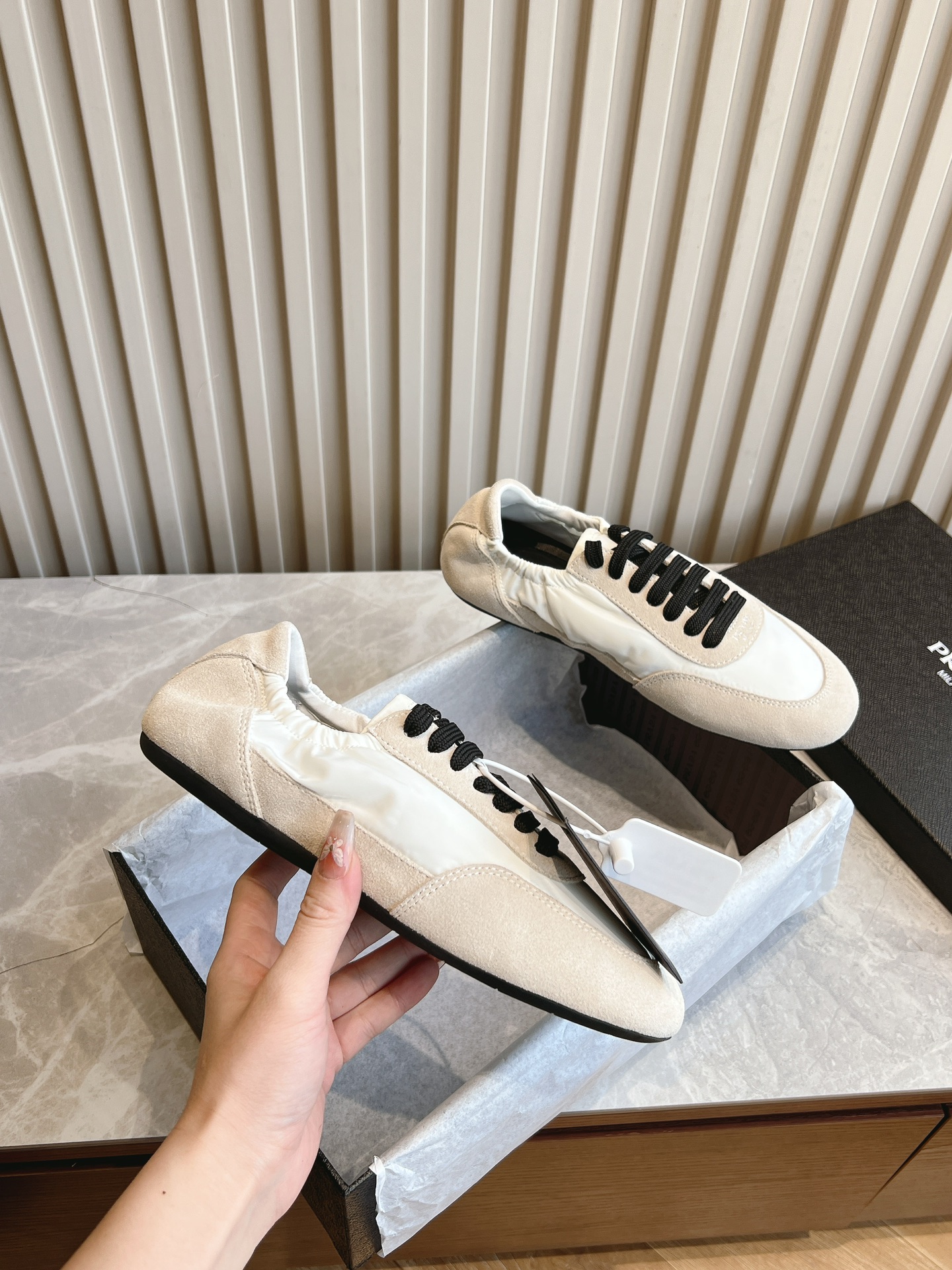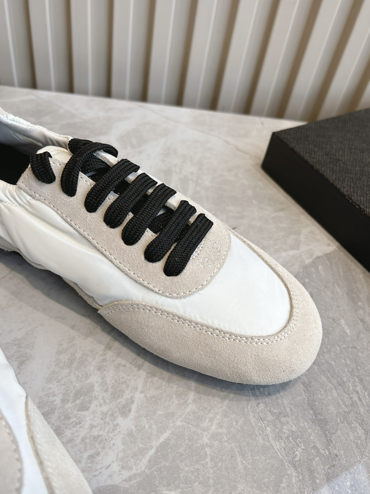 这款鞋子是AAAAA 1:1 质量 (非常棒). 使用了和原版一模一样的材料. 商标部分也保持了和普拉达/Prada一样. 图片拍摄是实物鞋子拍摄, 您所收到的实物保证和我们图片一模一样.