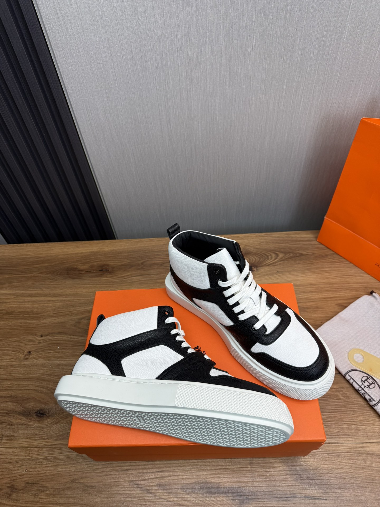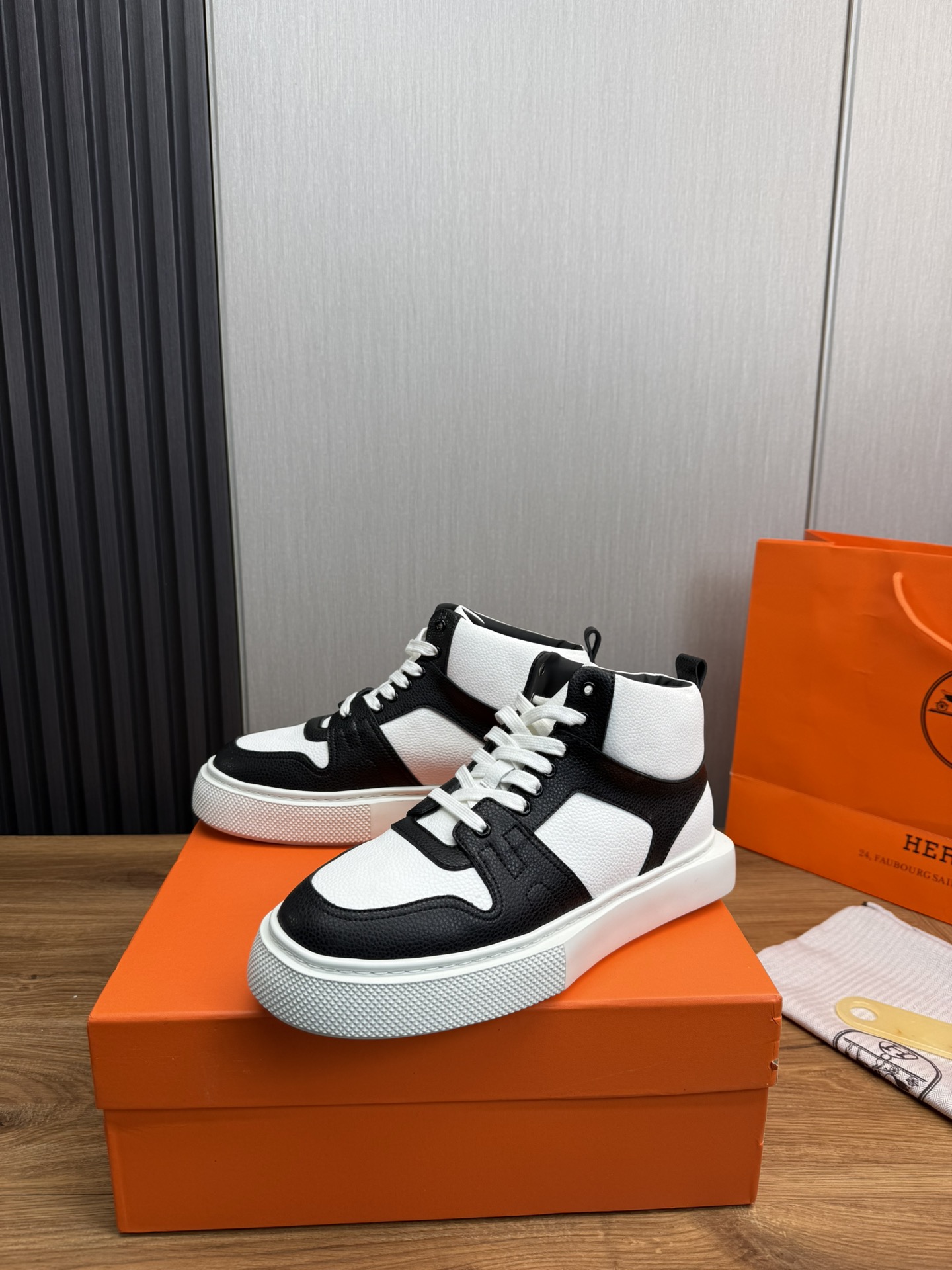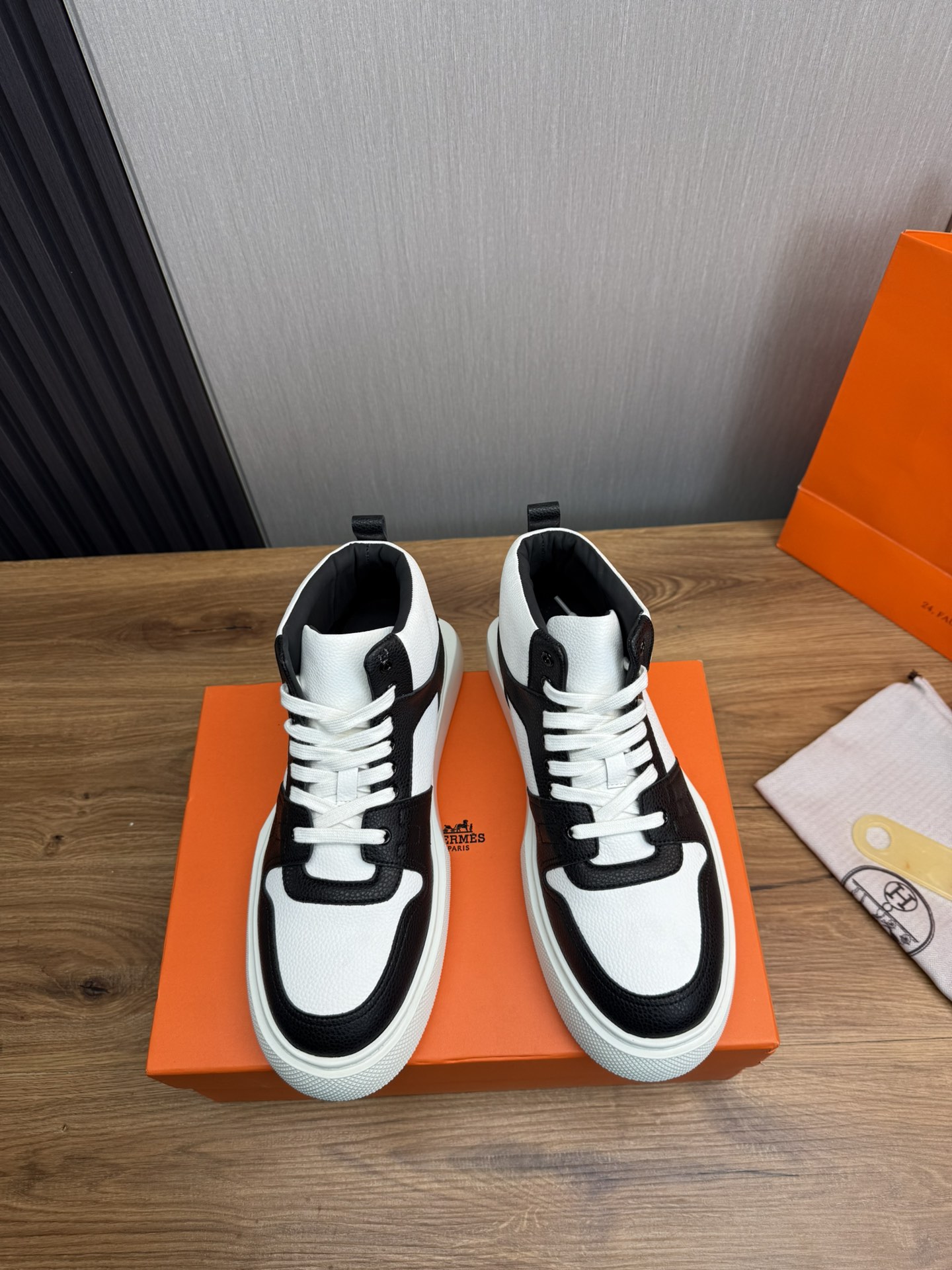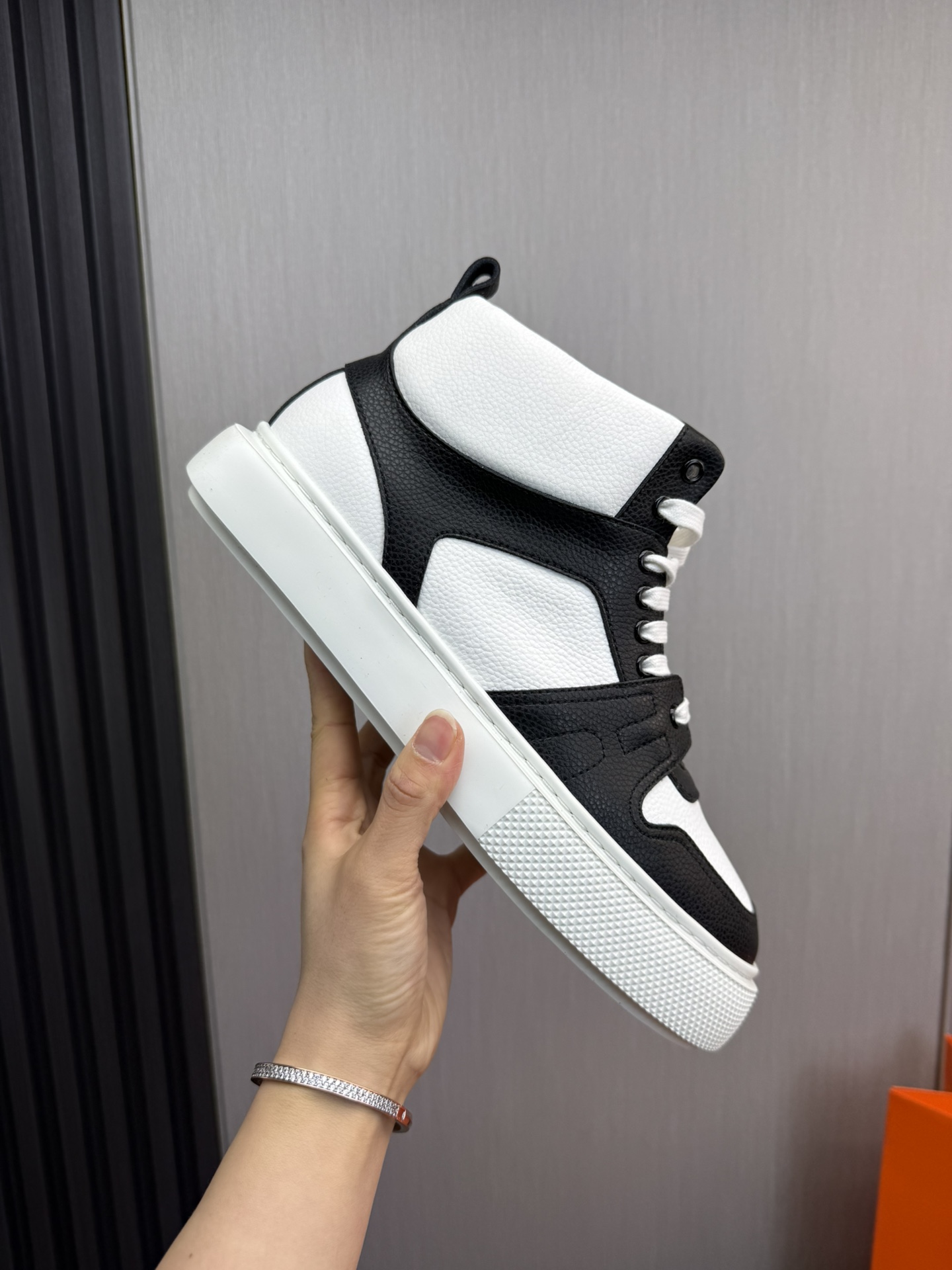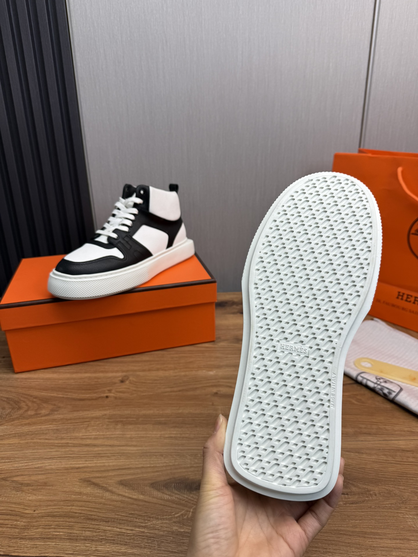 这款鞋子是AAAAA 1:1 质量 (非常棒). 使用了和原版一模一样的材料. 商标部分也保持了和爱马仕/Hermes一样. 图片拍摄是实物鞋子拍摄, 您所收到的实物保证和我们图片一模一样.