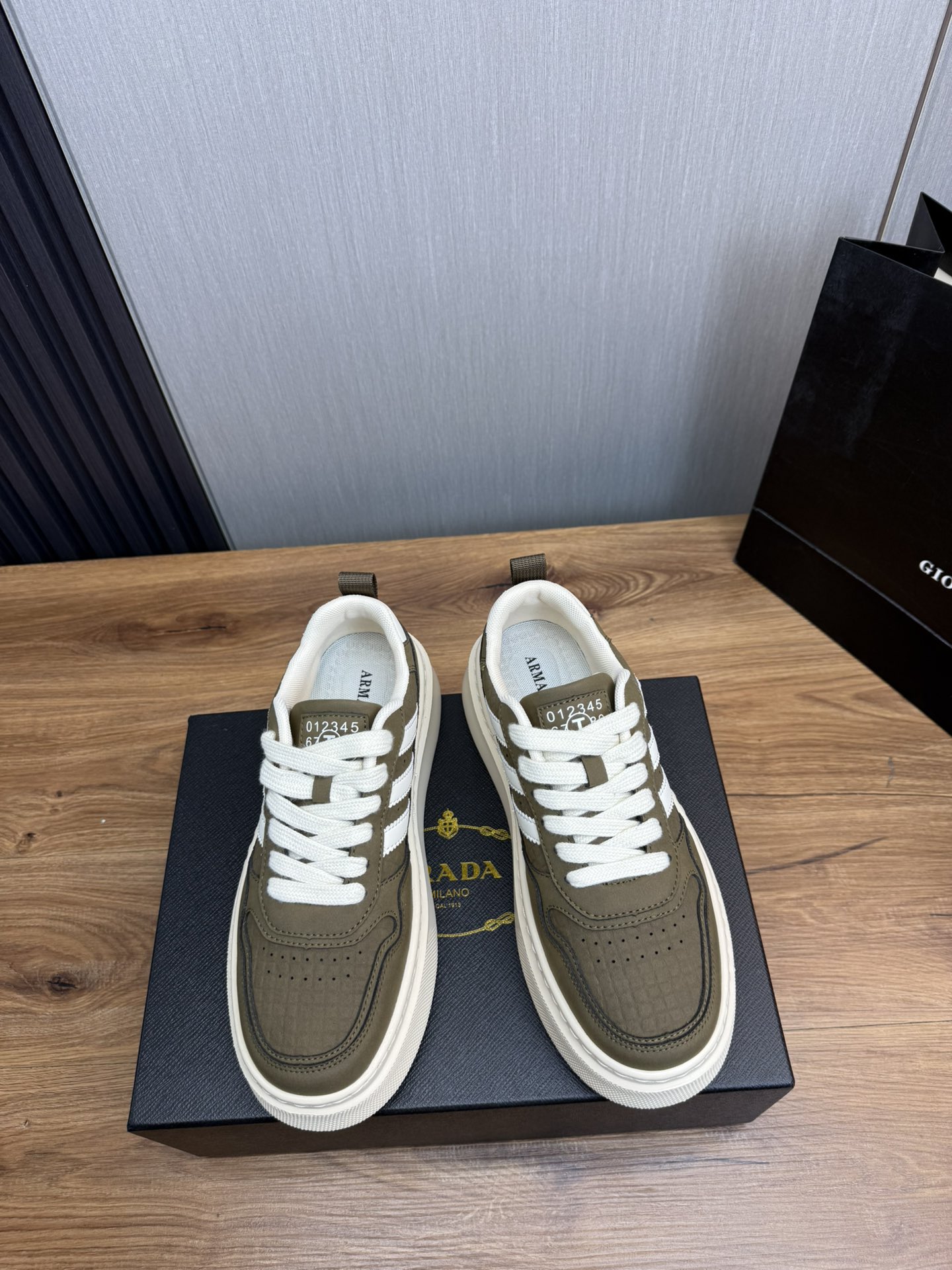这款鞋子是AAAAA 1:1 质量 (非常棒). 使用了和原版一模一样的材料. 商标部分也保持了和阿玛尼/Armani一样. 图片拍摄是实物鞋子拍摄, 您所收到的实物保证和我们图片一模一样.