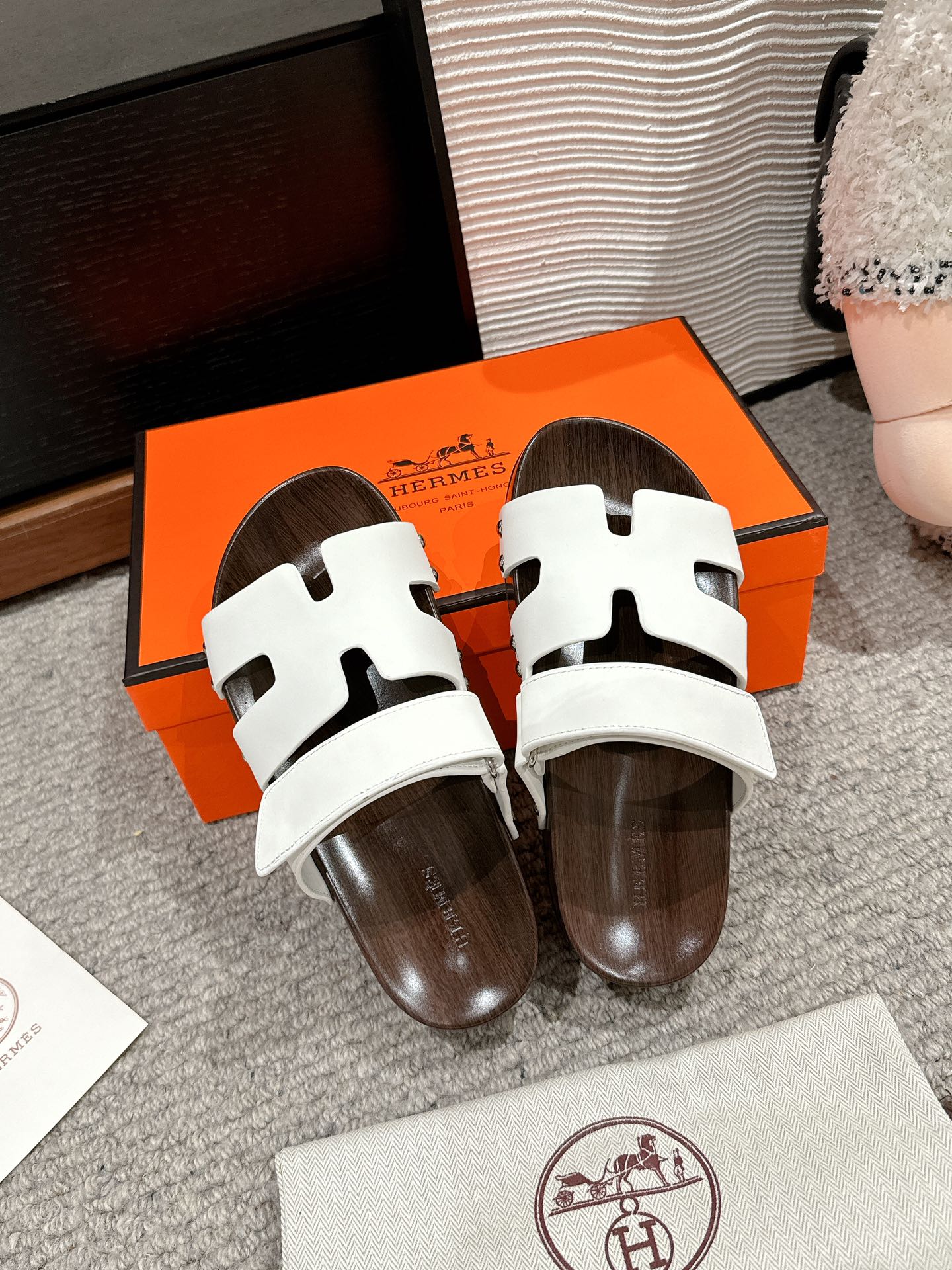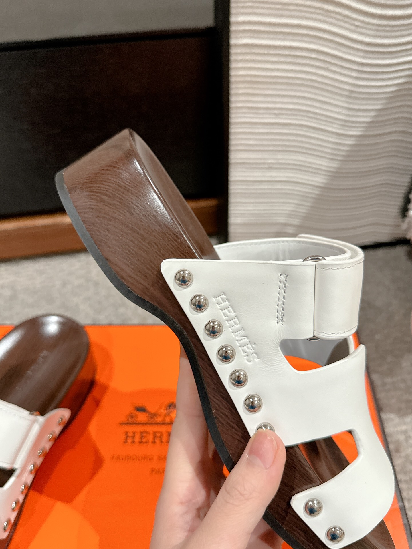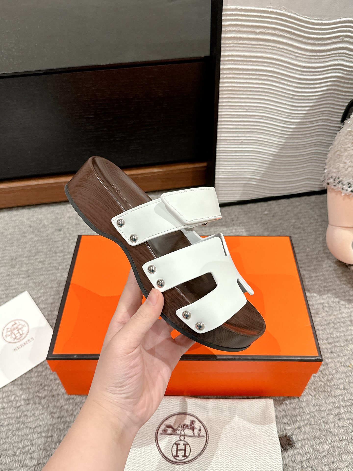 这款鞋子是AAAAA 1:1 质量 (非常棒). 使用了和原版一模一样的材料. 商标部分也保持了和爱马仕/Hermes一样. 图片拍摄是实物鞋子拍摄, 您所收到的实物保证和我们图片一模一样.