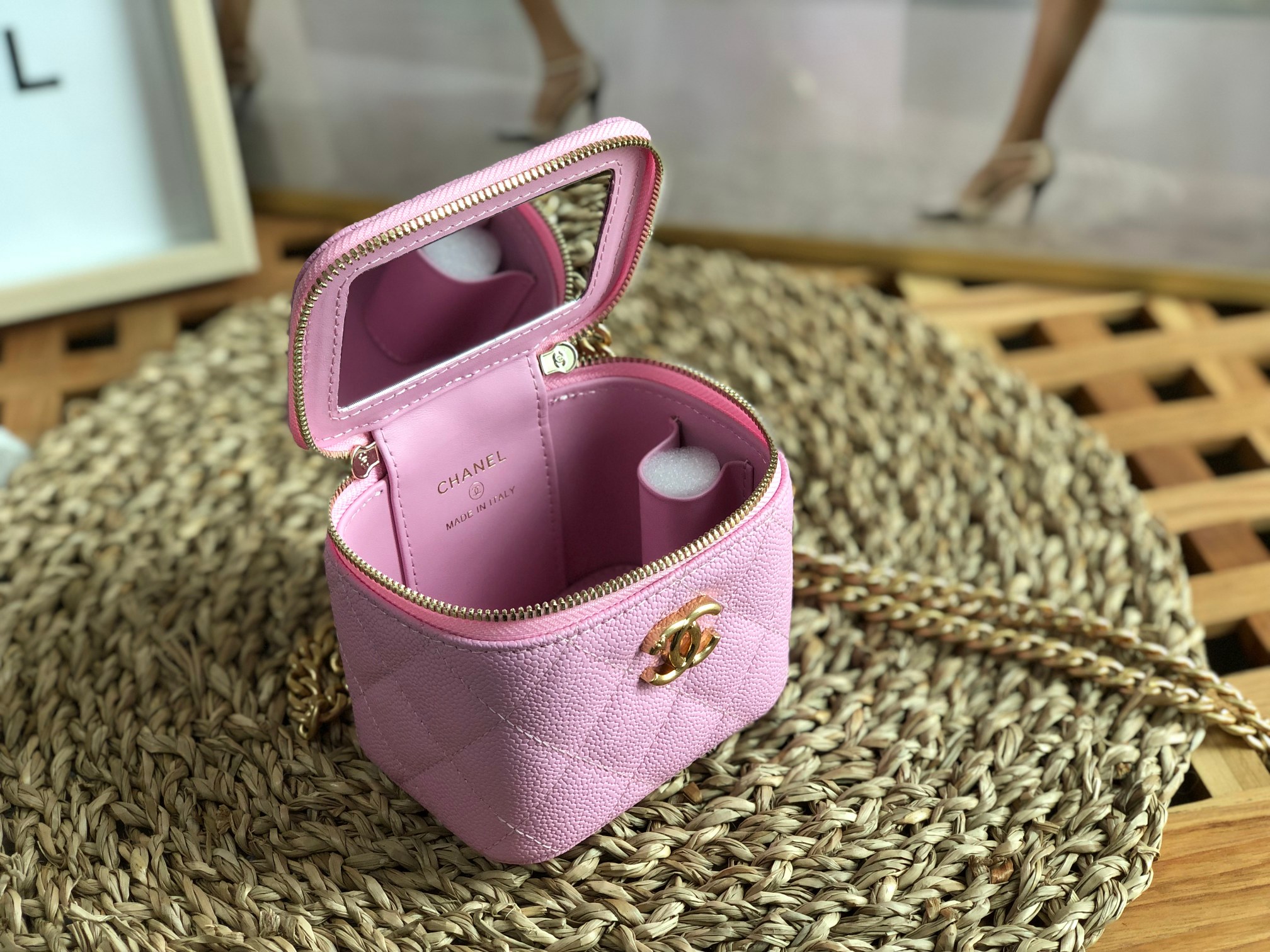 这款包包是AAAAA 1:1 质量 (非常棒). 使用了和原版一模一样的材料. 商标部分也保持了和香奈儿/Chanel一样. 图片拍摄是实物包包拍摄, 您所收到的实物保证和我们图片一模一样.