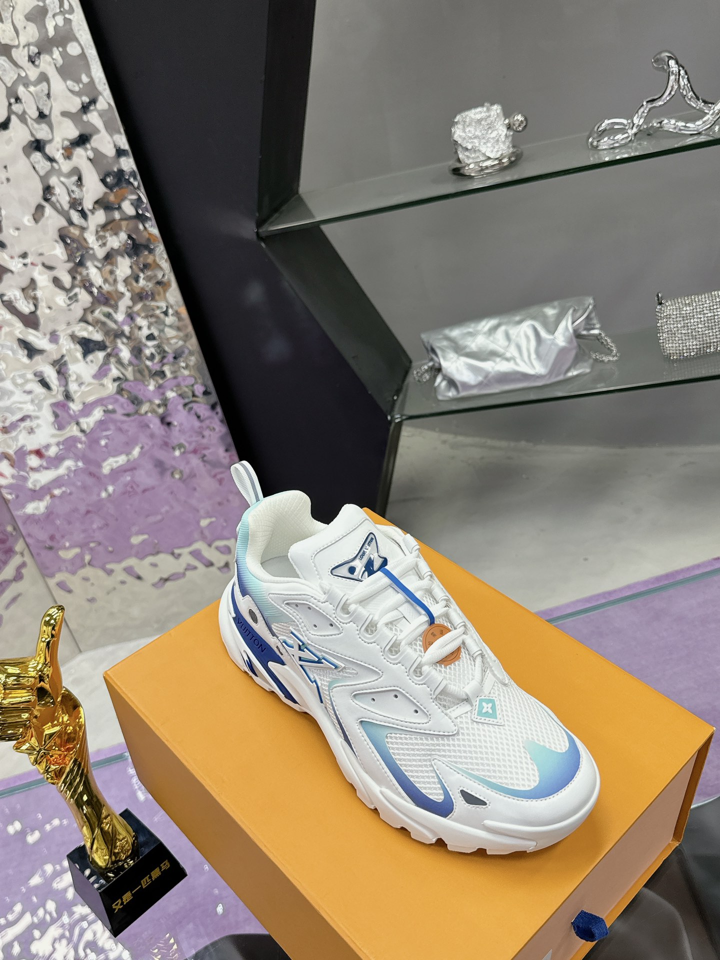 这款鞋子是AAAAA 1:1 质量 (非常棒). 使用了和原版一模一样的材料. 商标部分也保持了和路易威登/Louis Vuitton一样. 图片拍摄是实物鞋子拍摄, 您所收到的实物保证和我们图片一模一样.