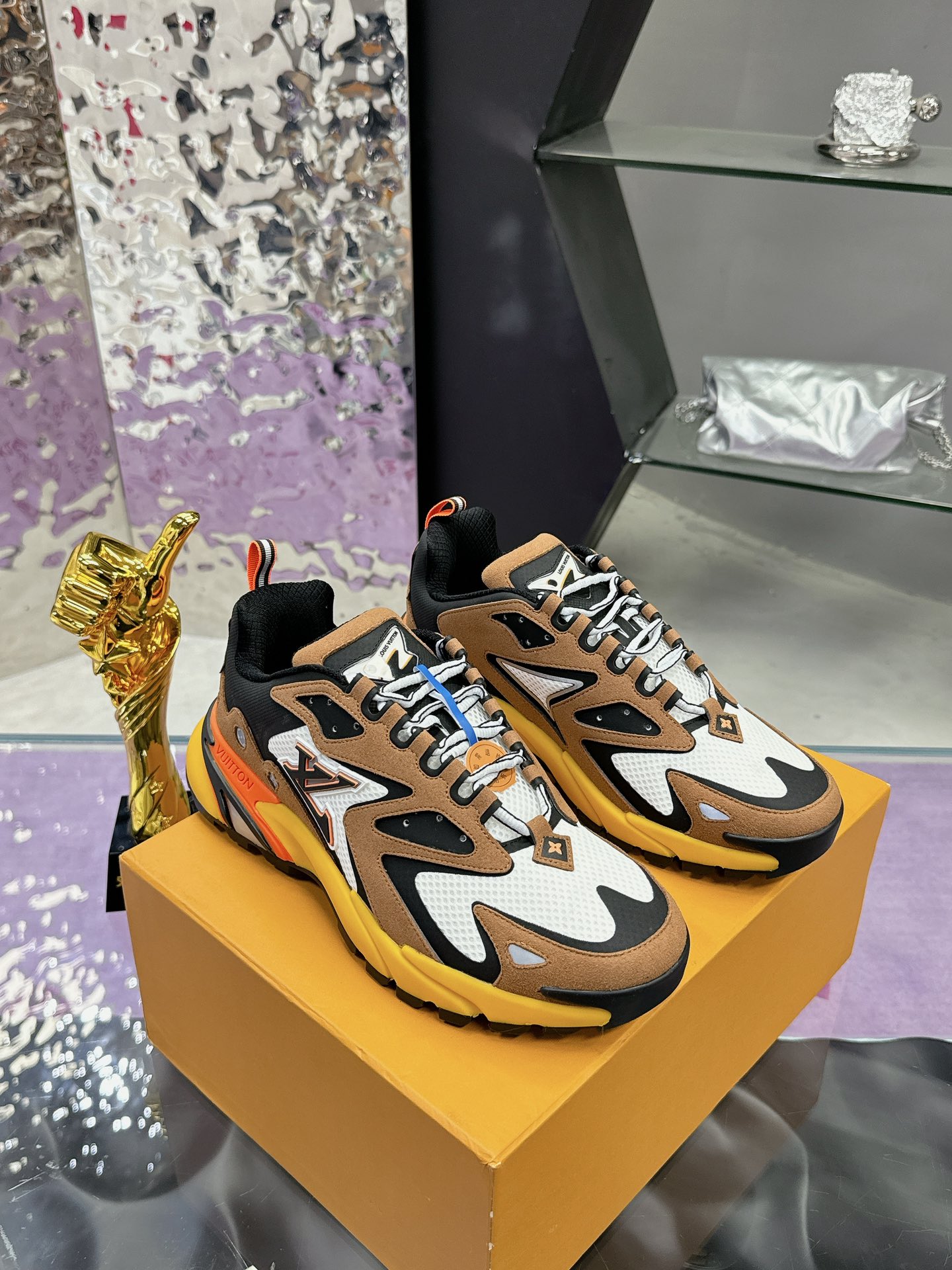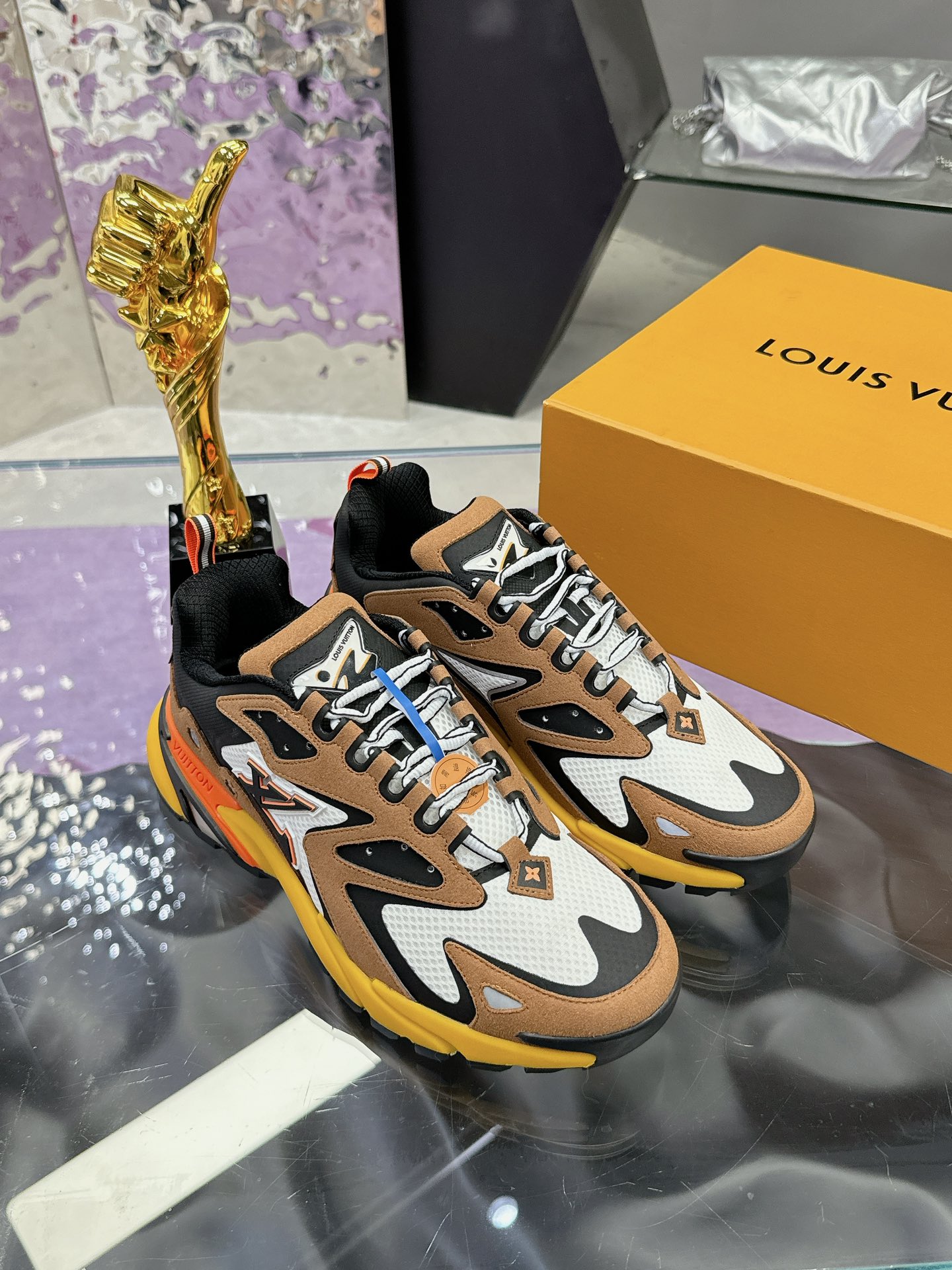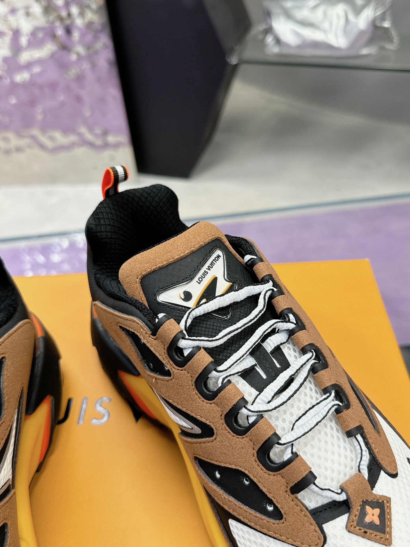 这款鞋子是AAAAA 1:1 质量 (非常棒). 使用了和原版一模一样的材料. 商标部分也保持了和路易威登/Louis Vuitton一样. 图片拍摄是实物鞋子拍摄, 您所收到的实物保证和我们图片一模一样.
