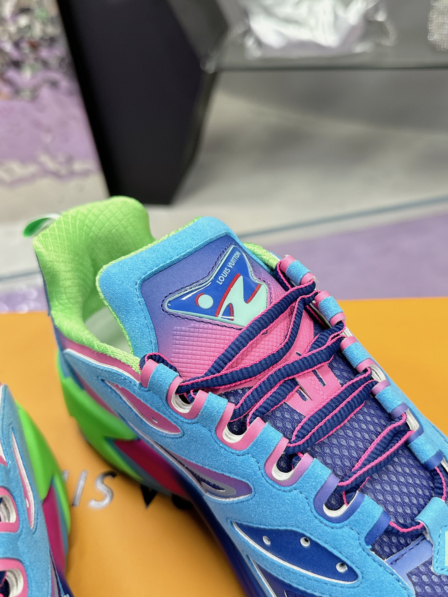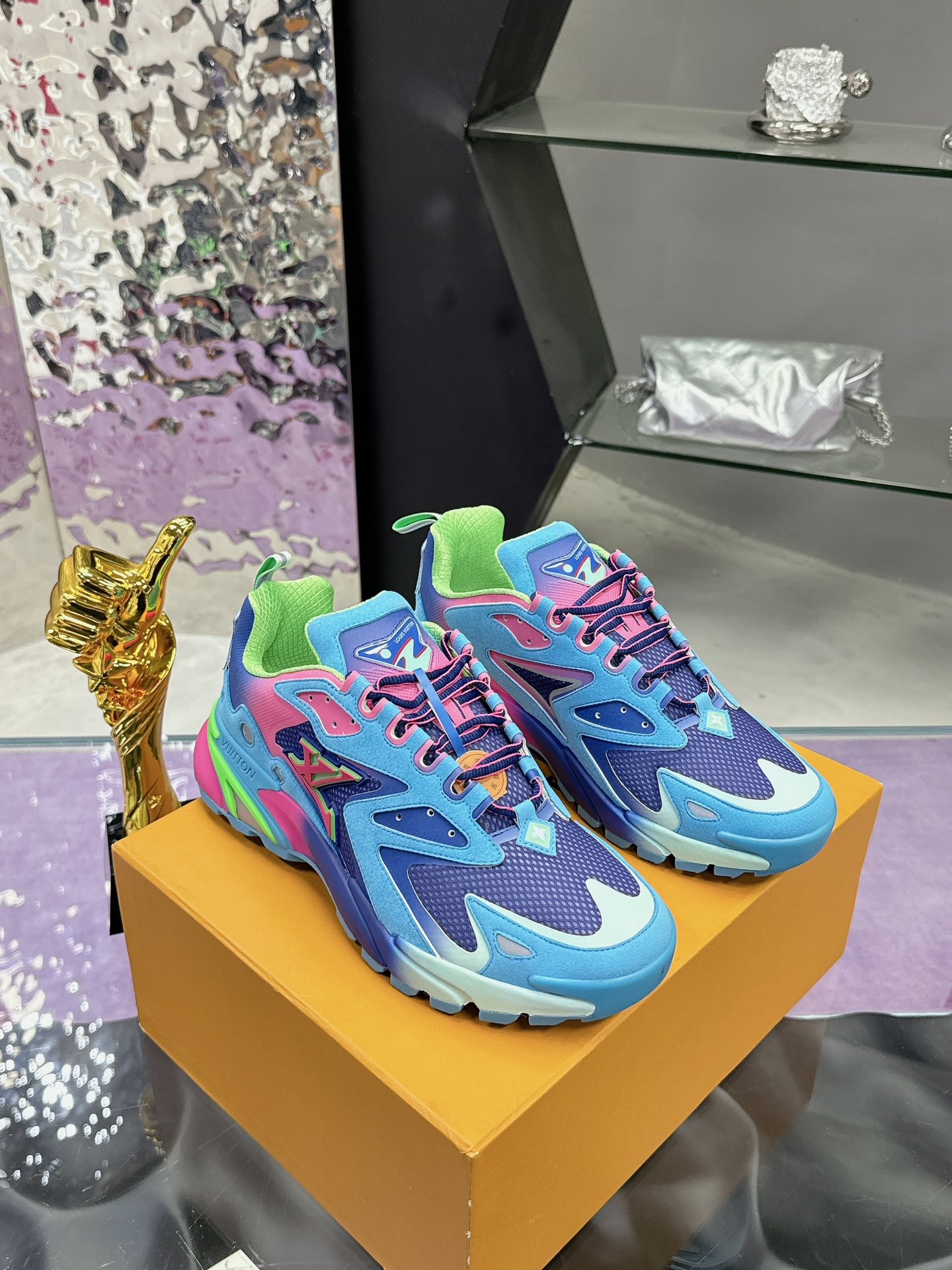 这款鞋子是AAAAA 1:1 质量 (非常棒). 使用了和原版一模一样的材料. 商标部分也保持了和路易威登/Louis Vuitton一样. 图片拍摄是实物鞋子拍摄, 您所收到的实物保证和我们图片一模一样.