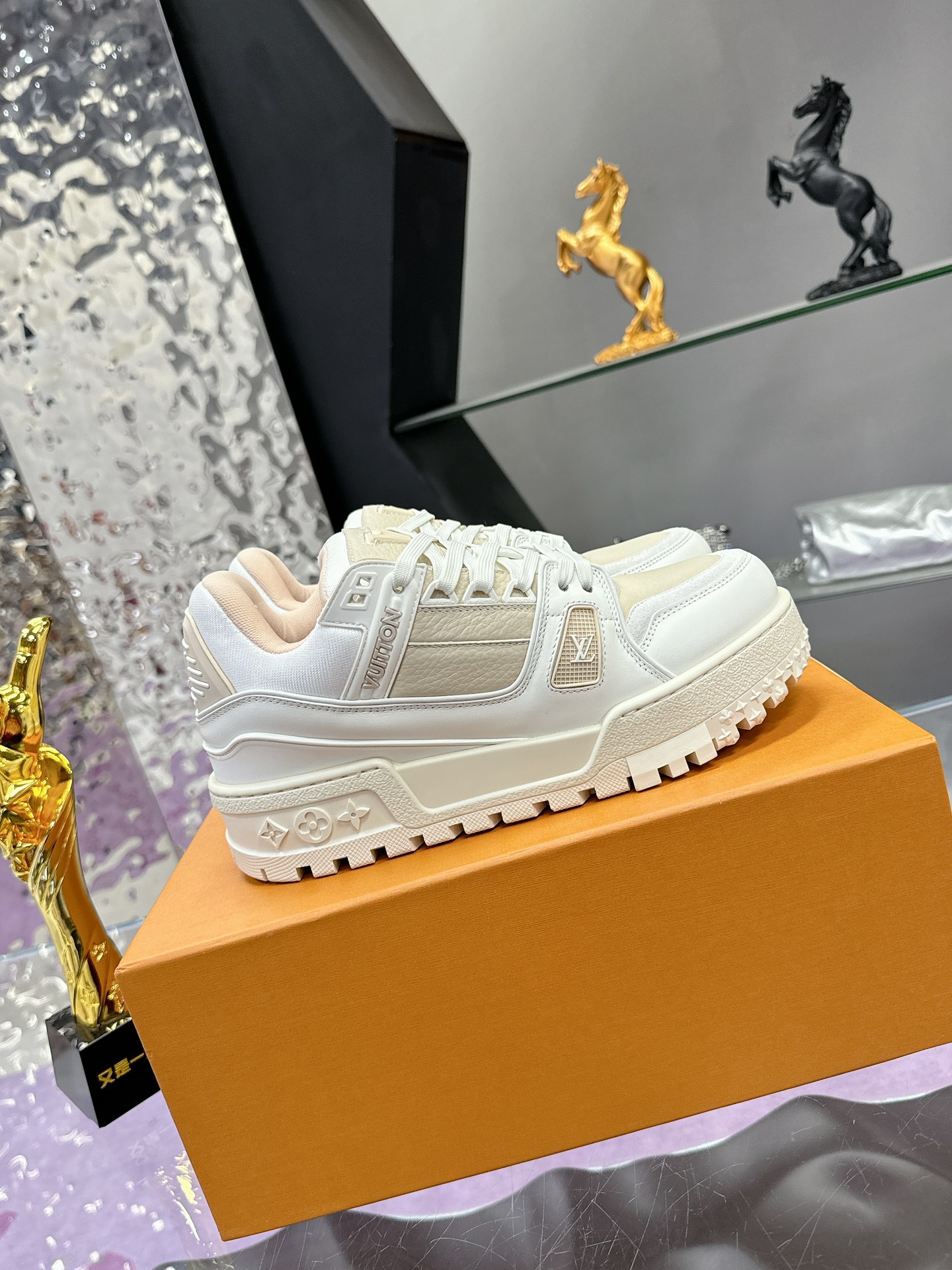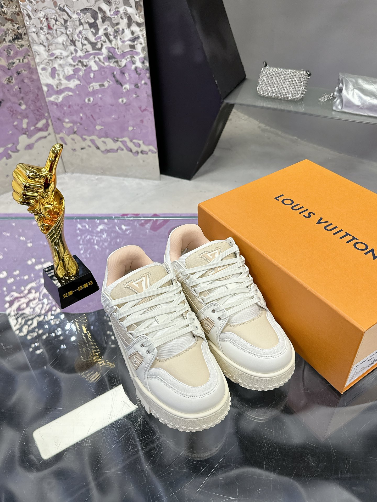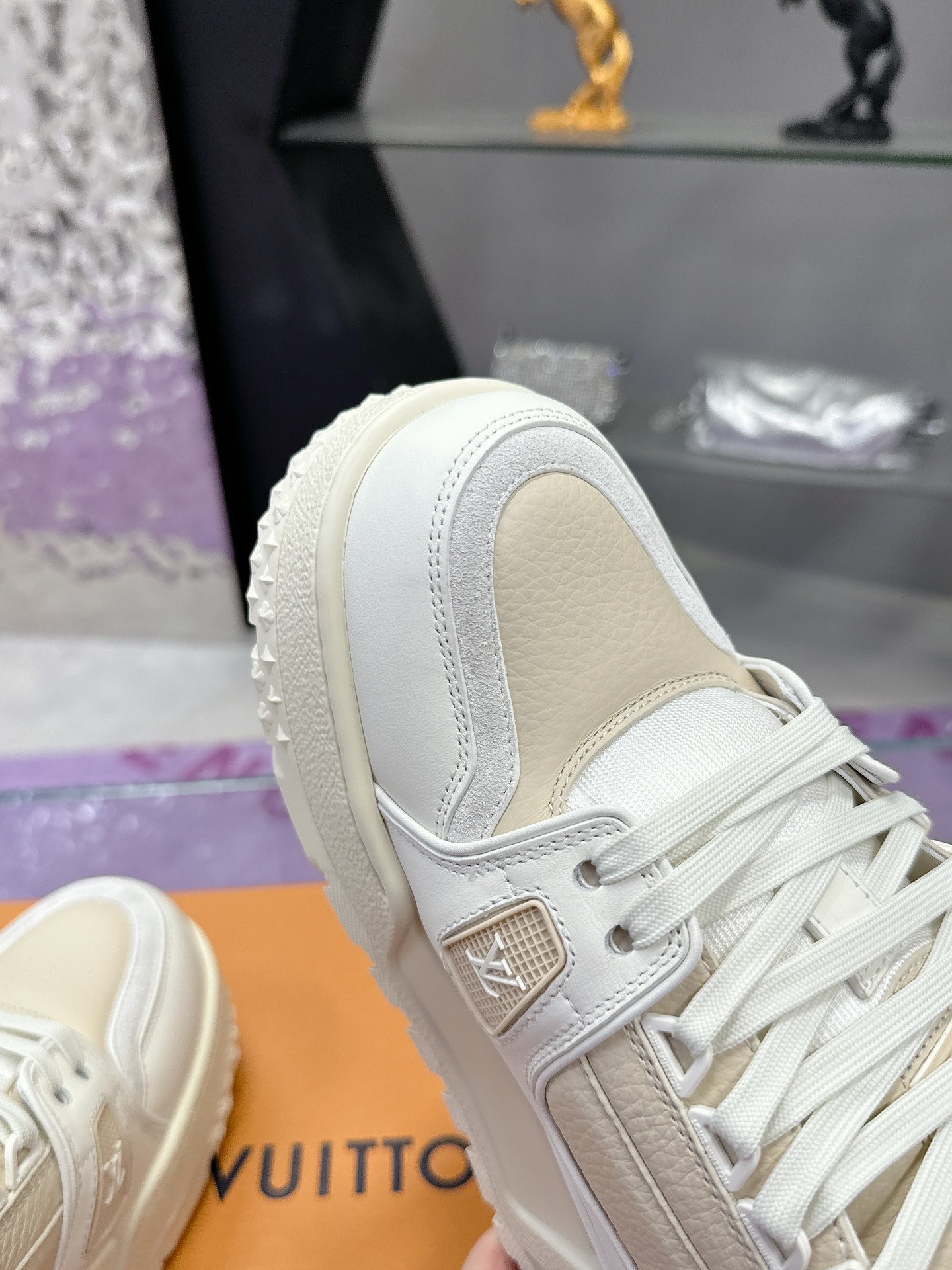 这款鞋子是AAAAA 1:1 质量 (非常棒). 使用了和原版一模一样的材料. 商标部分也保持了和路易威登/Louis Vuitton一样. 图片拍摄是实物鞋子拍摄, 您所收到的实物保证和我们图片一模一样.