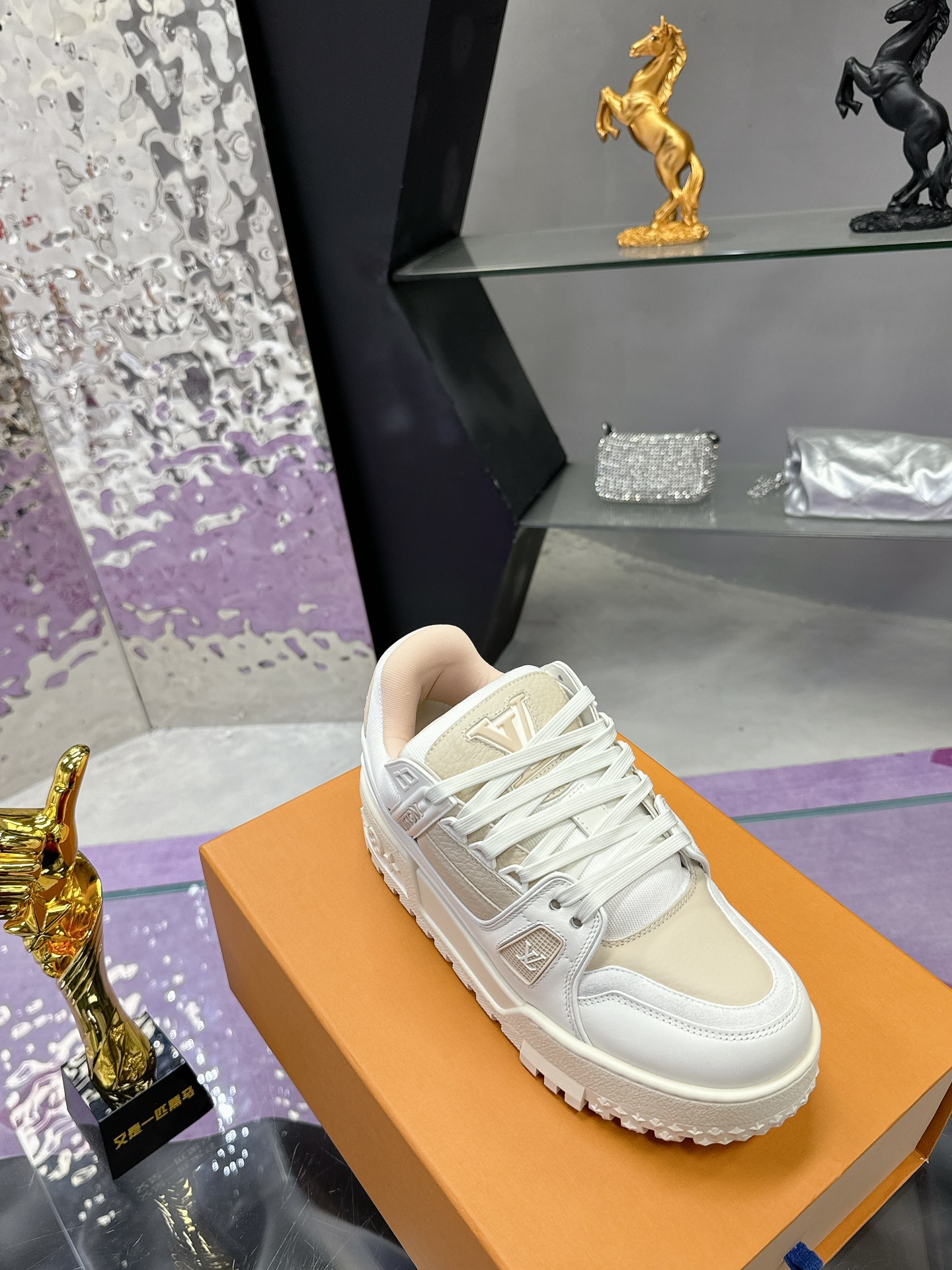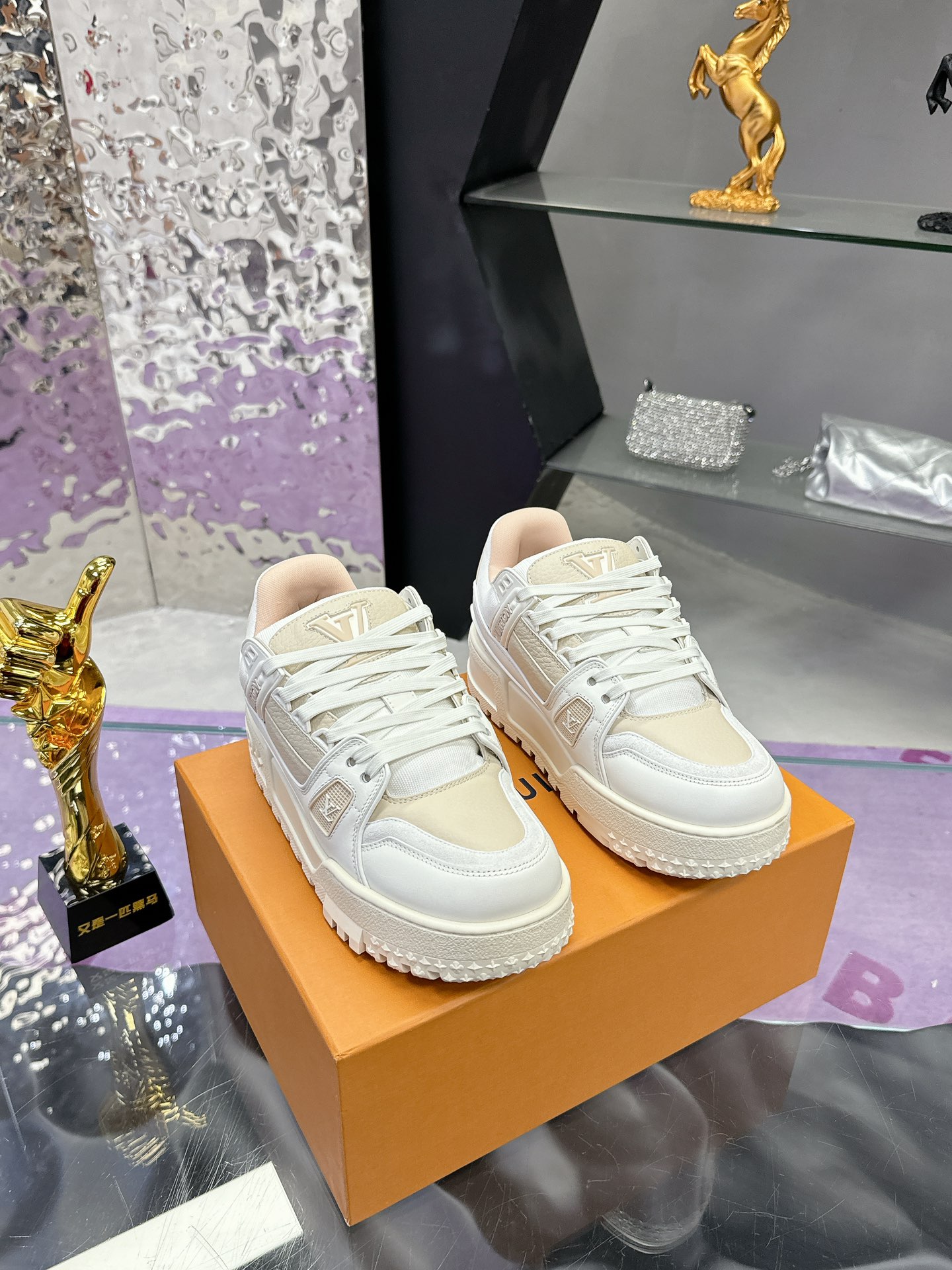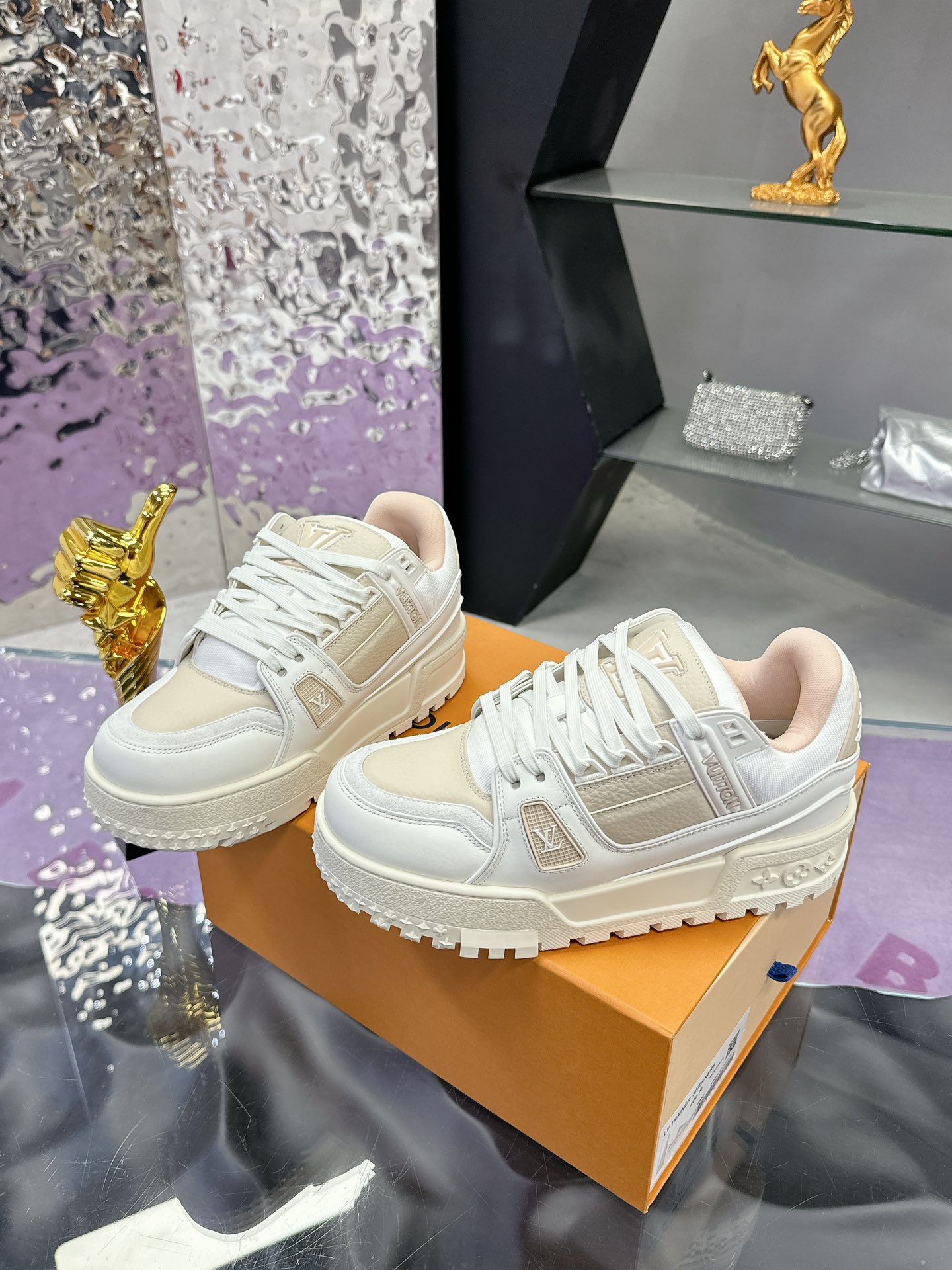这款鞋子是AAAAA 1:1 质量 (非常棒). 使用了和原版一模一样的材料. 商标部分也保持了和路易威登/Louis Vuitton一样. 图片拍摄是实物鞋子拍摄, 您所收到的实物保证和我们图片一模一样.
