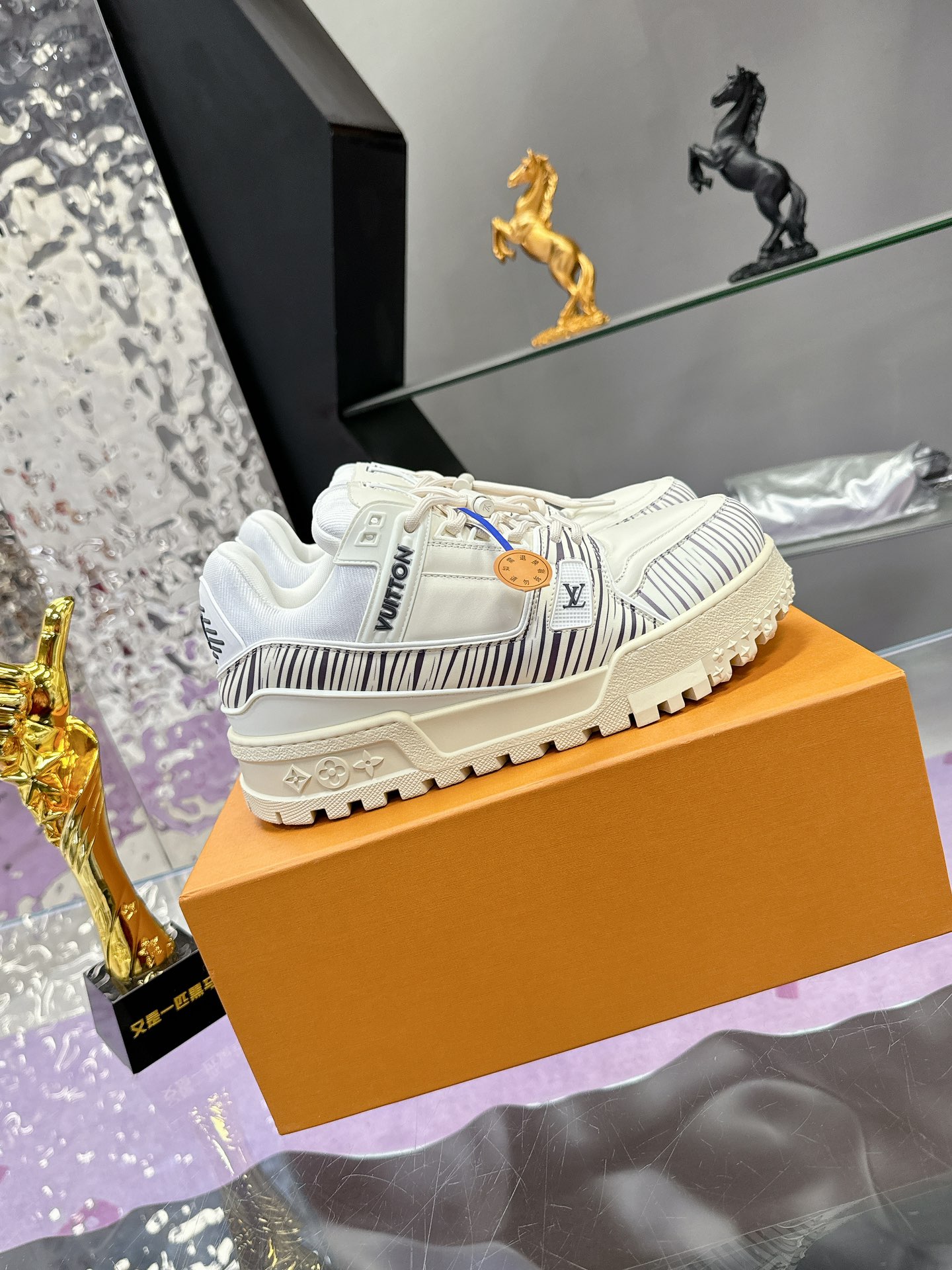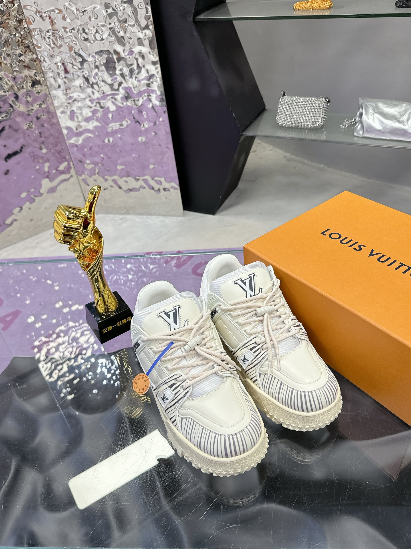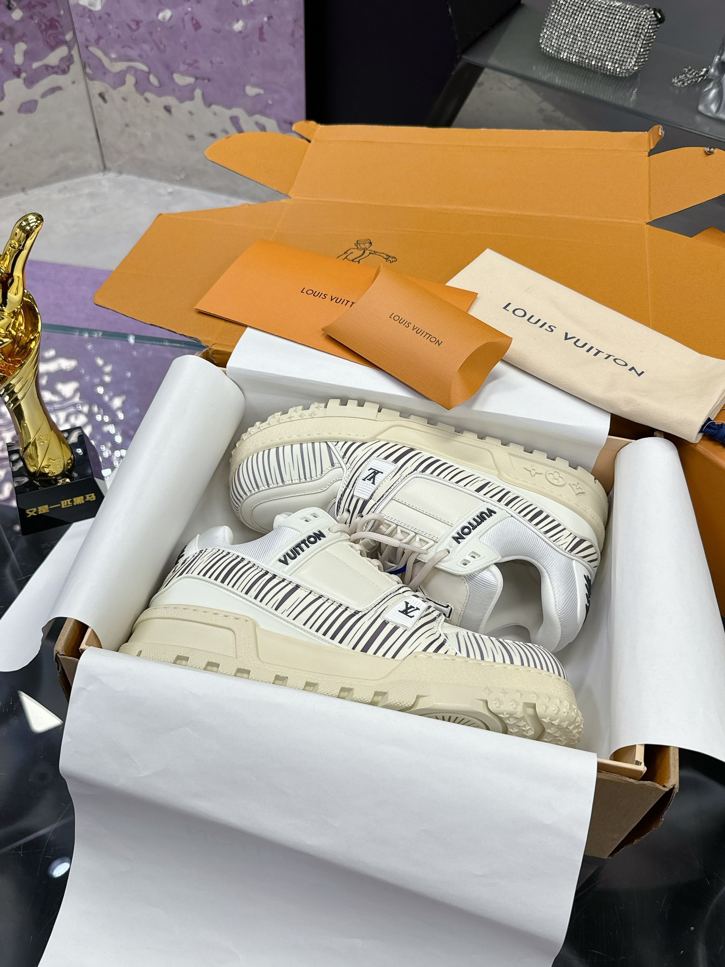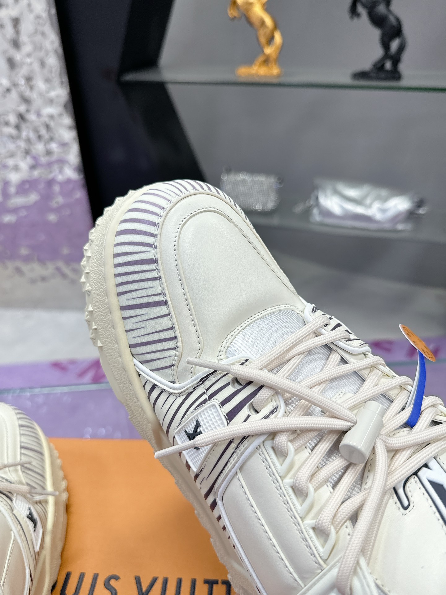 这款鞋子是AAAAA 1:1 质量 (非常棒). 使用了和原版一模一样的材料. 商标部分也保持了和路易威登/Louis Vuitton一样. 图片拍摄是实物鞋子拍摄, 您所收到的实物保证和我们图片一模一样.