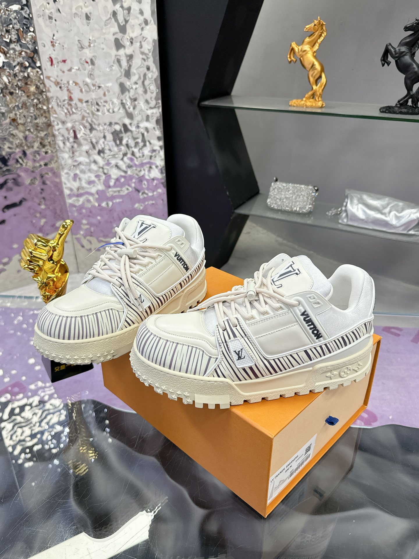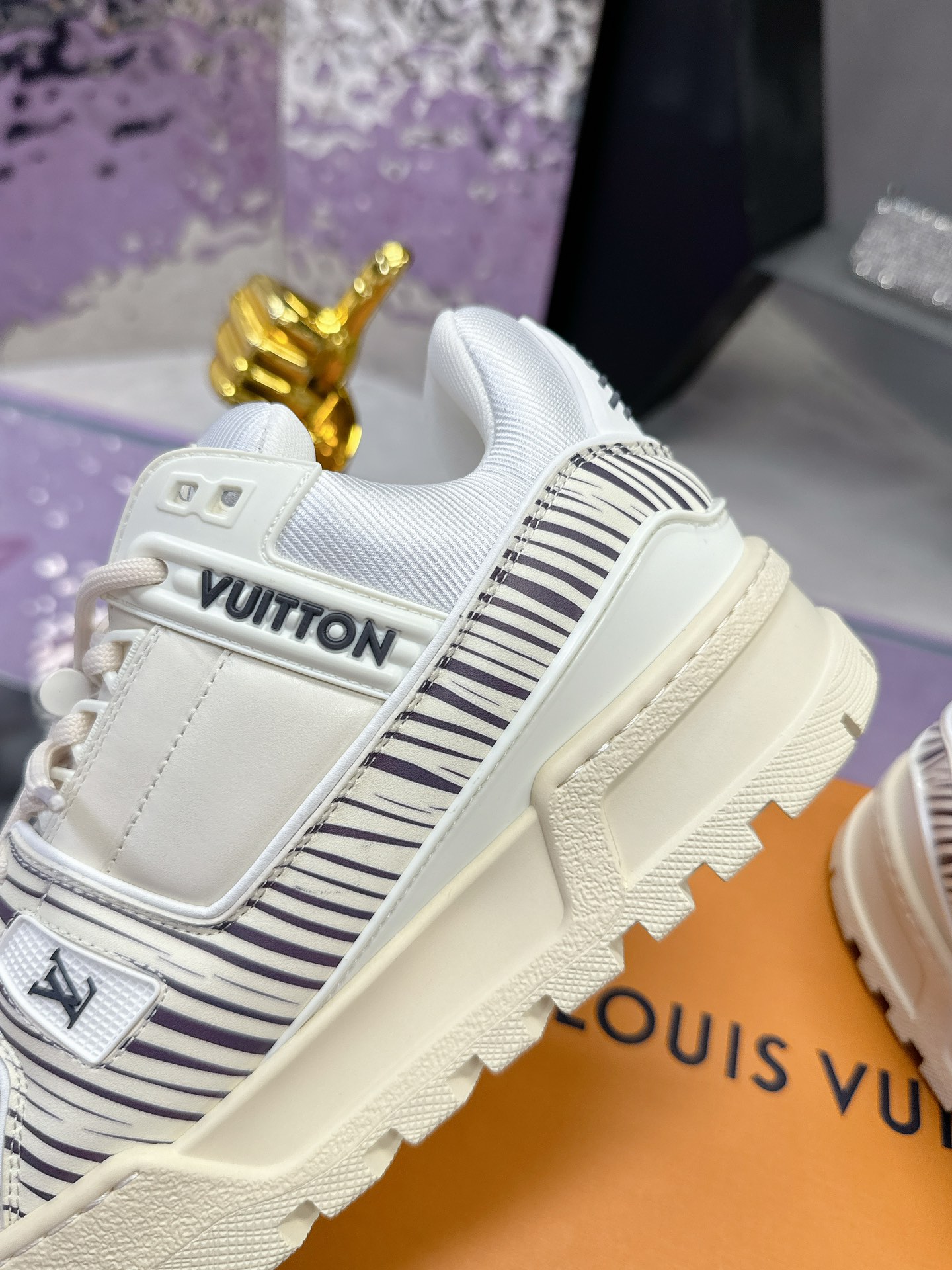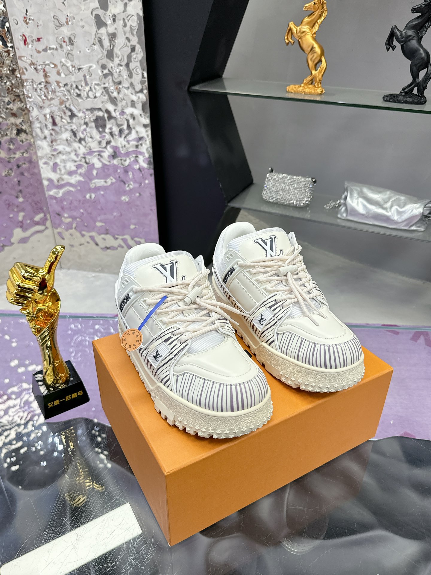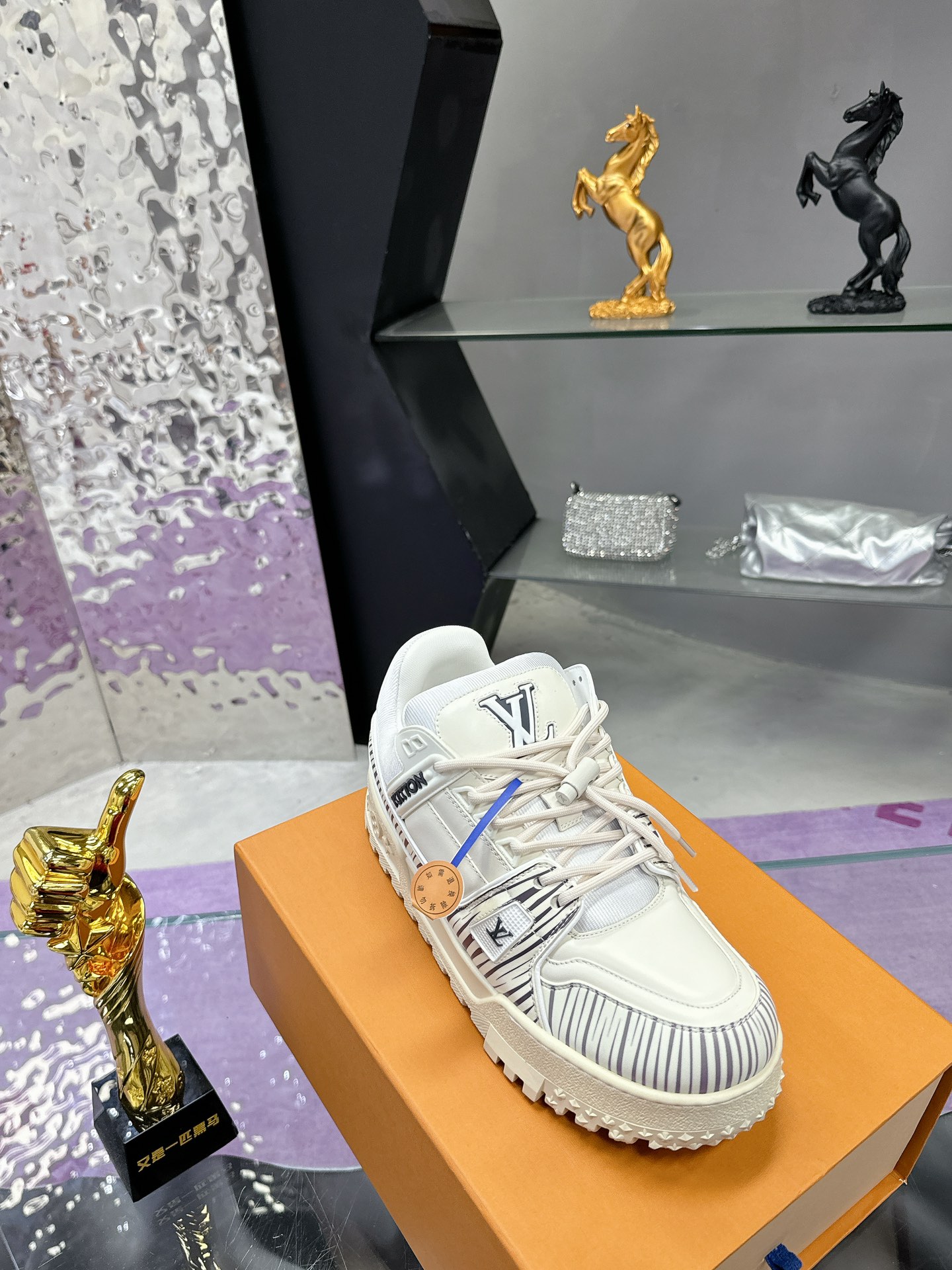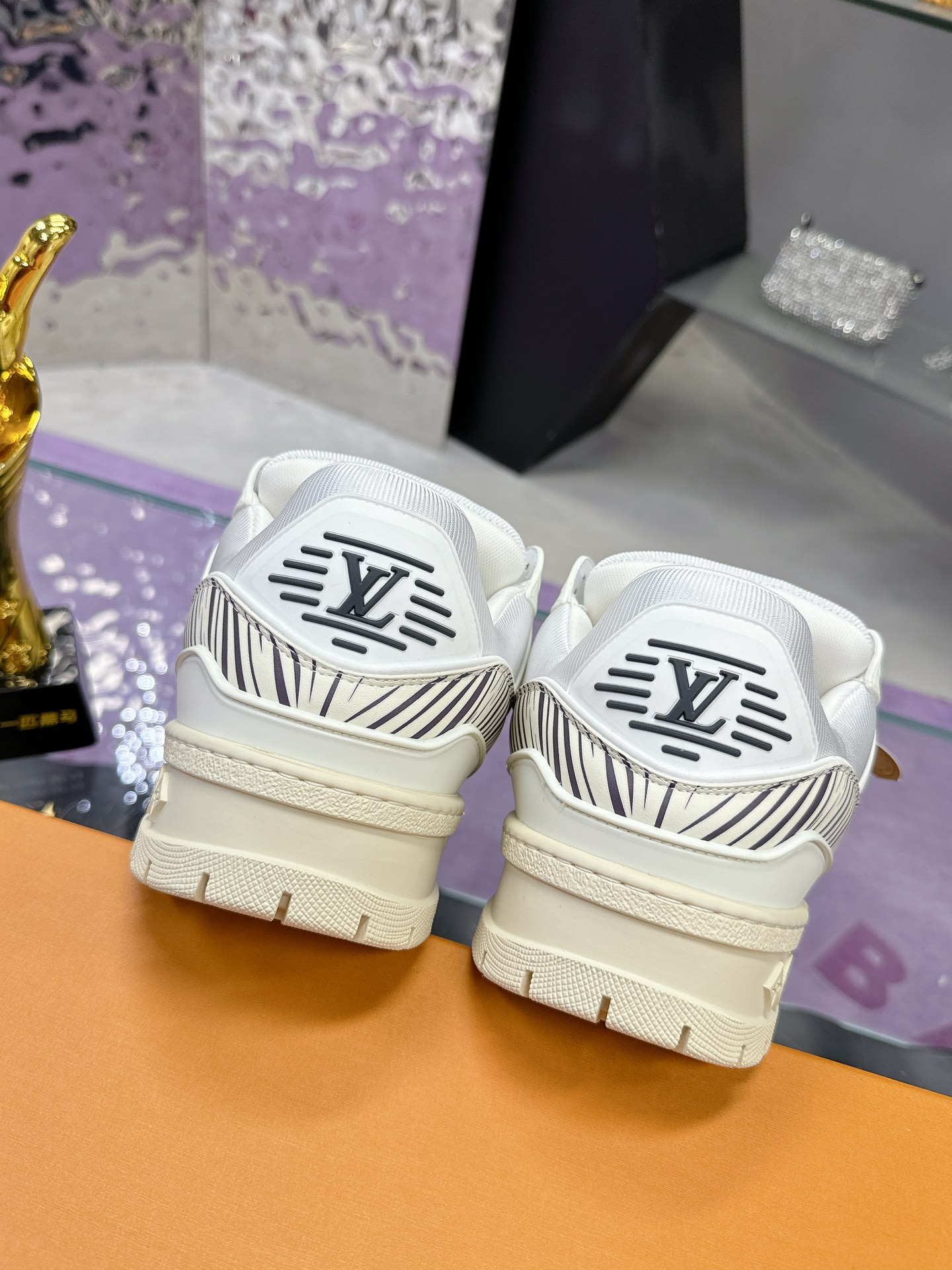 这款鞋子是AAAAA 1:1 质量 (非常棒). 使用了和原版一模一样的材料. 商标部分也保持了和路易威登/Louis Vuitton一样. 图片拍摄是实物鞋子拍摄, 您所收到的实物保证和我们图片一模一样.