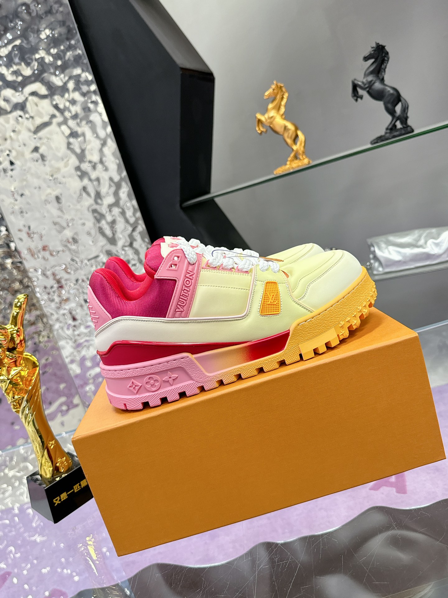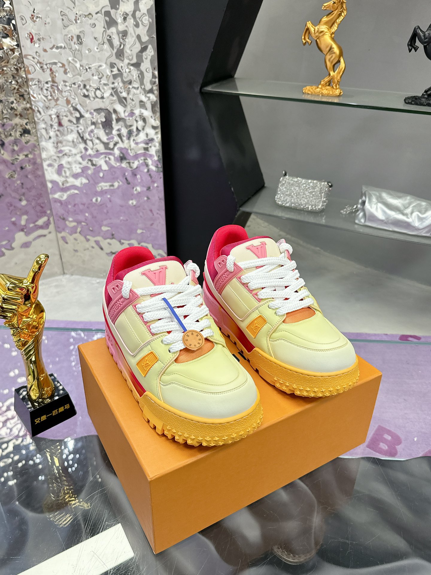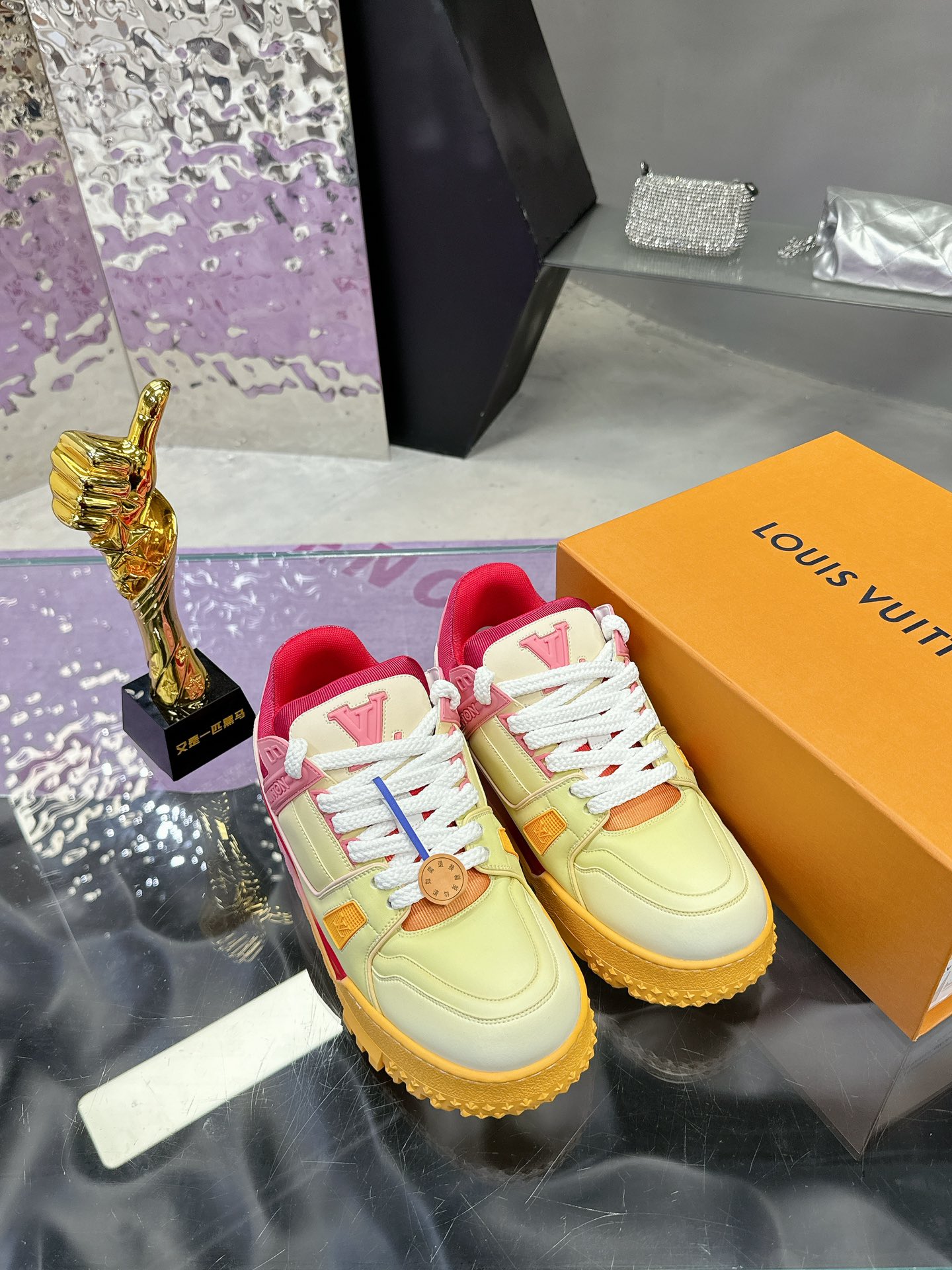 这款鞋子是AAAAA 1:1 质量 (非常棒). 使用了和原版一模一样的材料. 商标部分也保持了和路易威登/Louis Vuitton一样. 图片拍摄是实物鞋子拍摄, 您所收到的实物保证和我们图片一模一样.