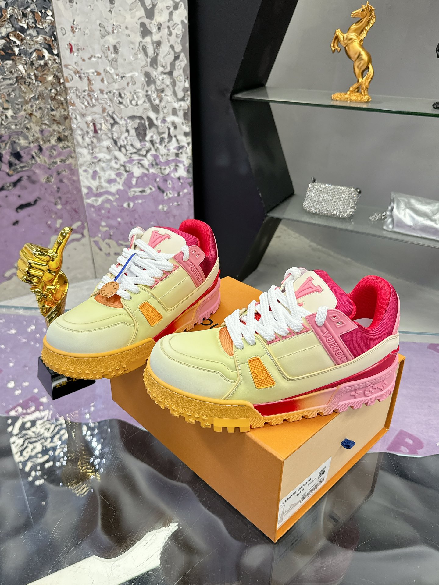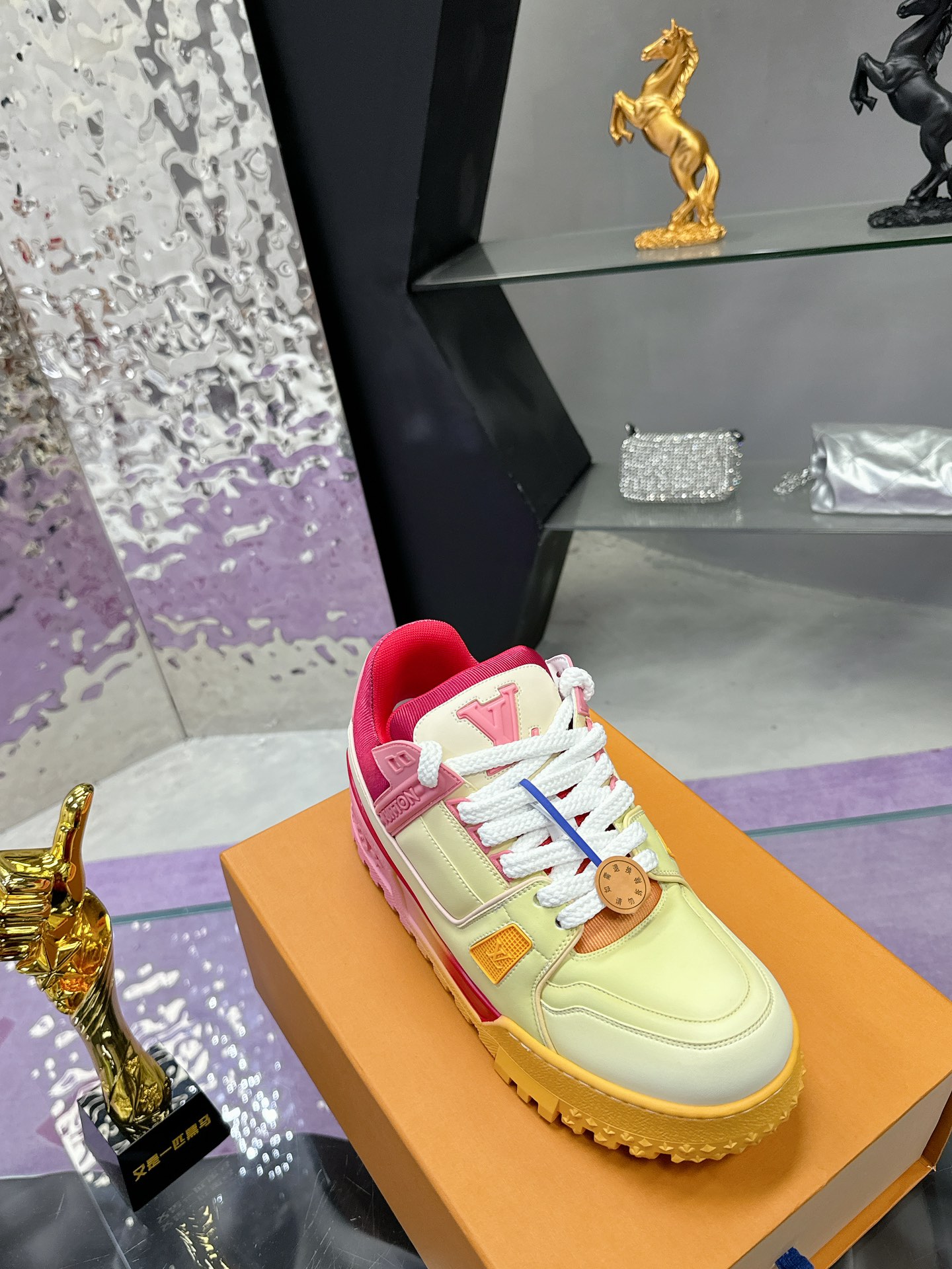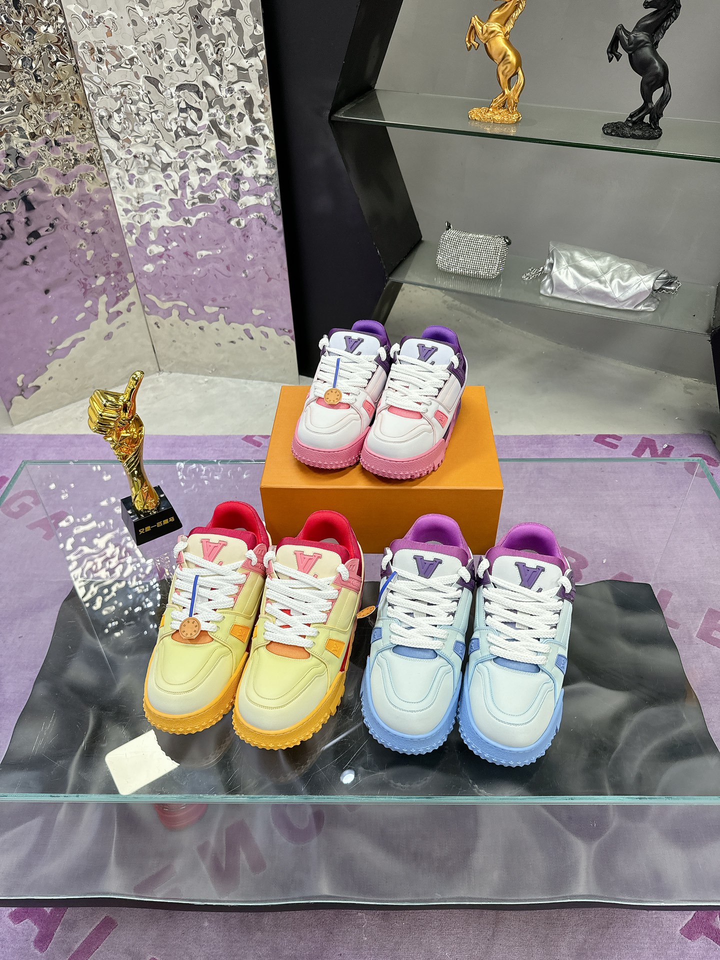 这款鞋子是AAAAA 1:1 质量 (非常棒). 使用了和原版一模一样的材料. 商标部分也保持了和路易威登/Louis Vuitton一样. 图片拍摄是实物鞋子拍摄, 您所收到的实物保证和我们图片一模一样.