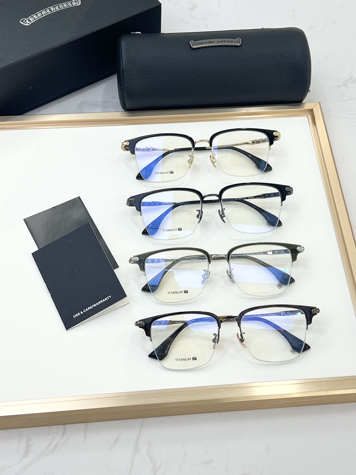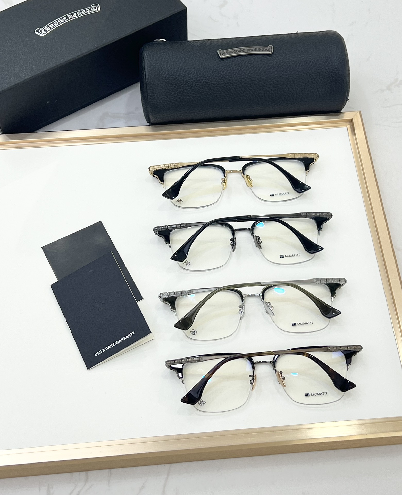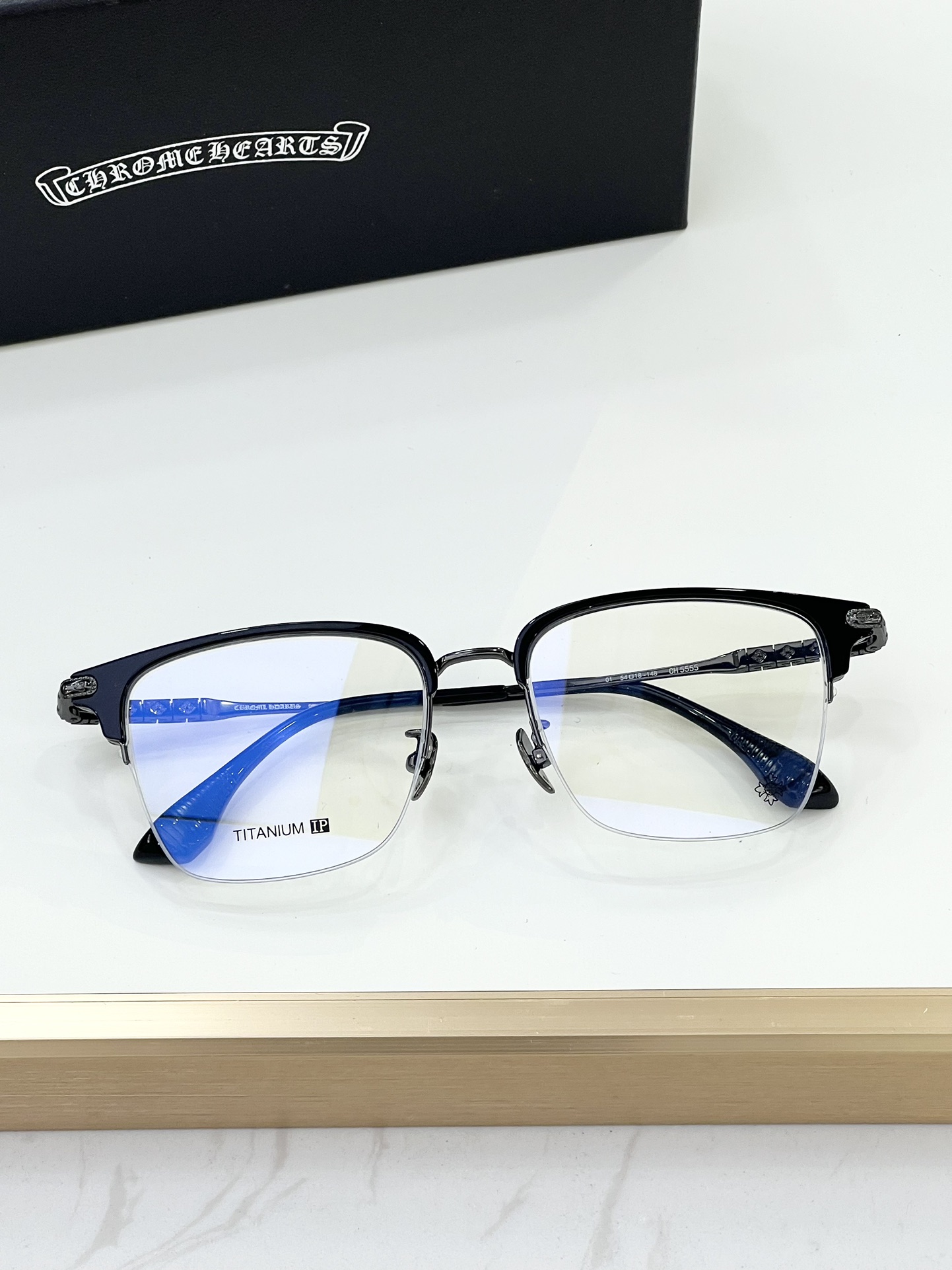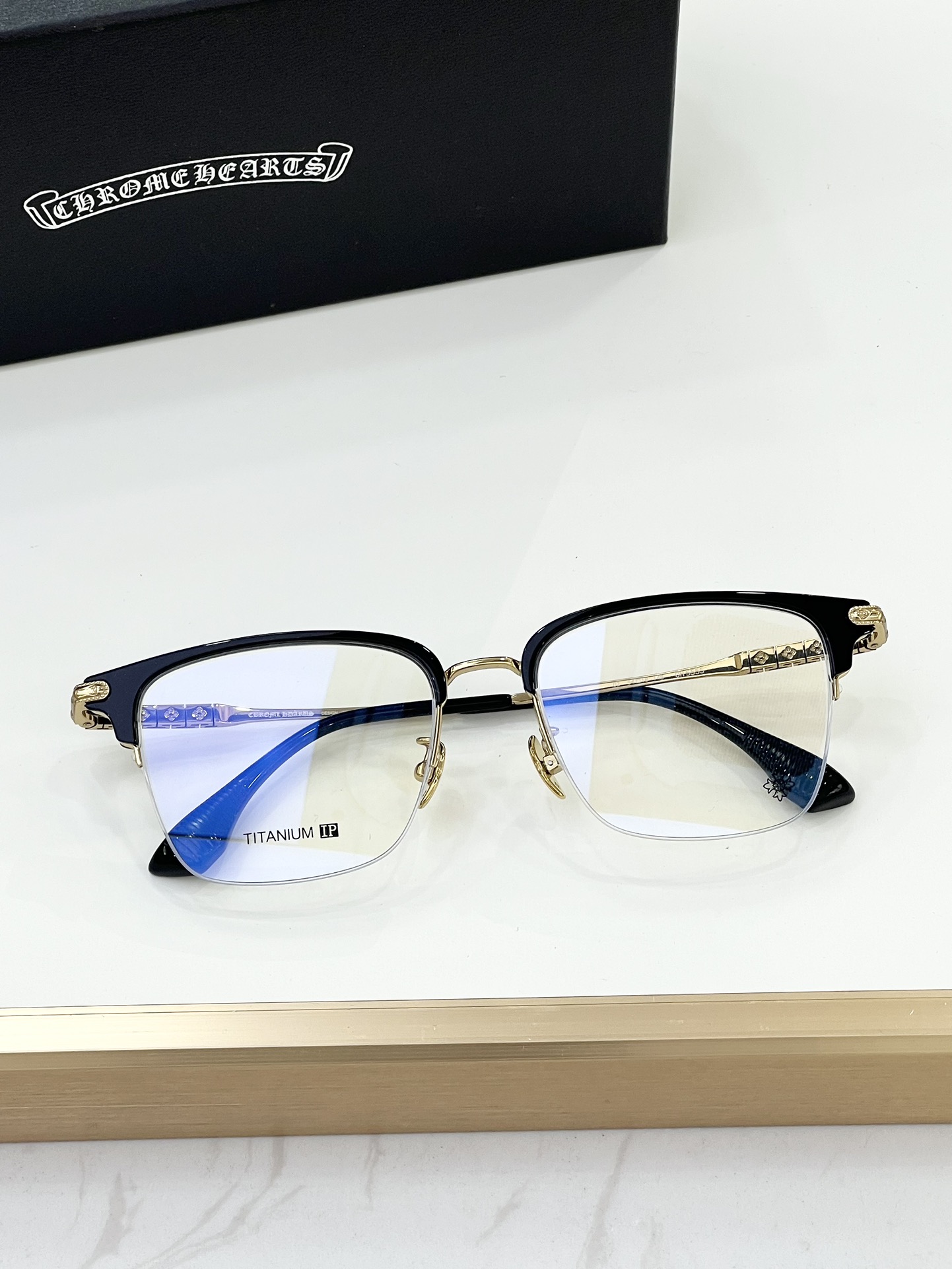 这款太阳眼镜是AAAAA 1:1 质量 (非常棒). 使用了和原版一模一样的材料. 商标部分也保持了和克罗心/Chrome Hearts一样. 图片拍摄是实物太阳眼镜拍摄, 您所收到的实物保证和我们图片一模一样.