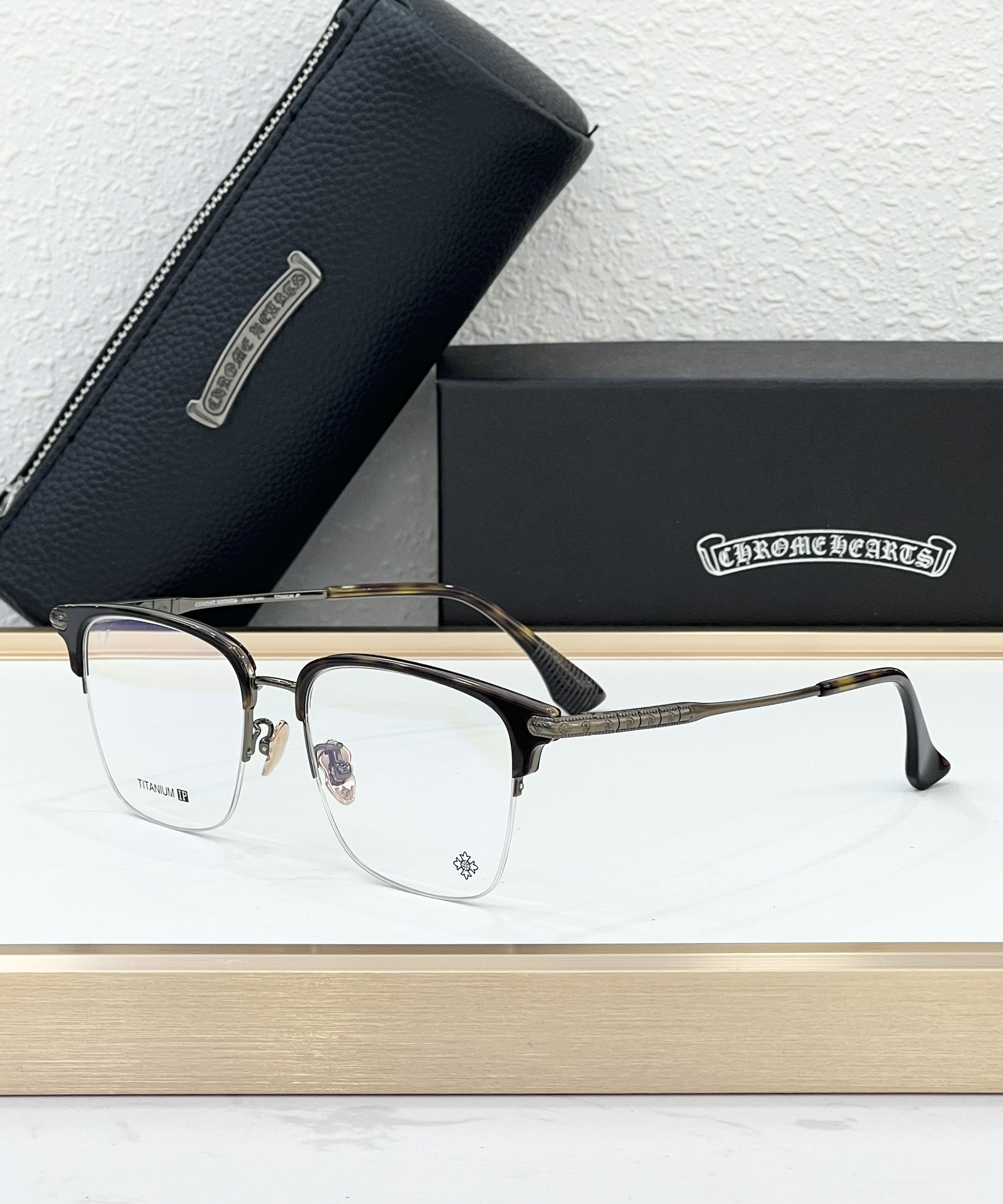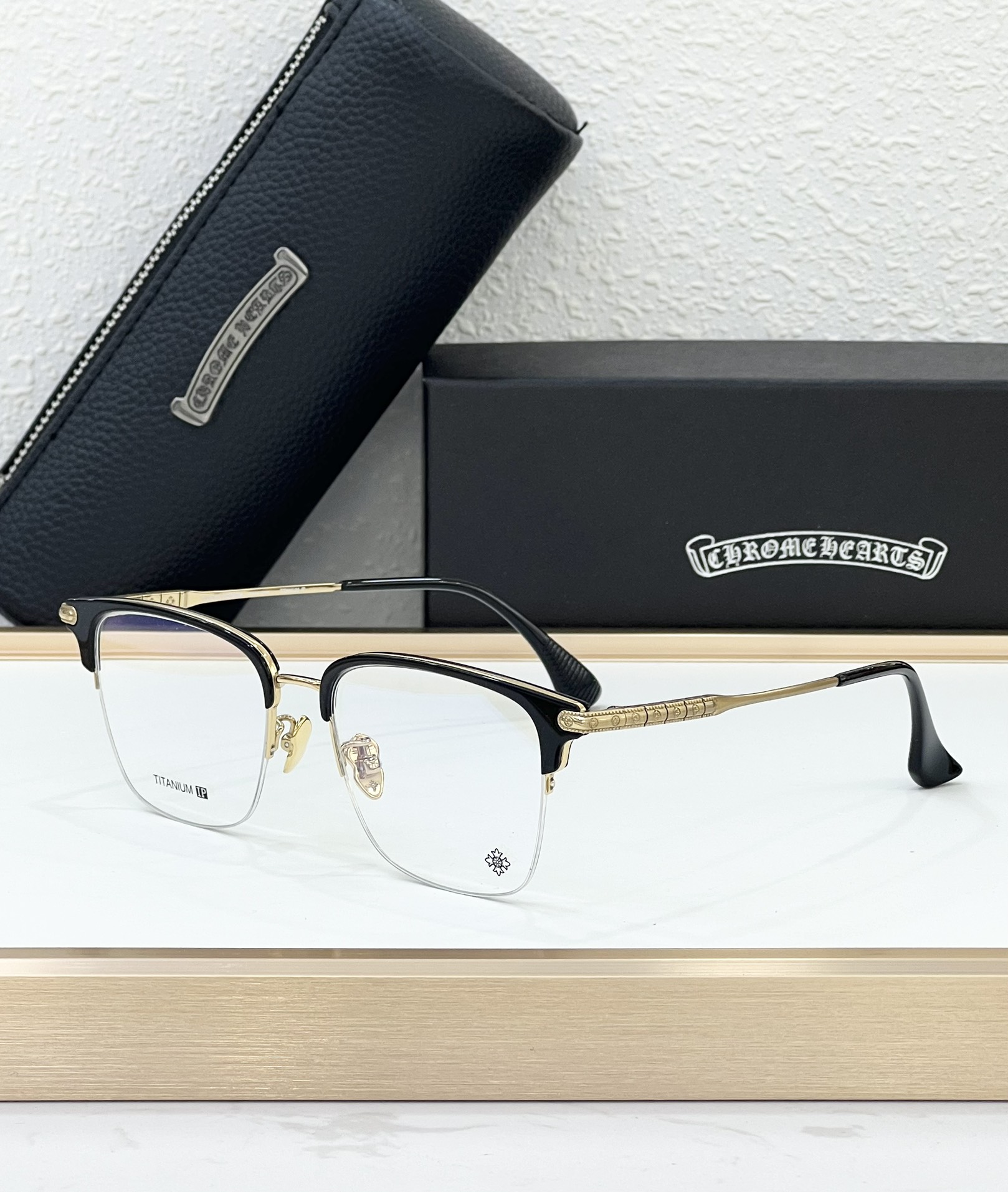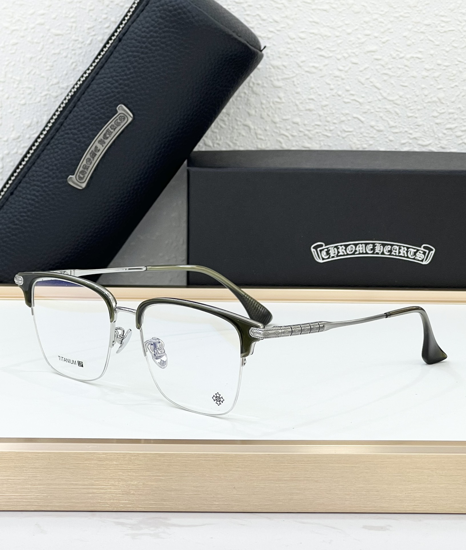 这款太阳眼镜是AAAAA 1:1 质量 (非常棒). 使用了和原版一模一样的材料. 商标部分也保持了和克罗心/Chrome Hearts一样. 图片拍摄是实物太阳眼镜拍摄, 您所收到的实物保证和我们图片一模一样.