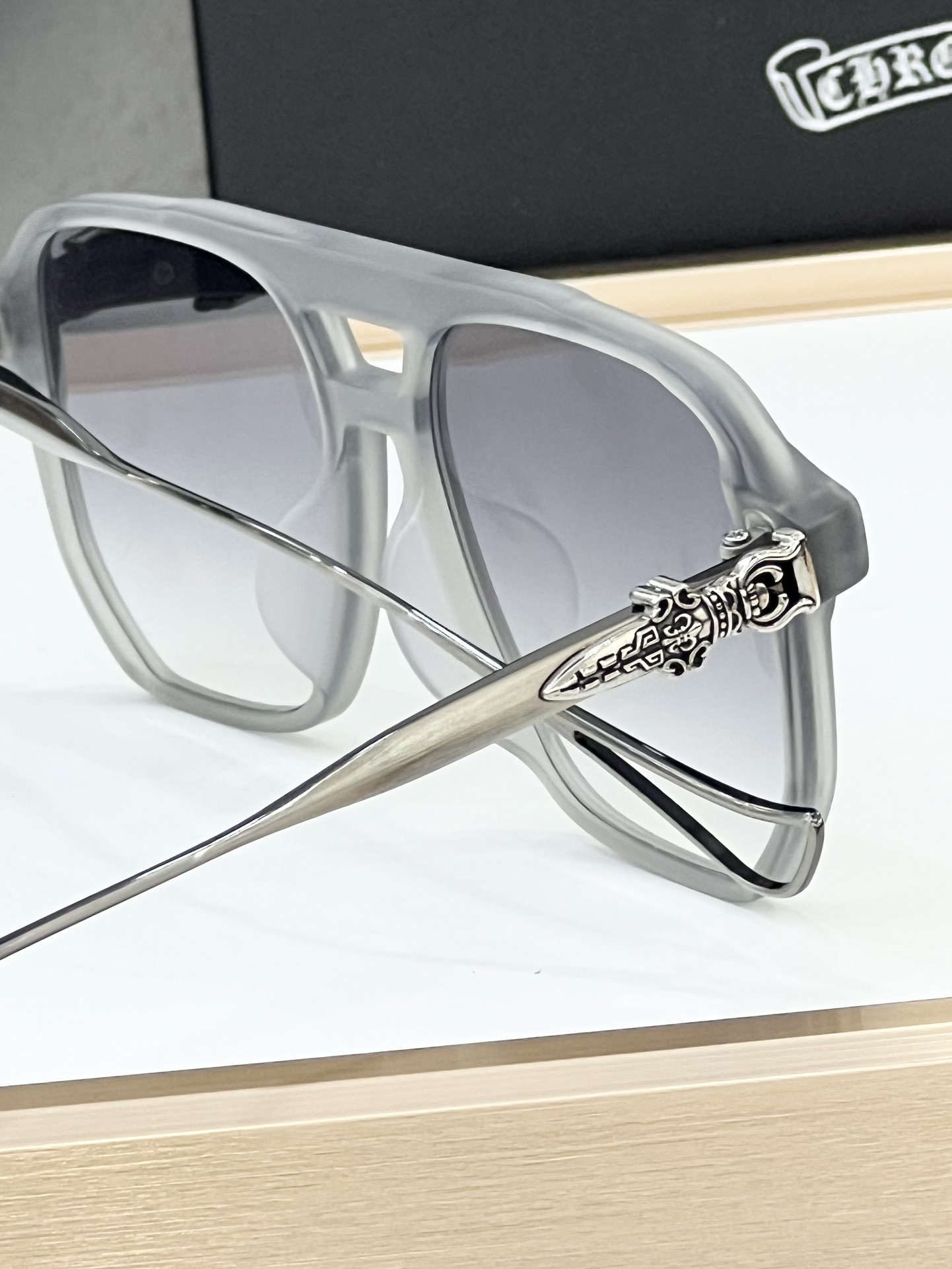 这款太阳眼镜是AAAAA 1:1 质量 (非常棒). 使用了和原版一模一样的材料. 商标部分也保持了和克罗心/Chrome Hearts一样. 图片拍摄是实物太阳眼镜拍摄, 您所收到的实物保证和我们图片一模一样.
