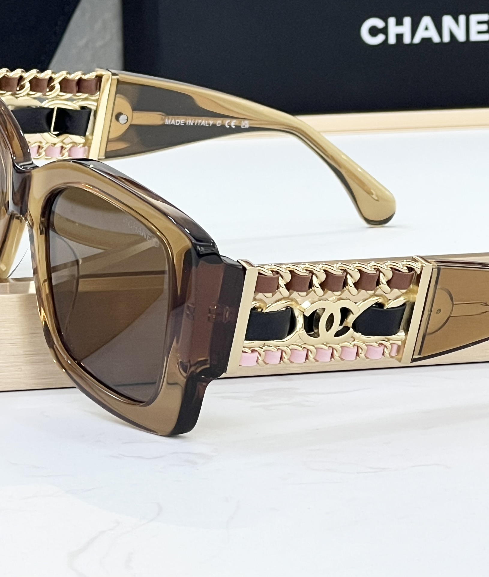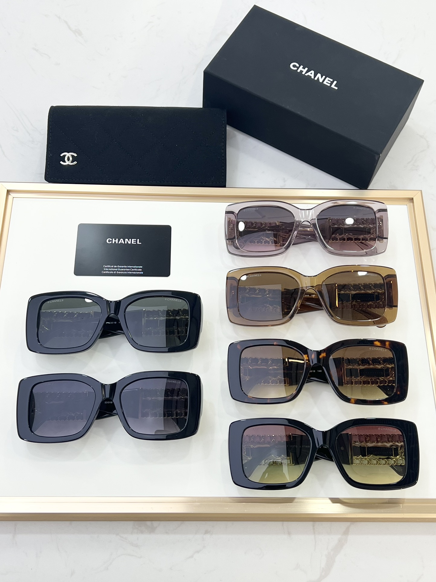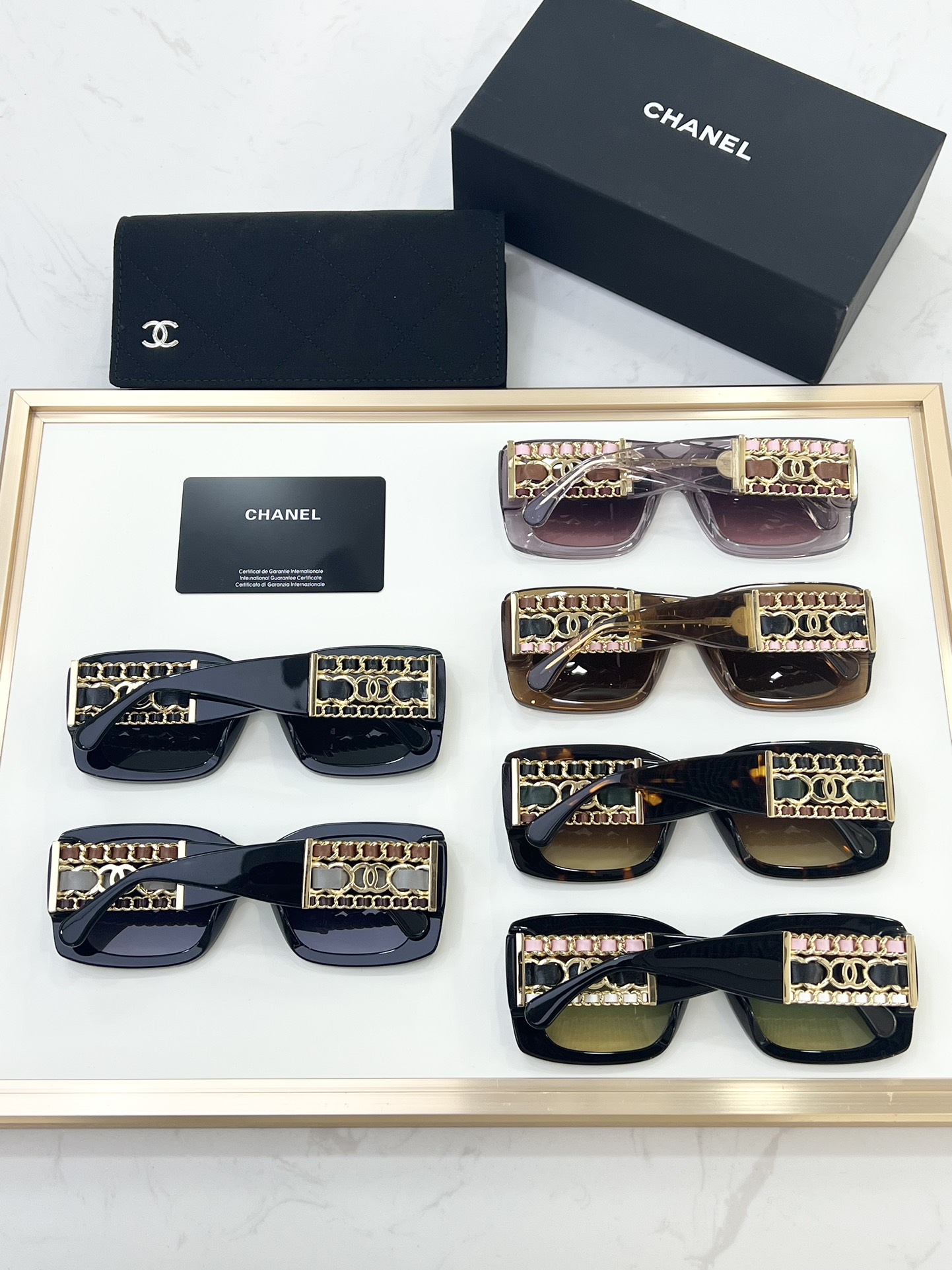 这款太阳眼镜是AAAAA 1:1 质量 (非常棒). 使用了和原版一模一样的材料. 商标部分也保持了和香奈儿/Chanel一样. 图片拍摄是实物太阳眼镜拍摄, 您所收到的实物保证和我们图片一模一样.