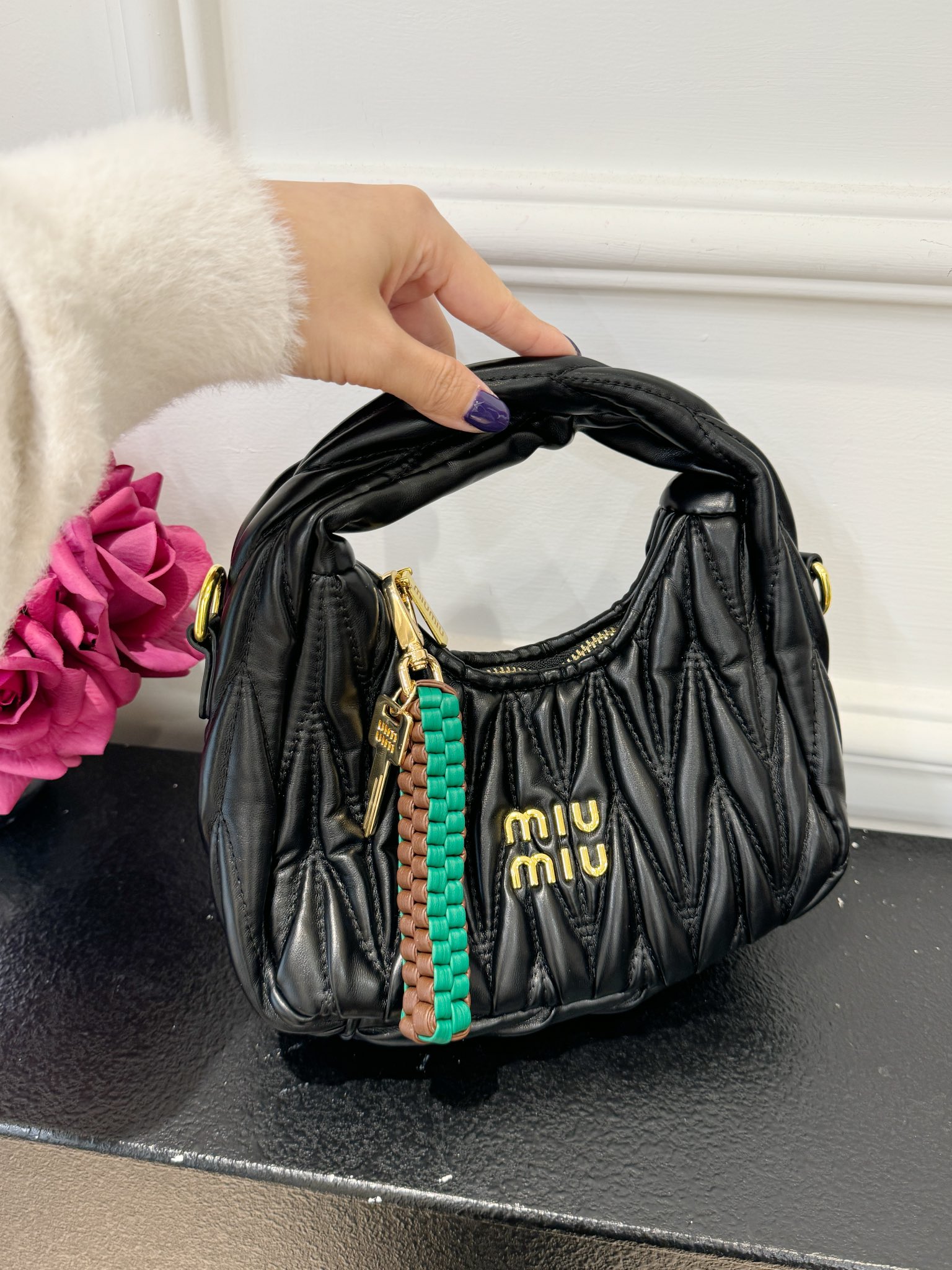 这款首饰是AAAAA 1:1 质量 (非常棒). 使用了和原版一模一样的材料. 商标部分也保持了和缪缪/Miu Miu一样. 图片拍摄是实物首饰拍摄, 您所收到的实物保证和我们图片一模一样.
