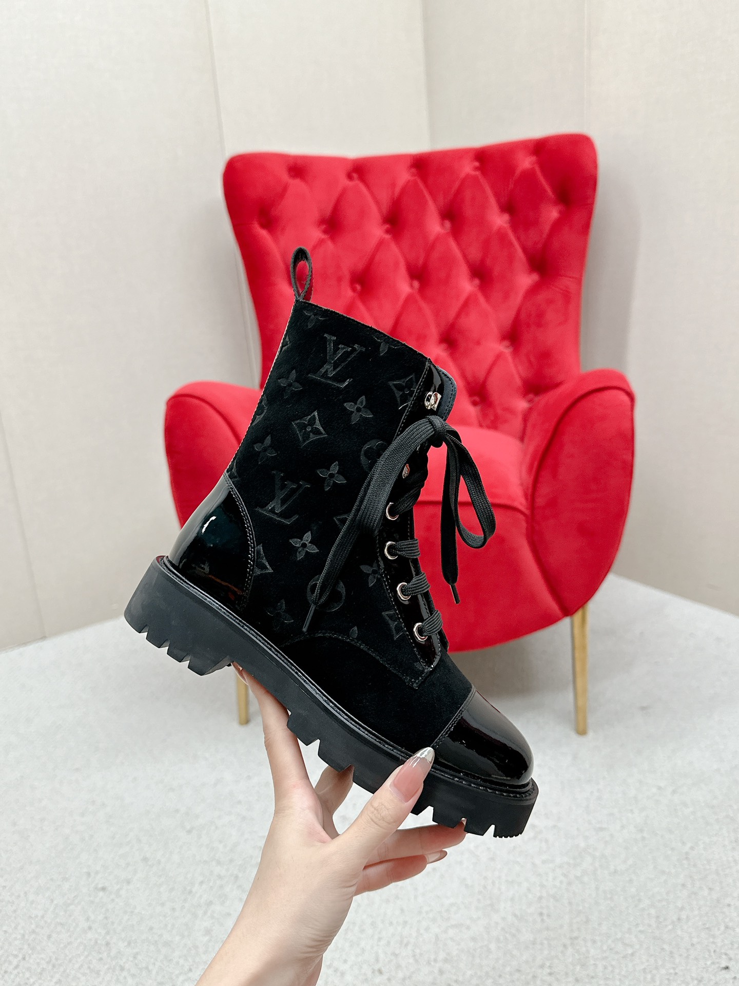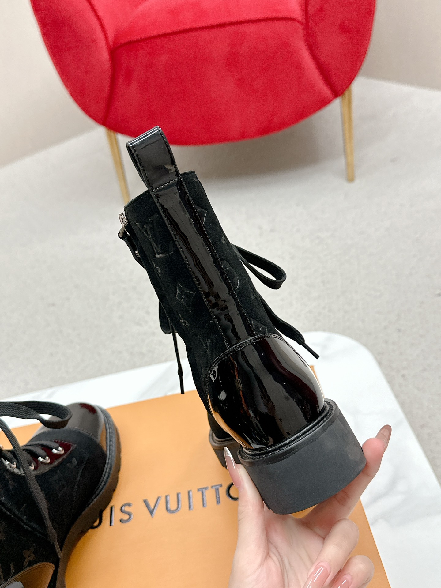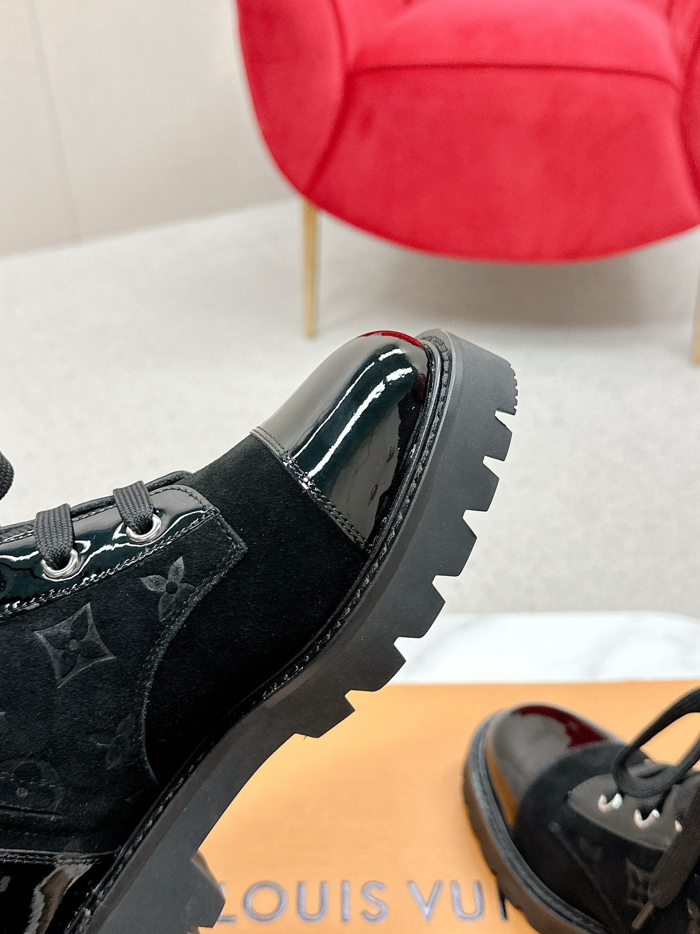 这款鞋子是AAAAA 1:1 质量 (非常棒). 使用了和原版一模一样的材料. 商标部分也保持了和路易威登/Louis Vuitton一样. 图片拍摄是实物鞋子拍摄, 您所收到的实物保证和我们图片一模一样.