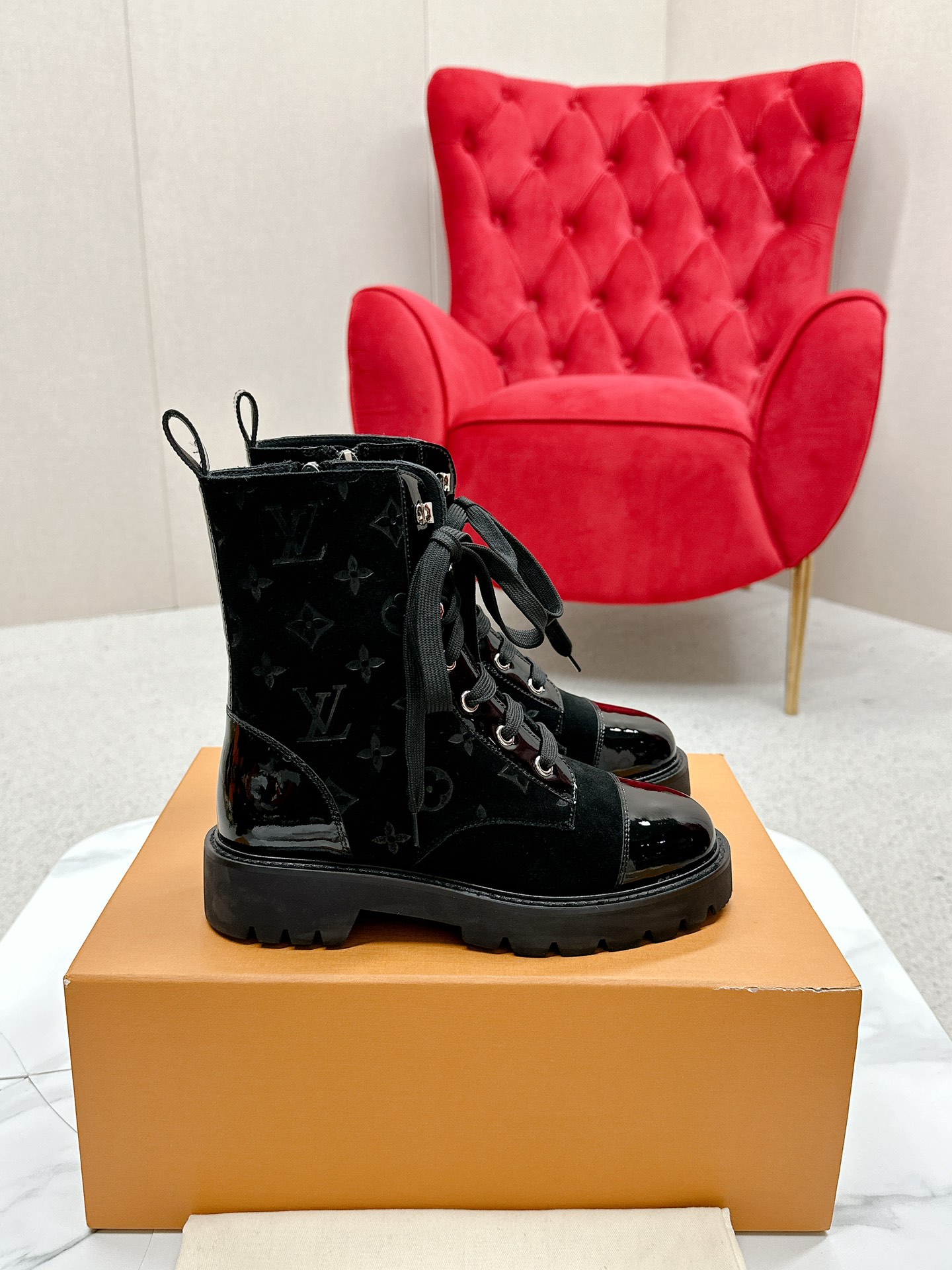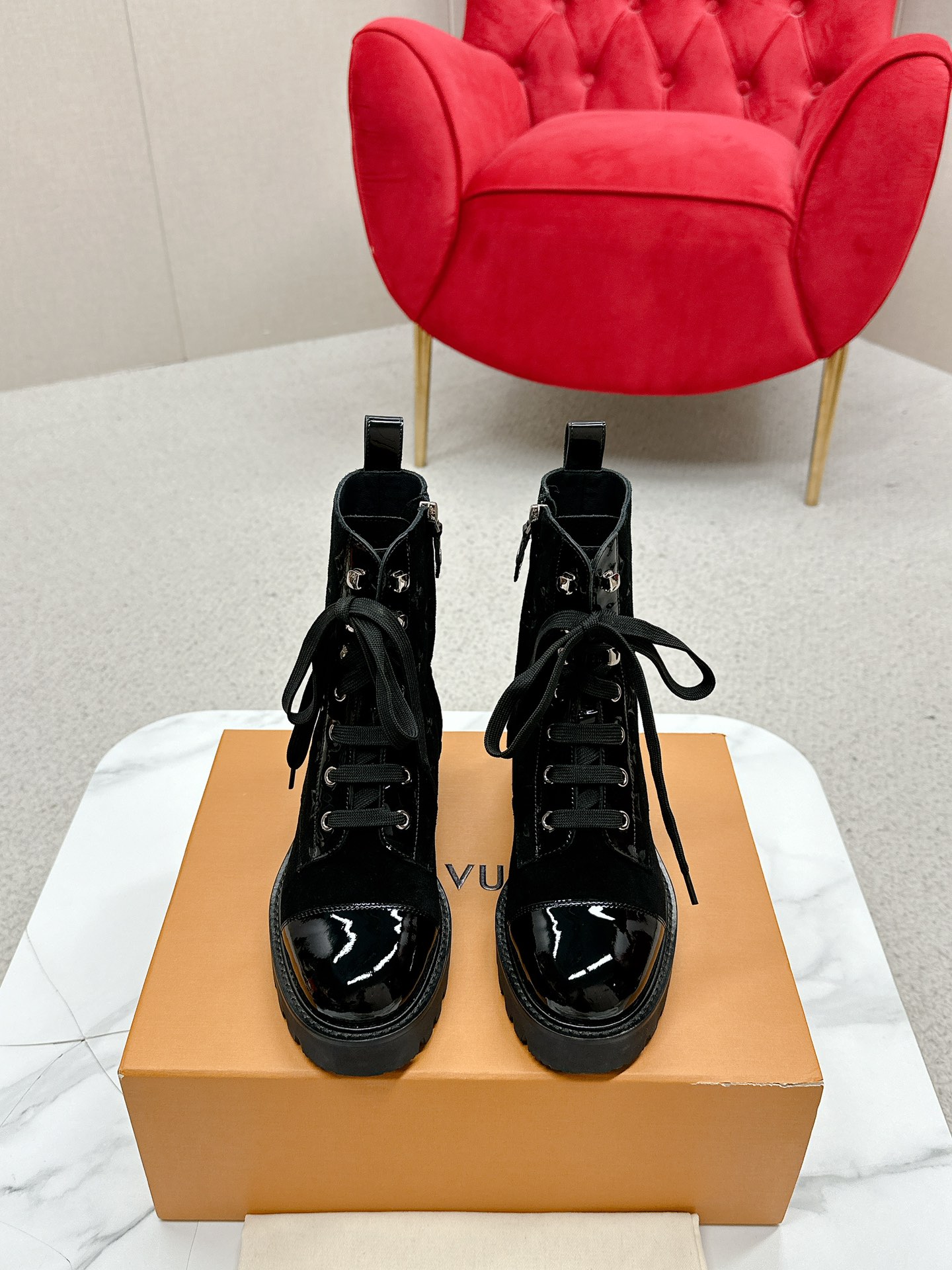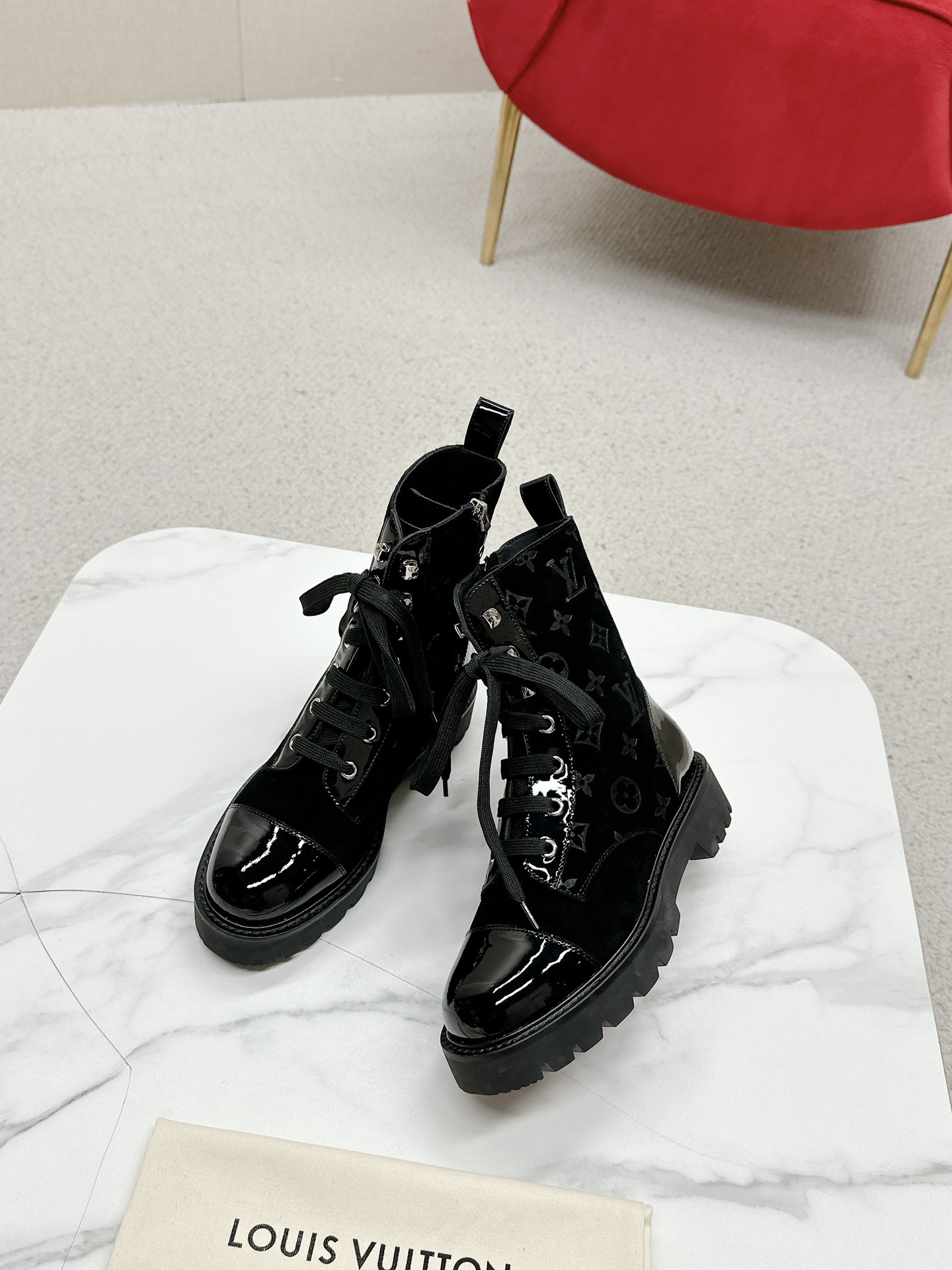 这款鞋子是AAAAA 1:1 质量 (非常棒). 使用了和原版一模一样的材料. 商标部分也保持了和路易威登/Louis Vuitton一样. 图片拍摄是实物鞋子拍摄, 您所收到的实物保证和我们图片一模一样.