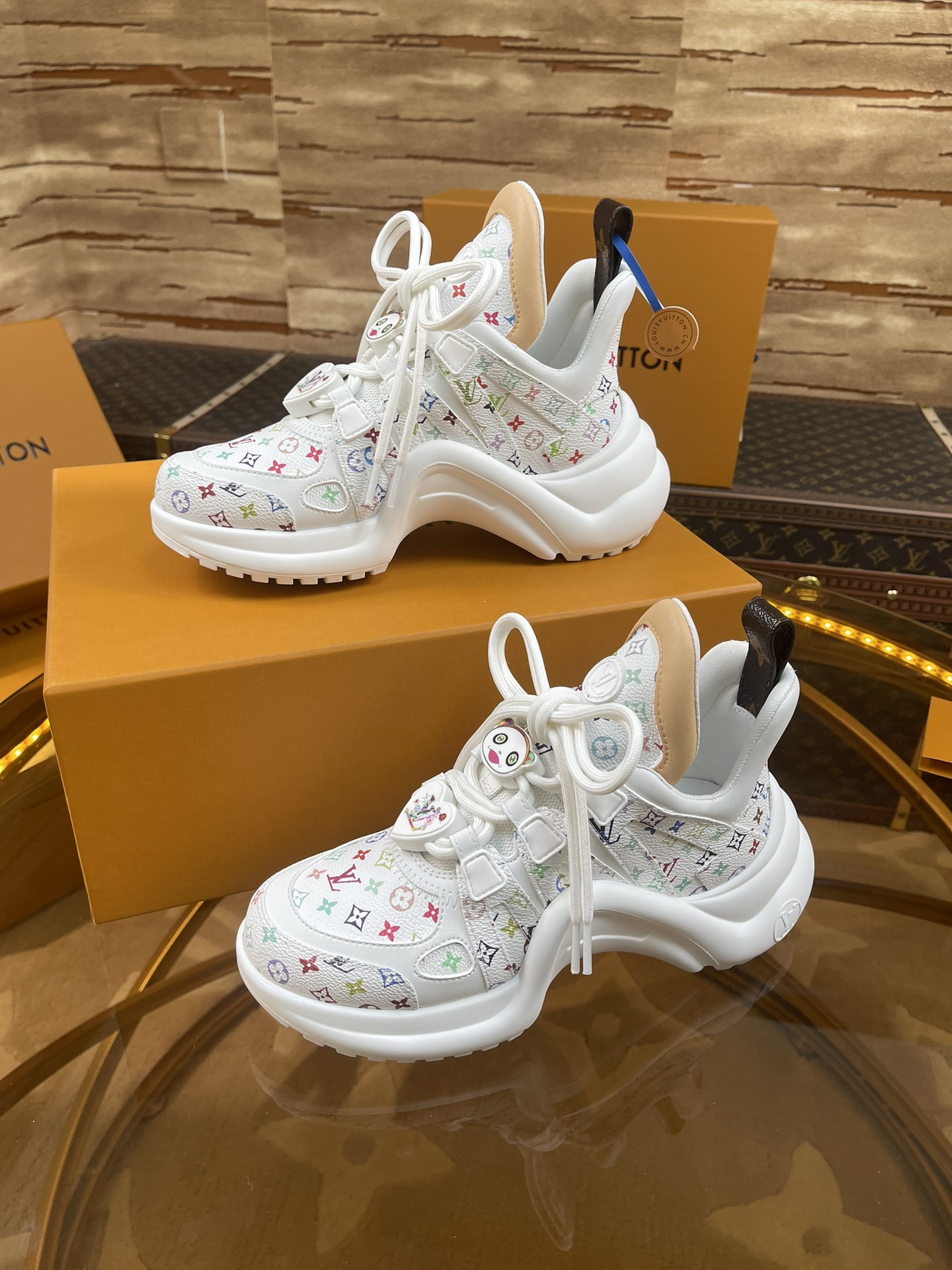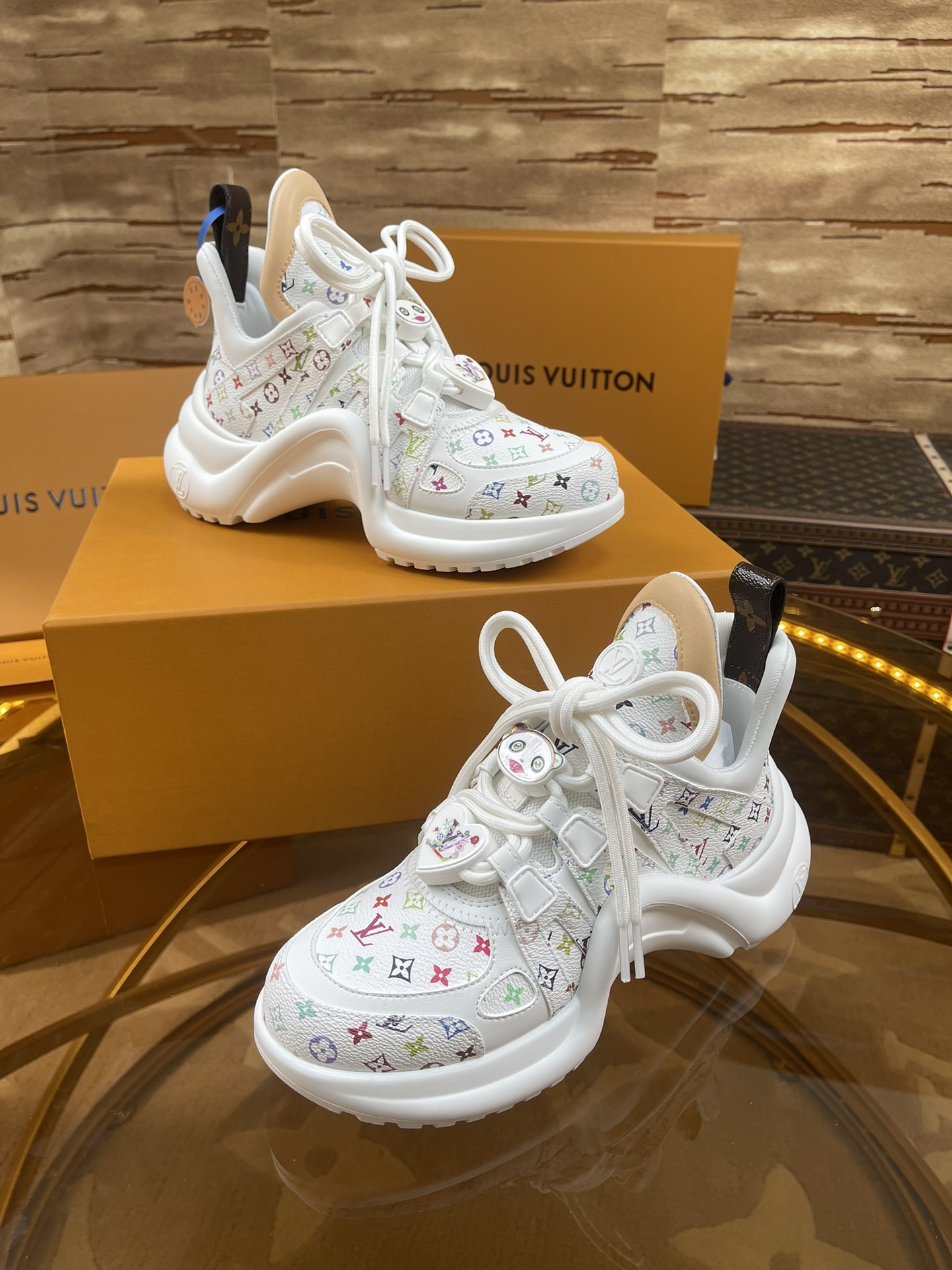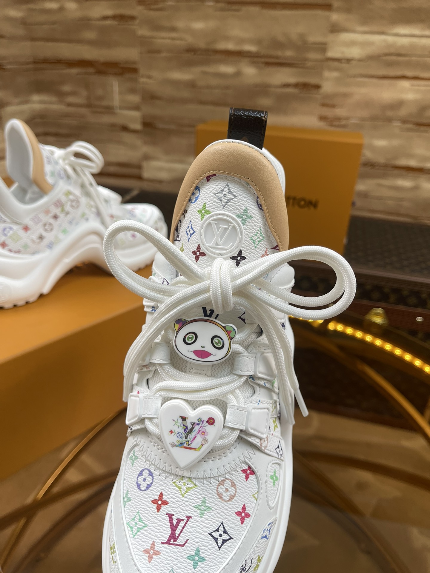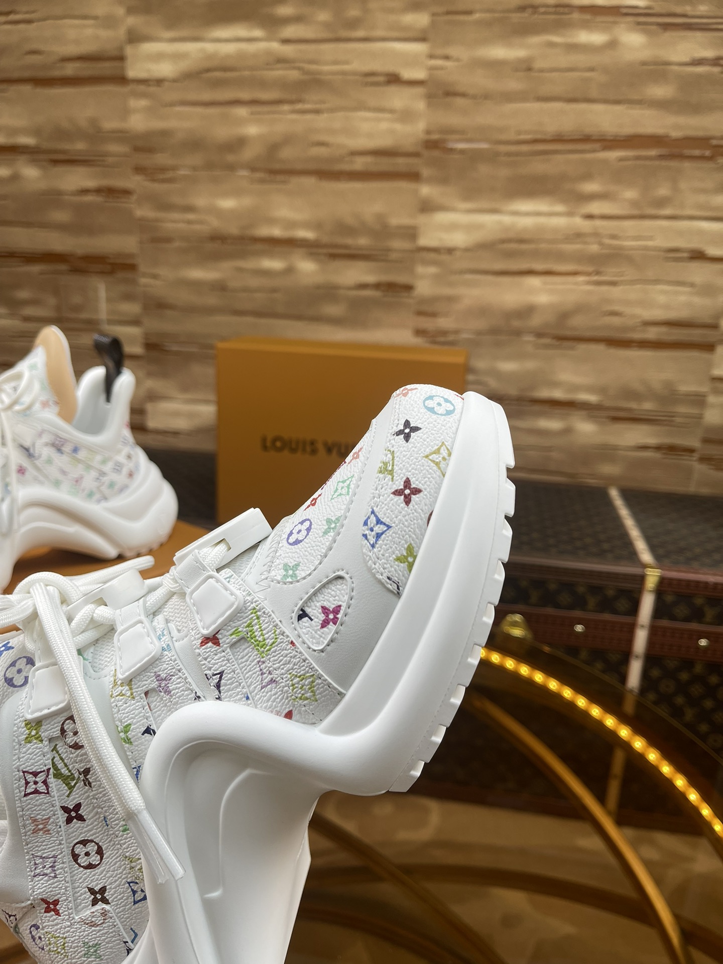 这款鞋子是AAAAA 1:1 质量 (非常棒). 使用了和原版一模一样的材料. 商标部分也保持了和路易威登/Louis Vuitton一样. 图片拍摄是实物鞋子拍摄, 您所收到的实物保证和我们图片一模一样.