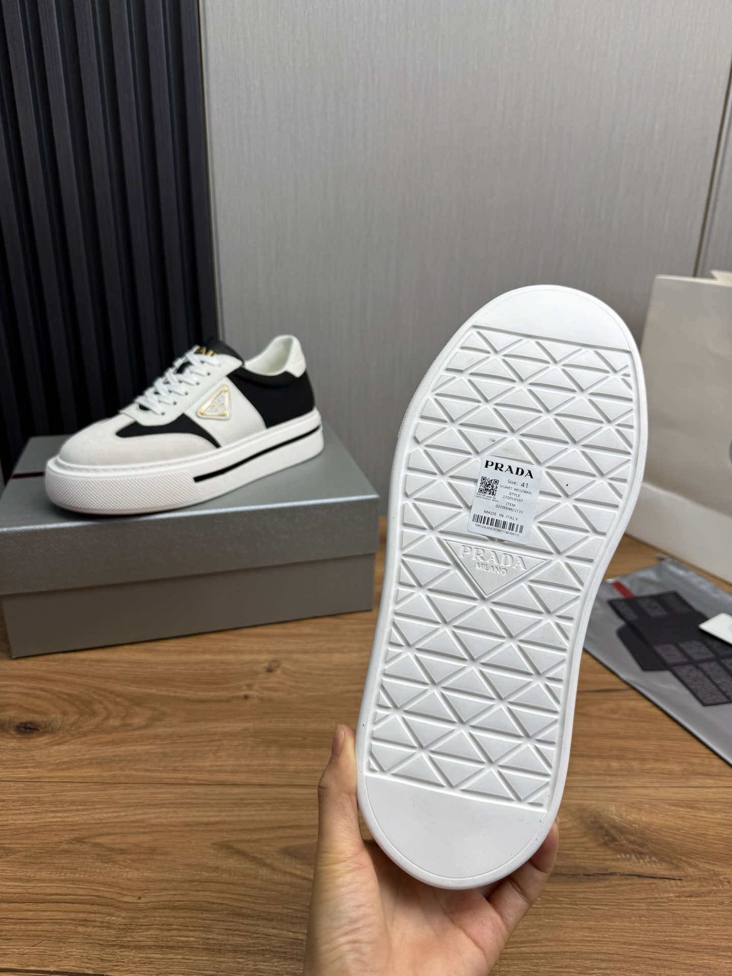 这款鞋子是AAAAA 1:1 质量 (非常棒). 使用了和原版一模一样的材料. 商标部分也保持了和普拉达/Prada一样. 图片拍摄是实物鞋子拍摄, 您所收到的实物保证和我们图片一模一样.