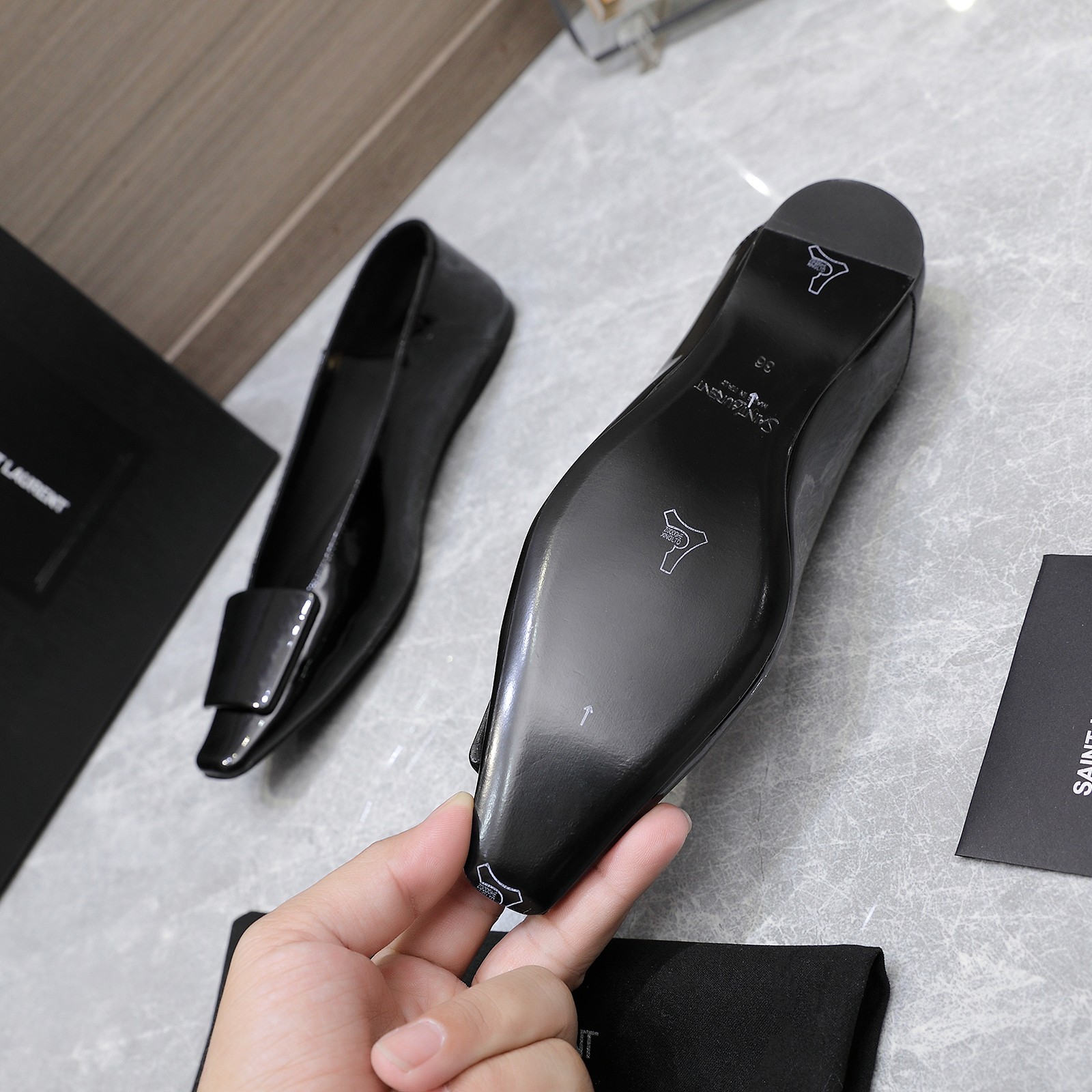 这款鞋子是AAAAA 1:1 质量 (非常棒). 使用了和原版一模一样的材料. 商标部分也保持了和圣罗兰/Saint Laurent一样. 图片拍摄是实物鞋子拍摄, 您所收到的实物保证和我们图片一模一样.
