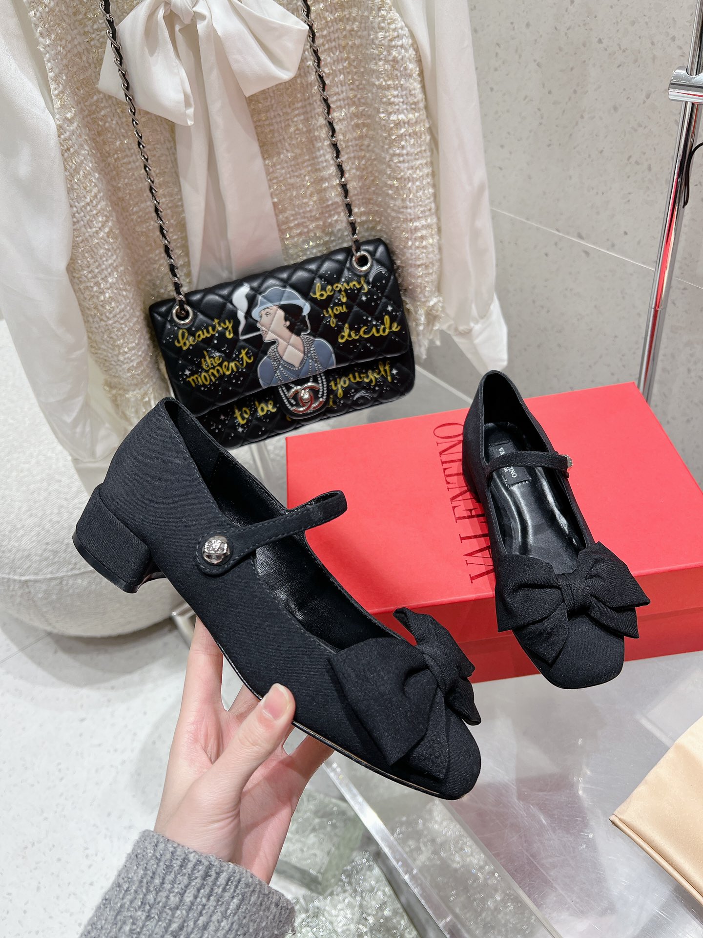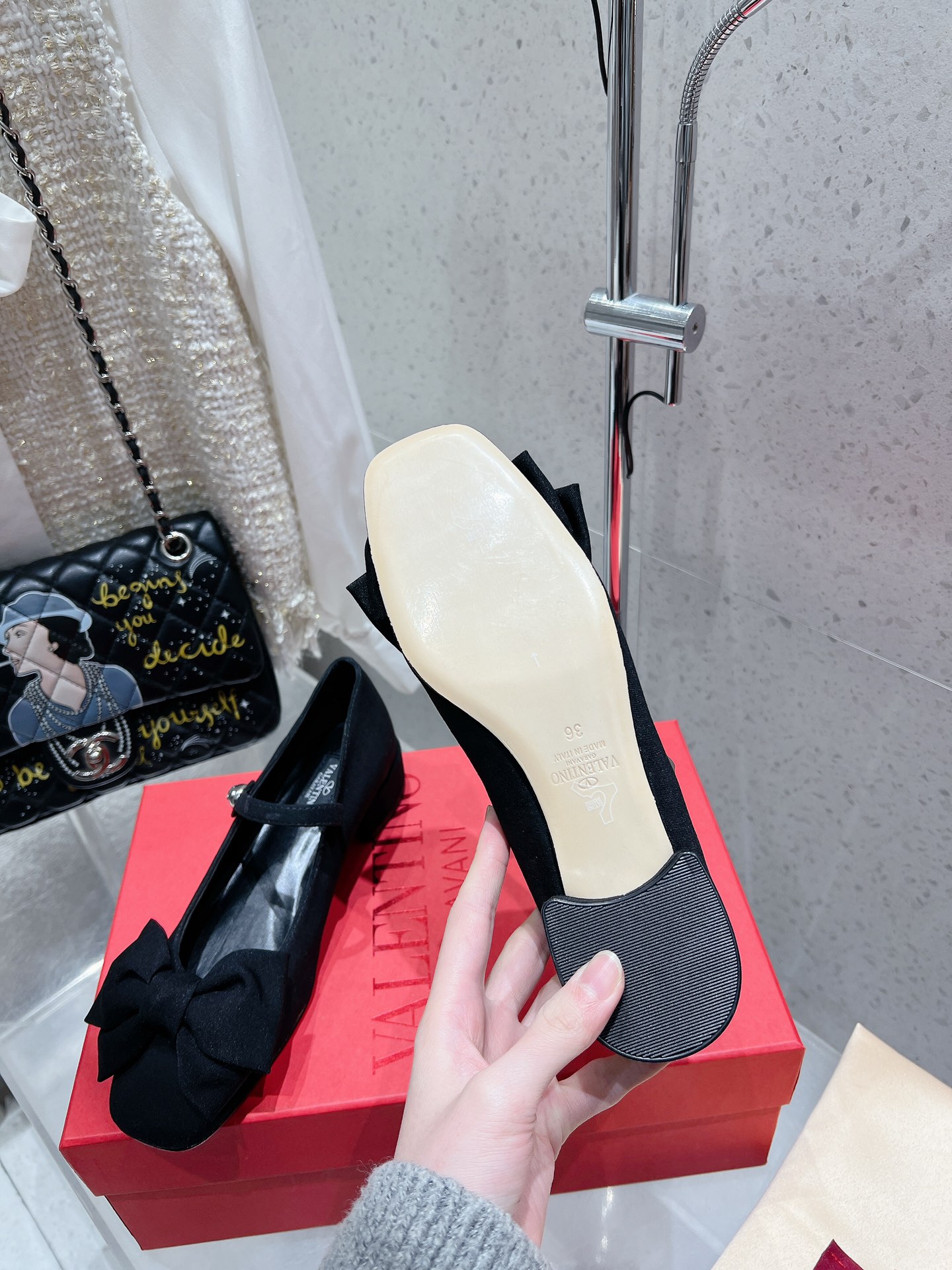 这款鞋子是AAAAA 1:1 质量 (非常棒). 使用了和原版一模一样的材料. 商标部分也保持了和华伦天奴/Valentino一样. 图片拍摄是实物鞋子拍摄, 您所收到的实物保证和我们图片一模一样.