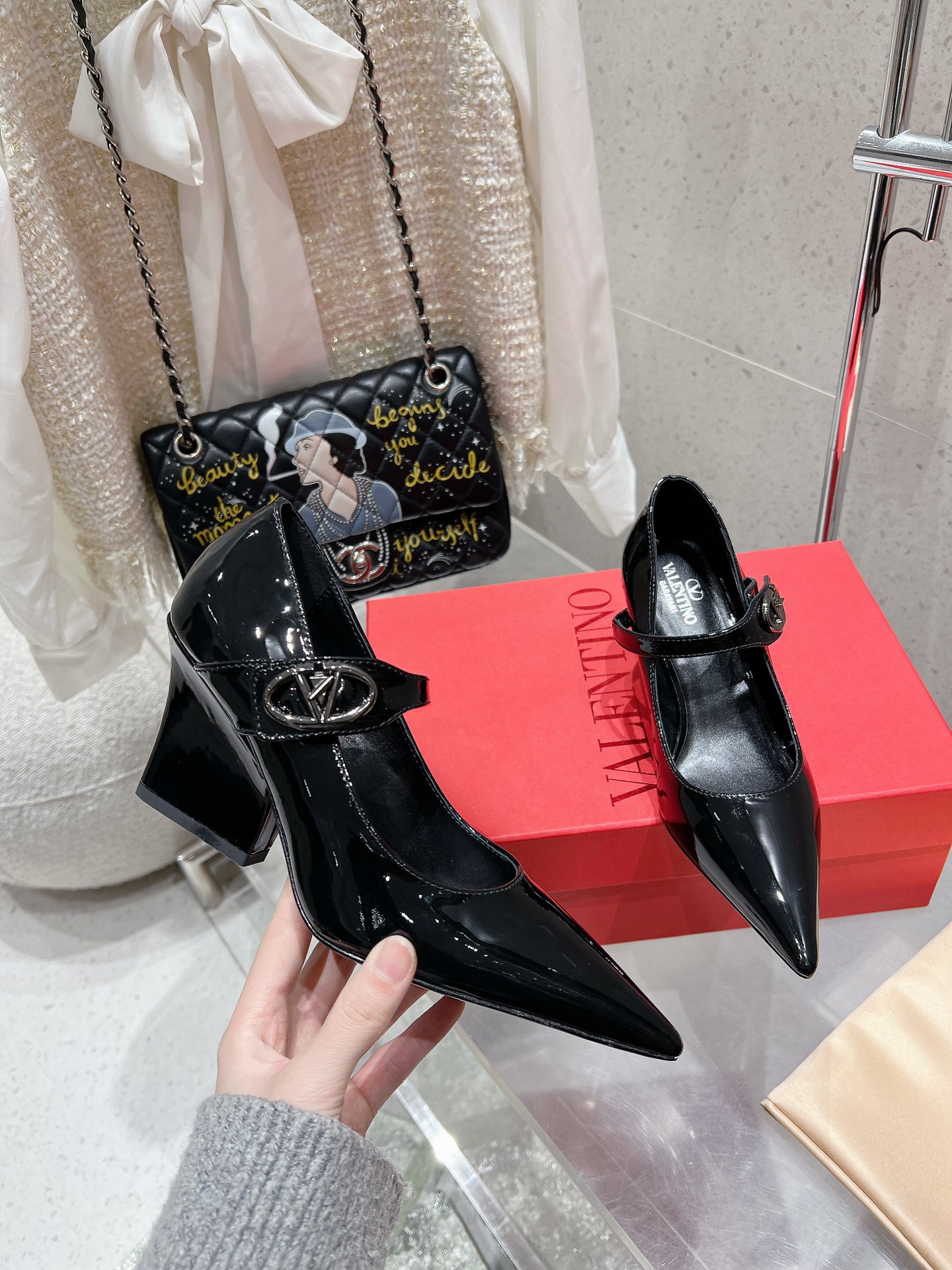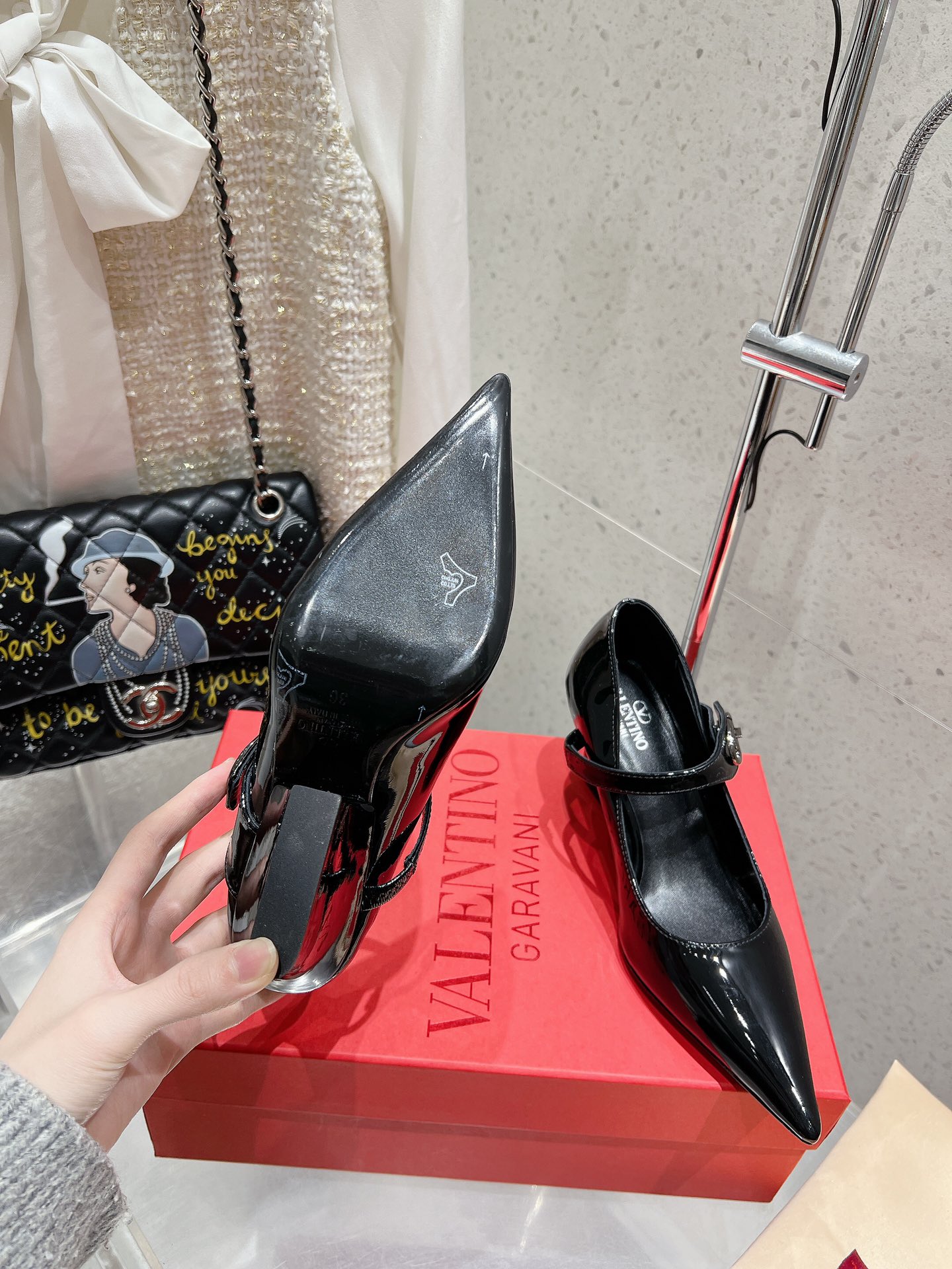 这款鞋子是AAAAA 1:1 质量 (非常棒). 使用了和原版一模一样的材料. 商标部分也保持了和华伦天奴/Valentino一样. 图片拍摄是实物鞋子拍摄, 您所收到的实物保证和我们图片一模一样.