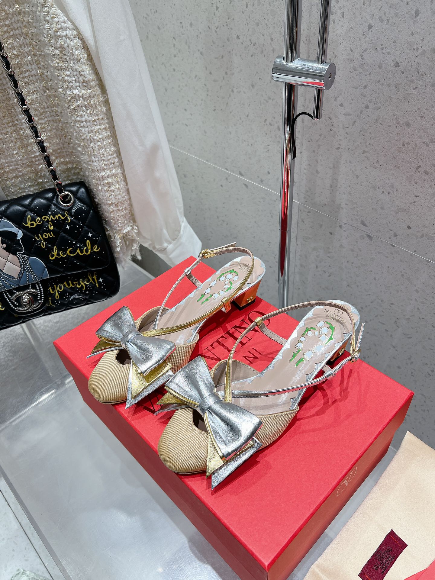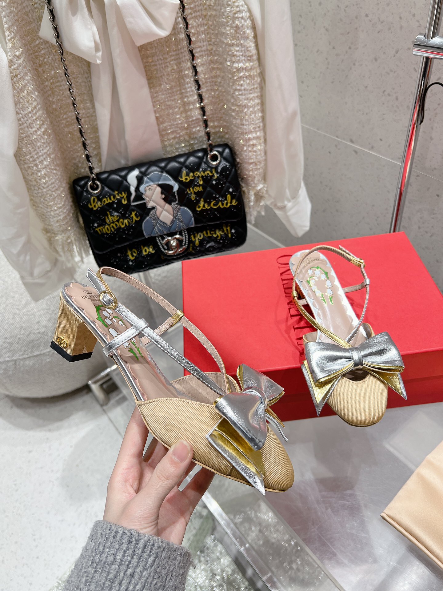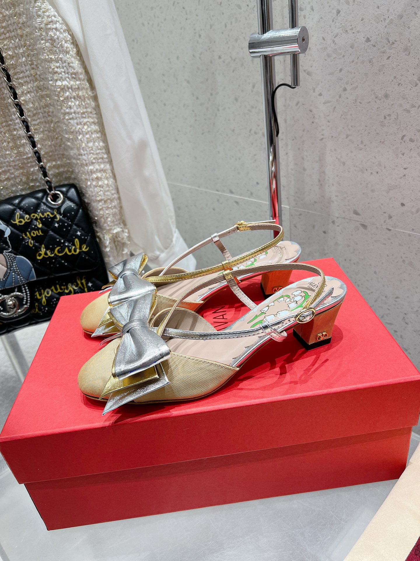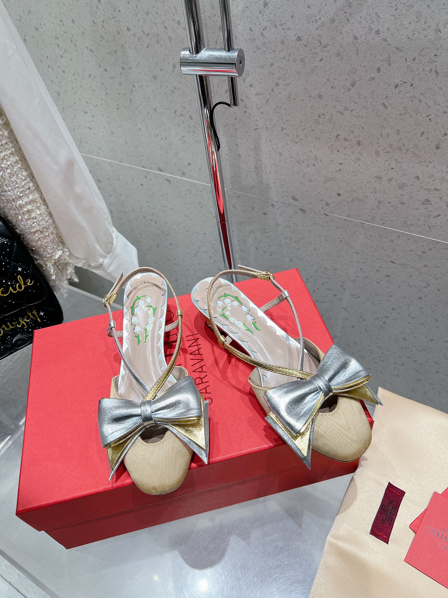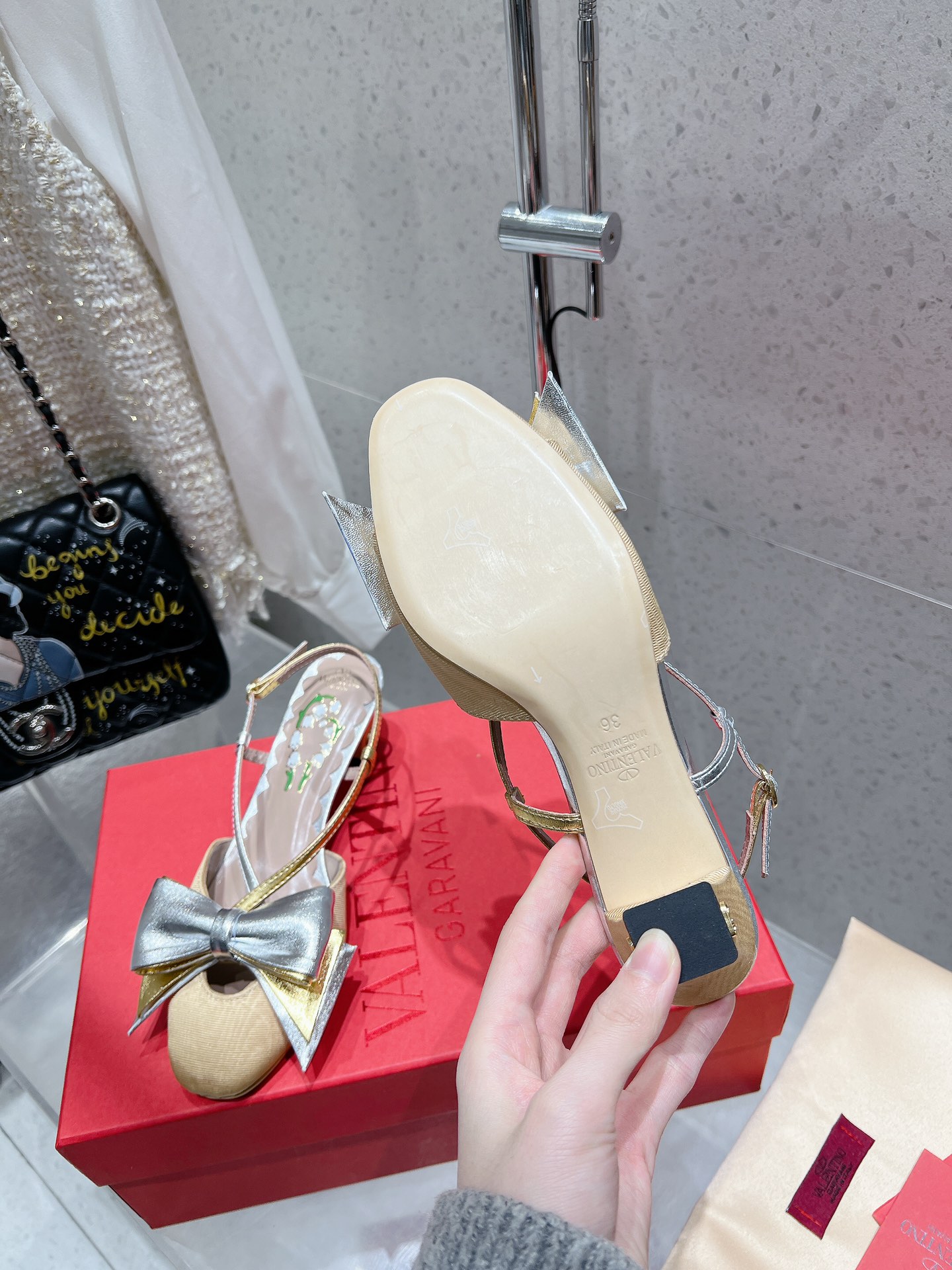 这款鞋子是AAAAA 1:1 质量 (非常棒). 使用了和原版一模一样的材料. 商标部分也保持了和华伦天奴/Valentino一样. 图片拍摄是实物鞋子拍摄, 您所收到的实物保证和我们图片一模一样.