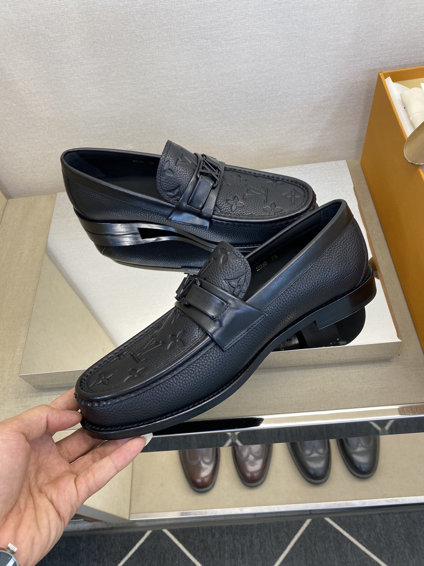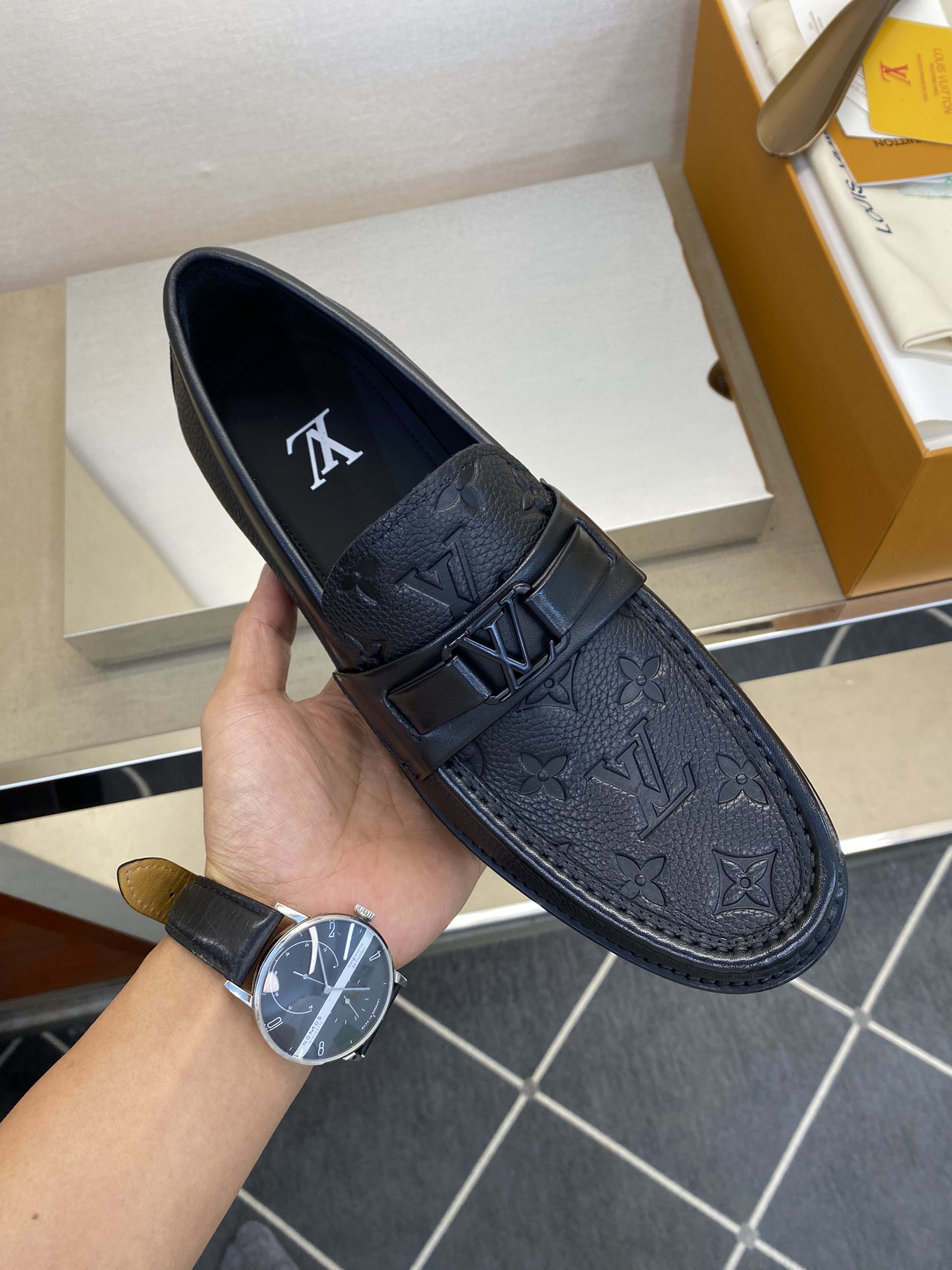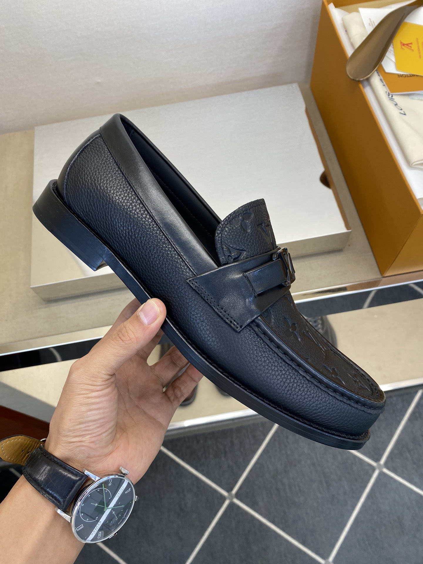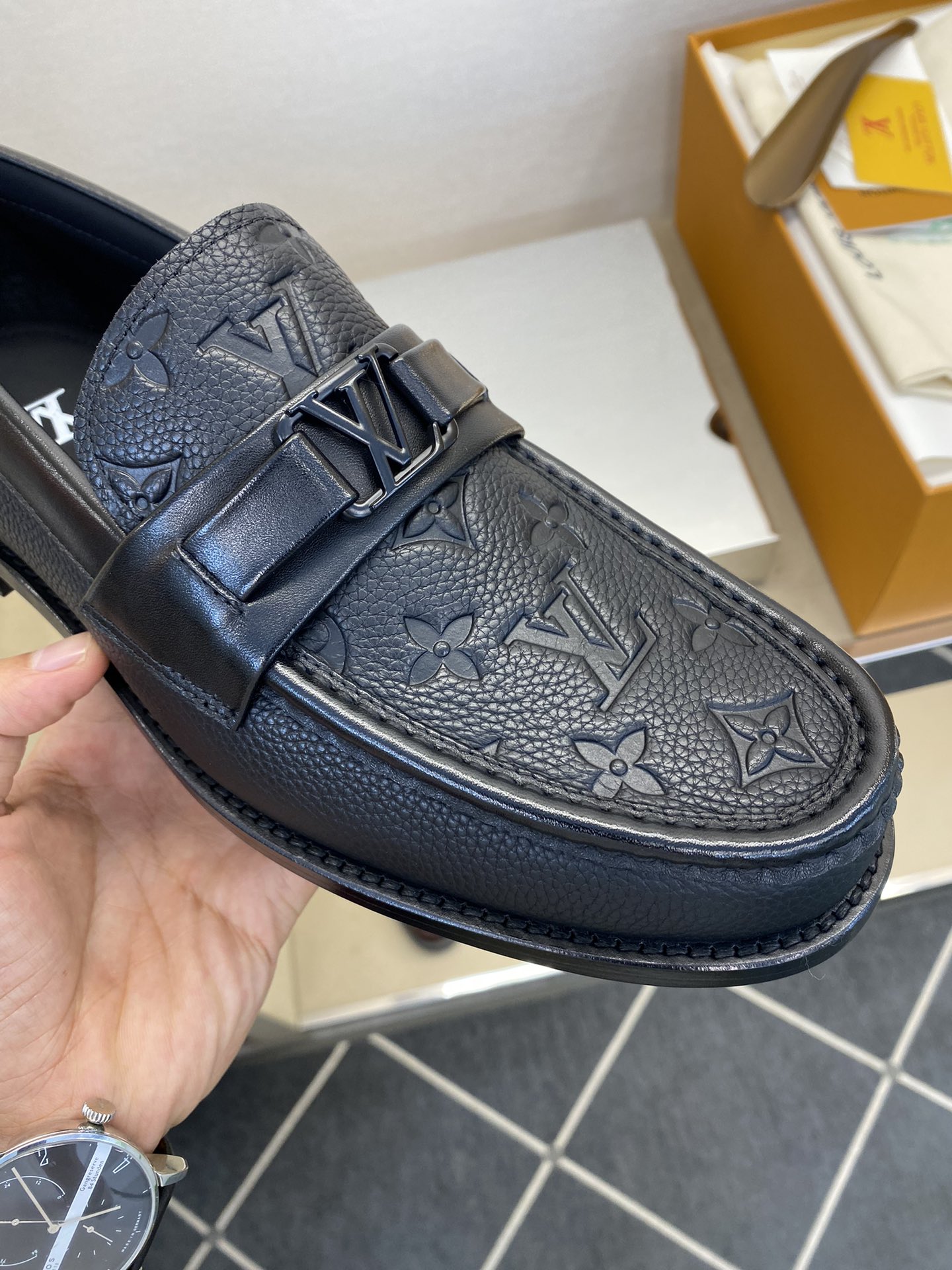 这款鞋子是AAAAA 1:1 质量 (非常棒). 使用了和原版一模一样的材料. 商标部分也保持了和阿玛尼/Armani一样. 图片拍摄是实物鞋子拍摄, 您所收到的实物保证和我们图片一模一样.