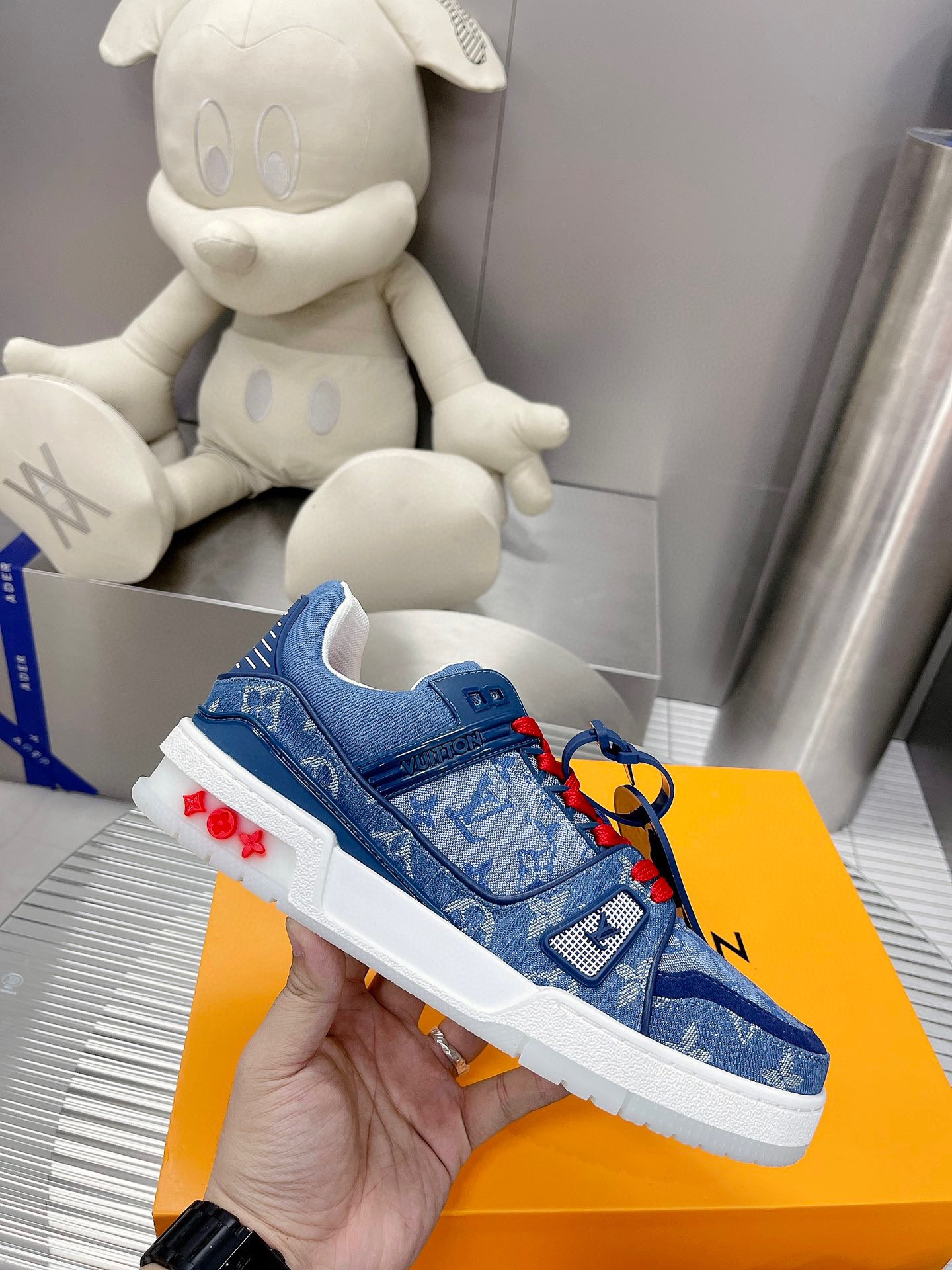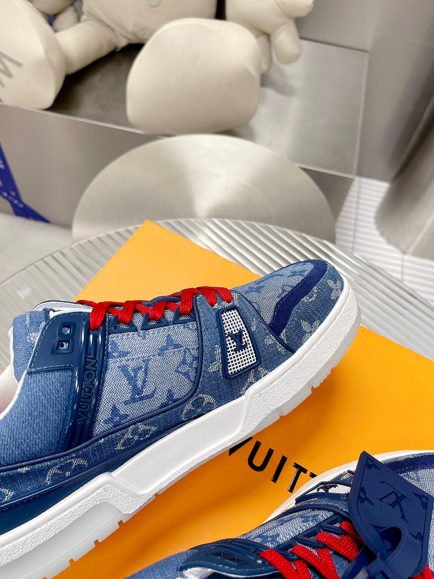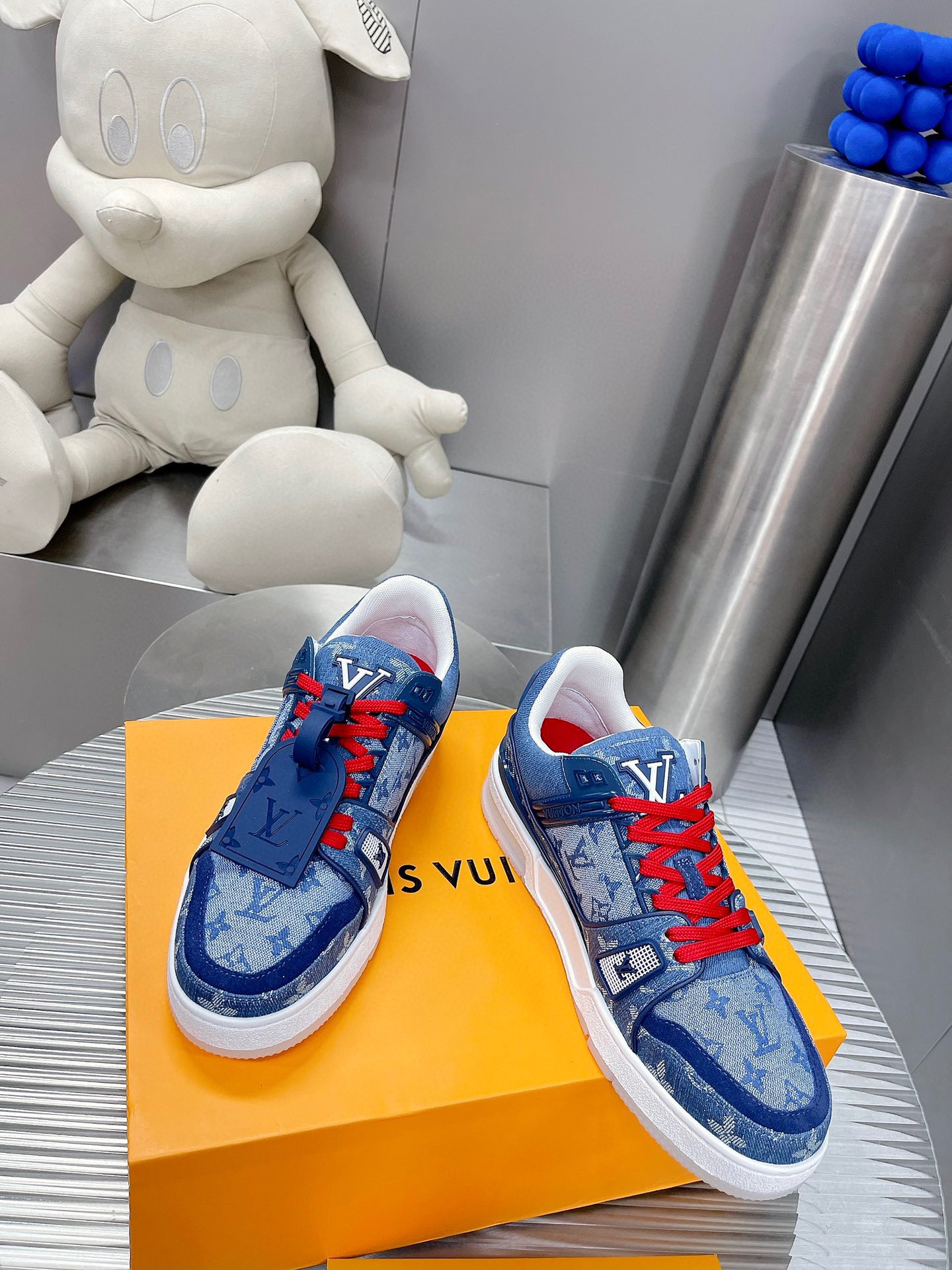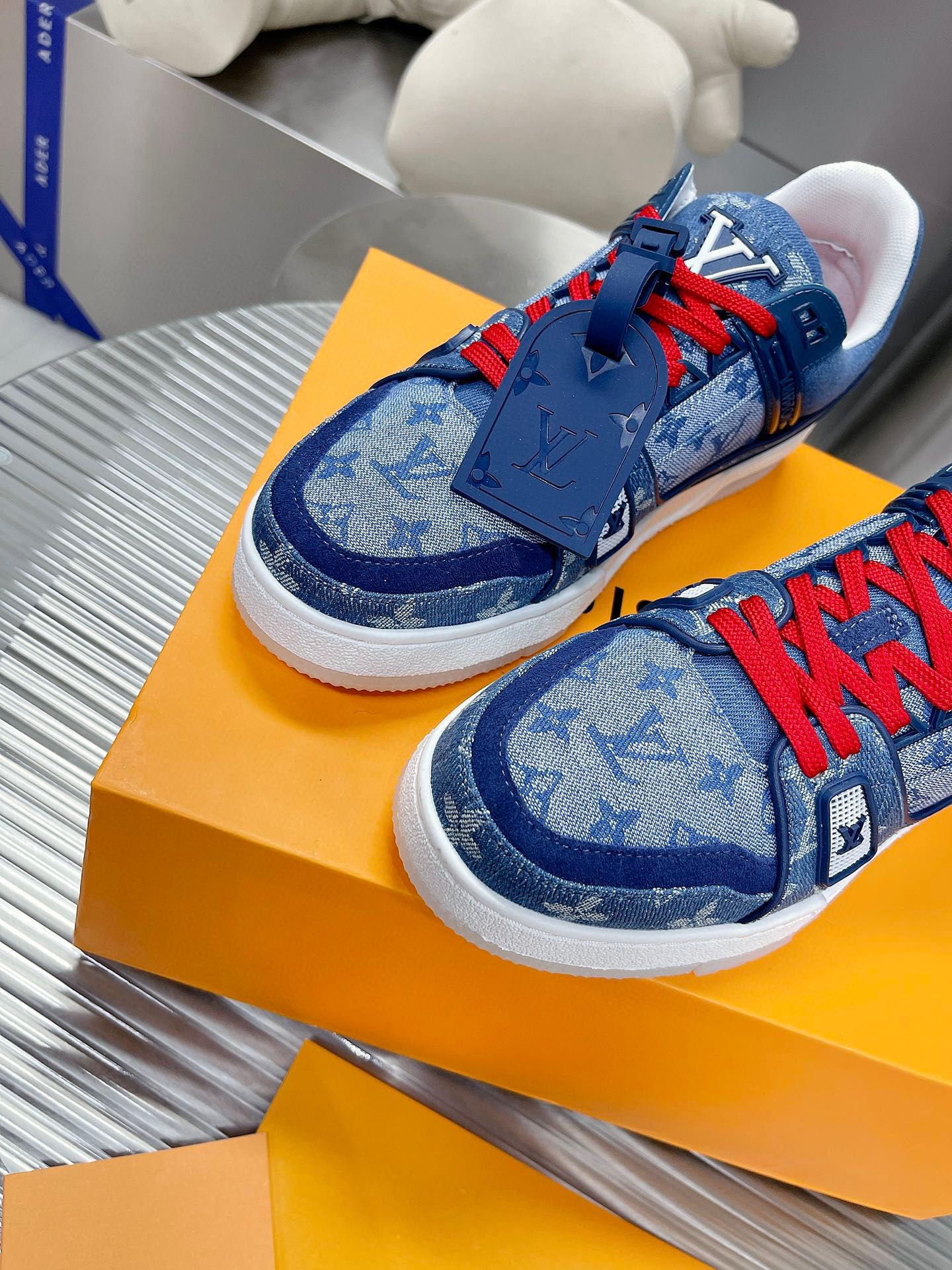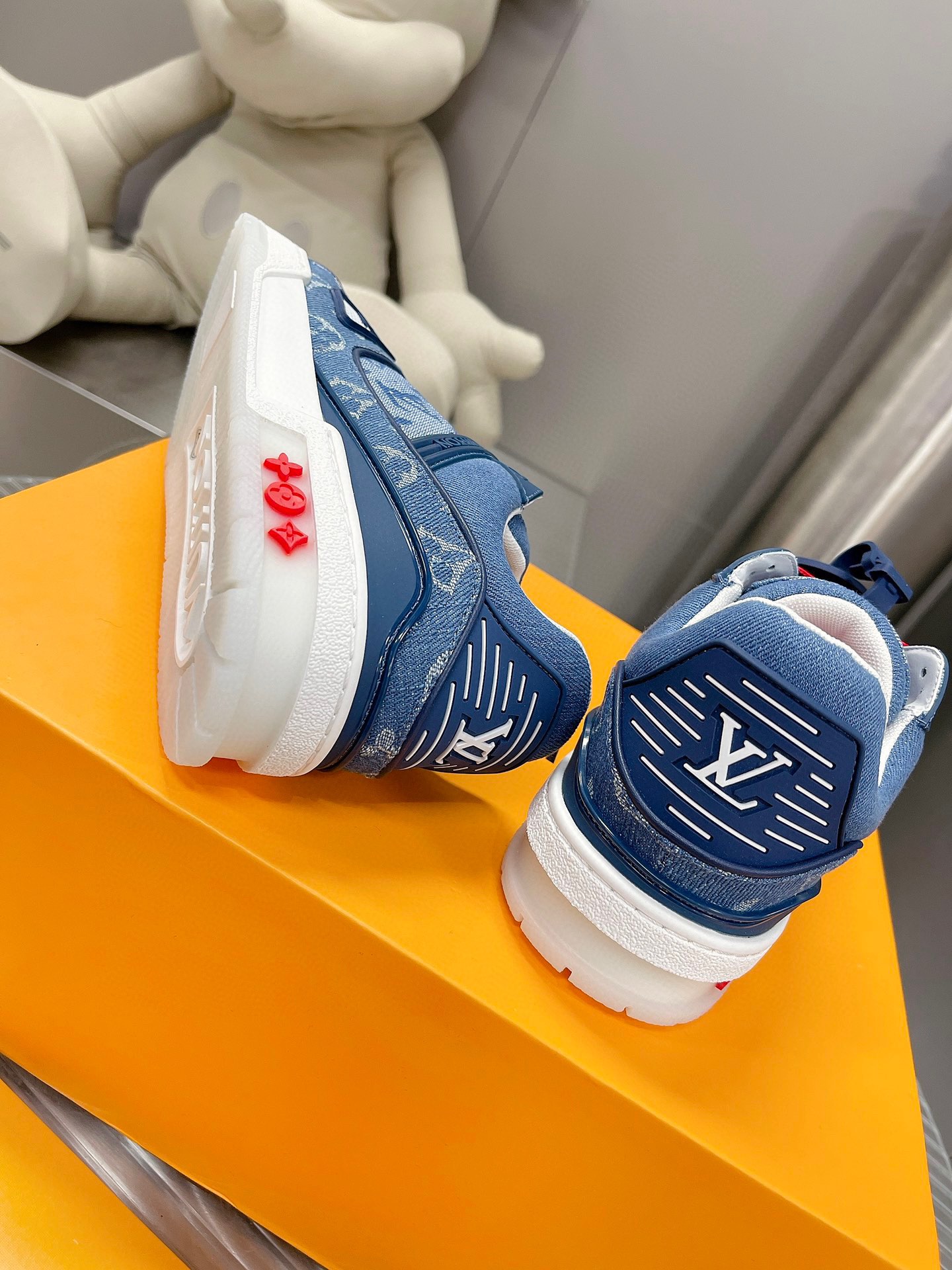 这款鞋子是AAAAA 1:1 质量 (非常棒). 使用了和原版一模一样的材料. 商标部分也保持了和路易威登/Louis Vuitton一样. 图片拍摄是实物鞋子拍摄, 您所收到的实物保证和我们图片一模一样.