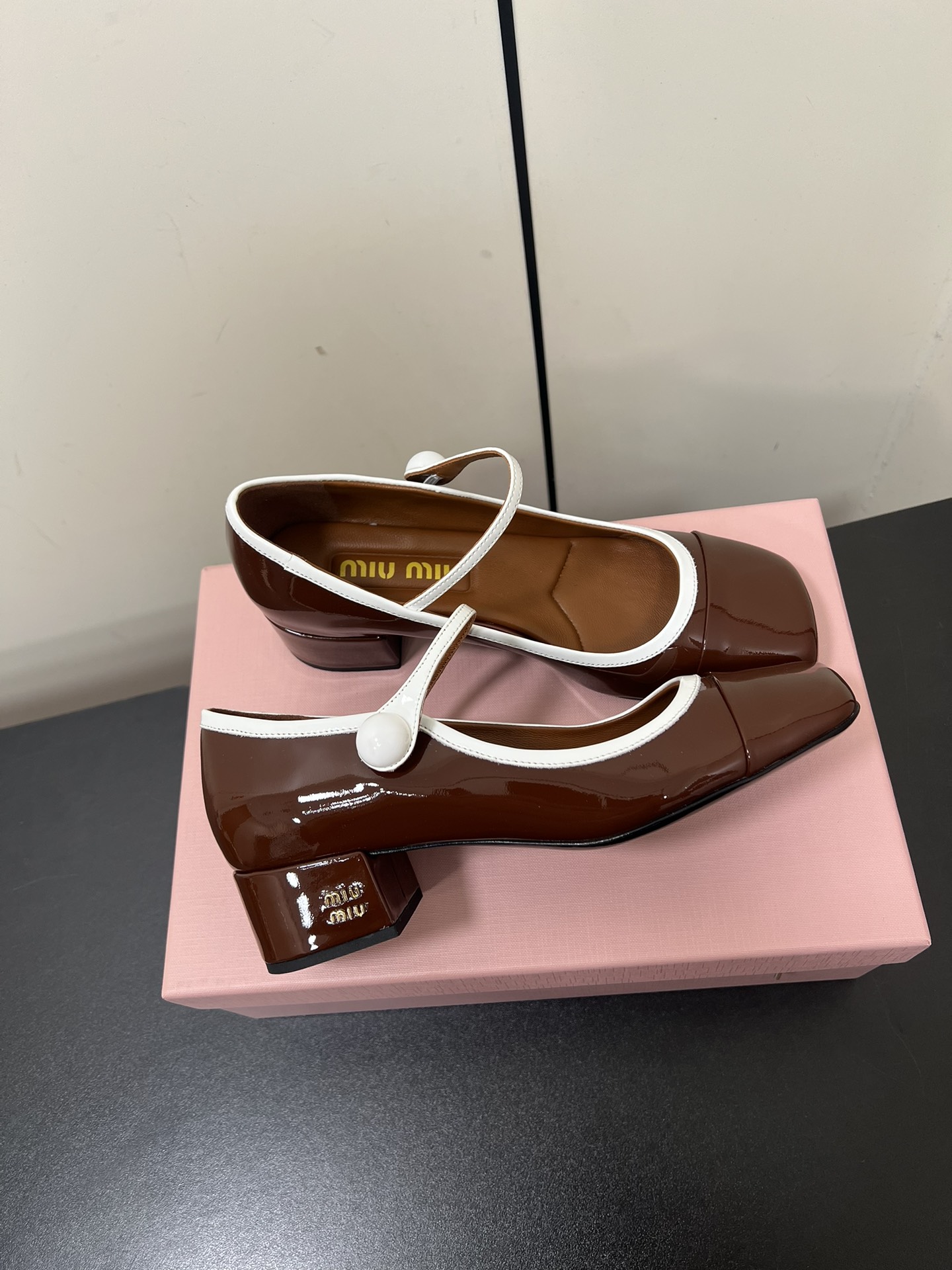 这款鞋子是AAAAA 1:1 质量 (非常棒). 使用了和原版一模一样的材料. 商标部分也保持了和缪缪/Miu Miu一样. 图片拍摄是实物鞋子拍摄, 您所收到的实物保证和我们图片一模一样.