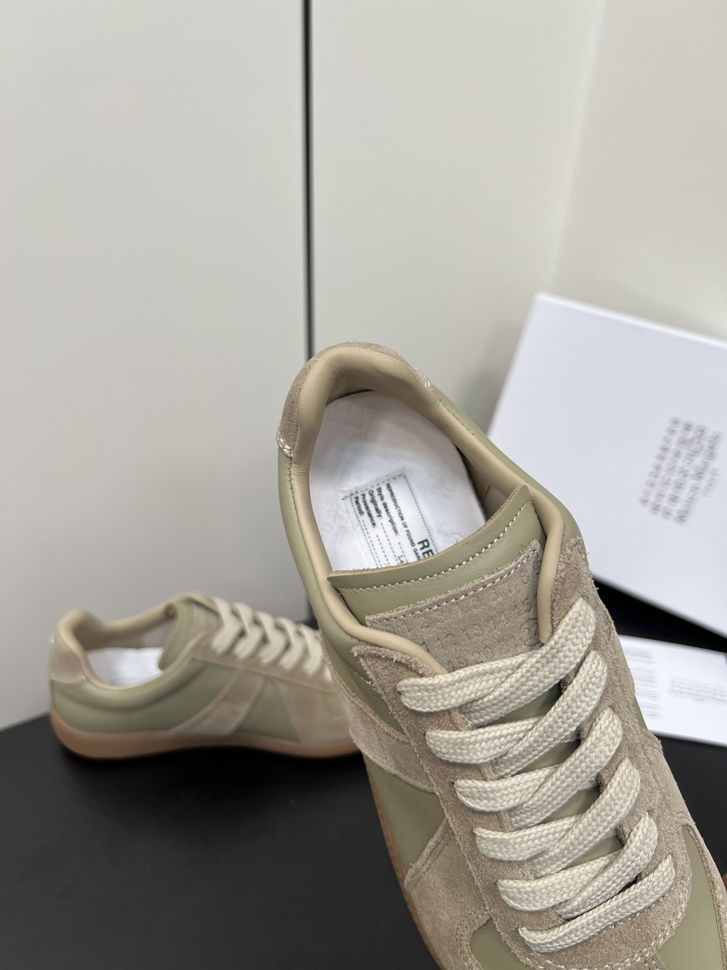 这款鞋子是AAAAA 1:1 质量 (非常棒). 使用了和原版一模一样的材料. 商标部分也保持了和Maison Margiela一样. 图片拍摄是实物鞋子拍摄, 您所收到的实物保证和我们图片一模一样.