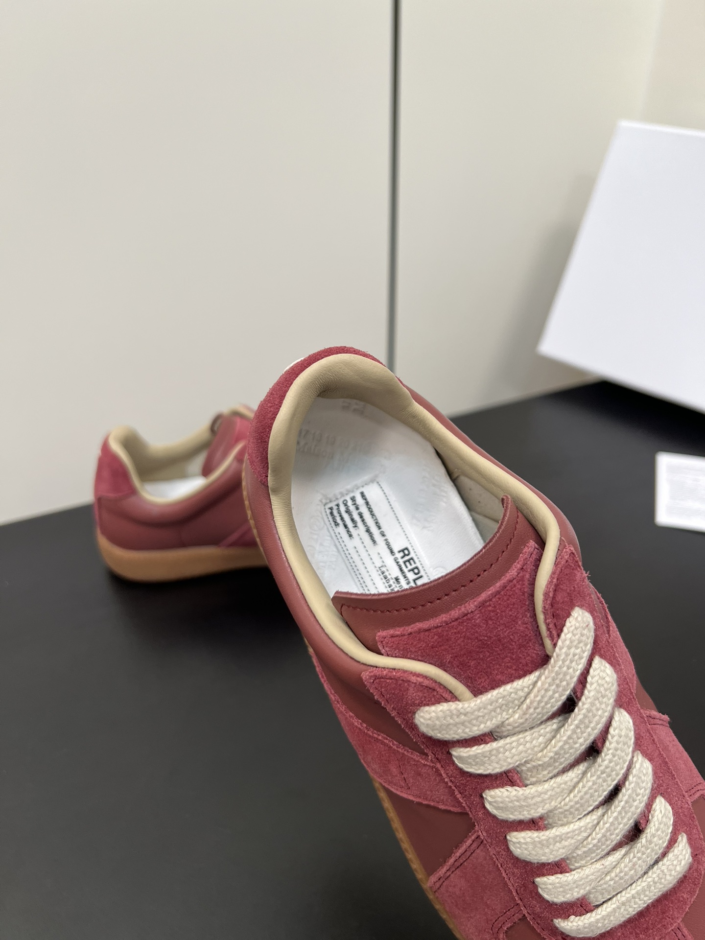这款鞋子是AAAAA 1:1 质量 (非常棒). 使用了和原版一模一样的材料. 商标部分也保持了和Maison Margiela一样. 图片拍摄是实物鞋子拍摄, 您所收到的实物保证和我们图片一模一样.