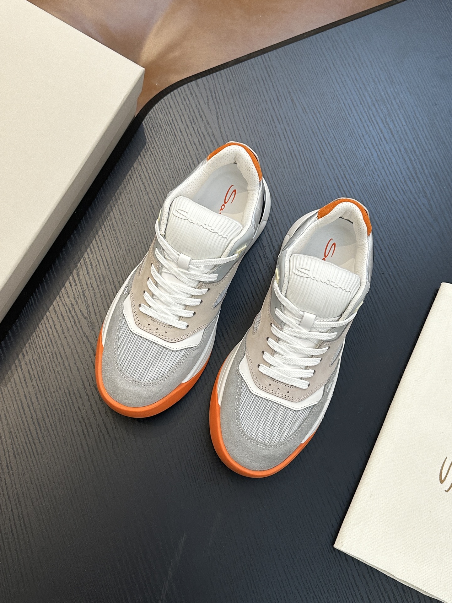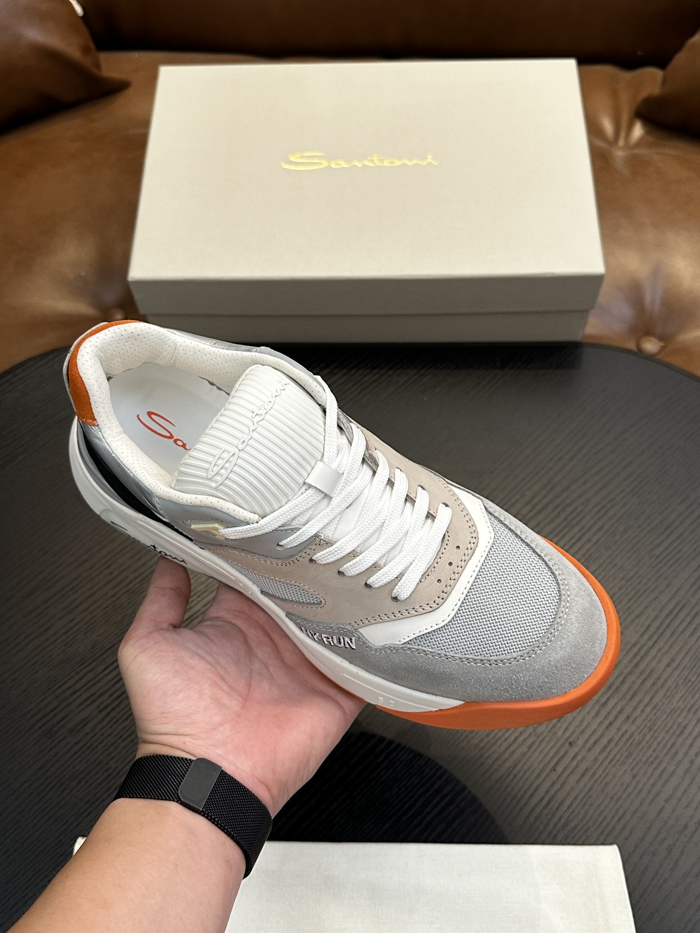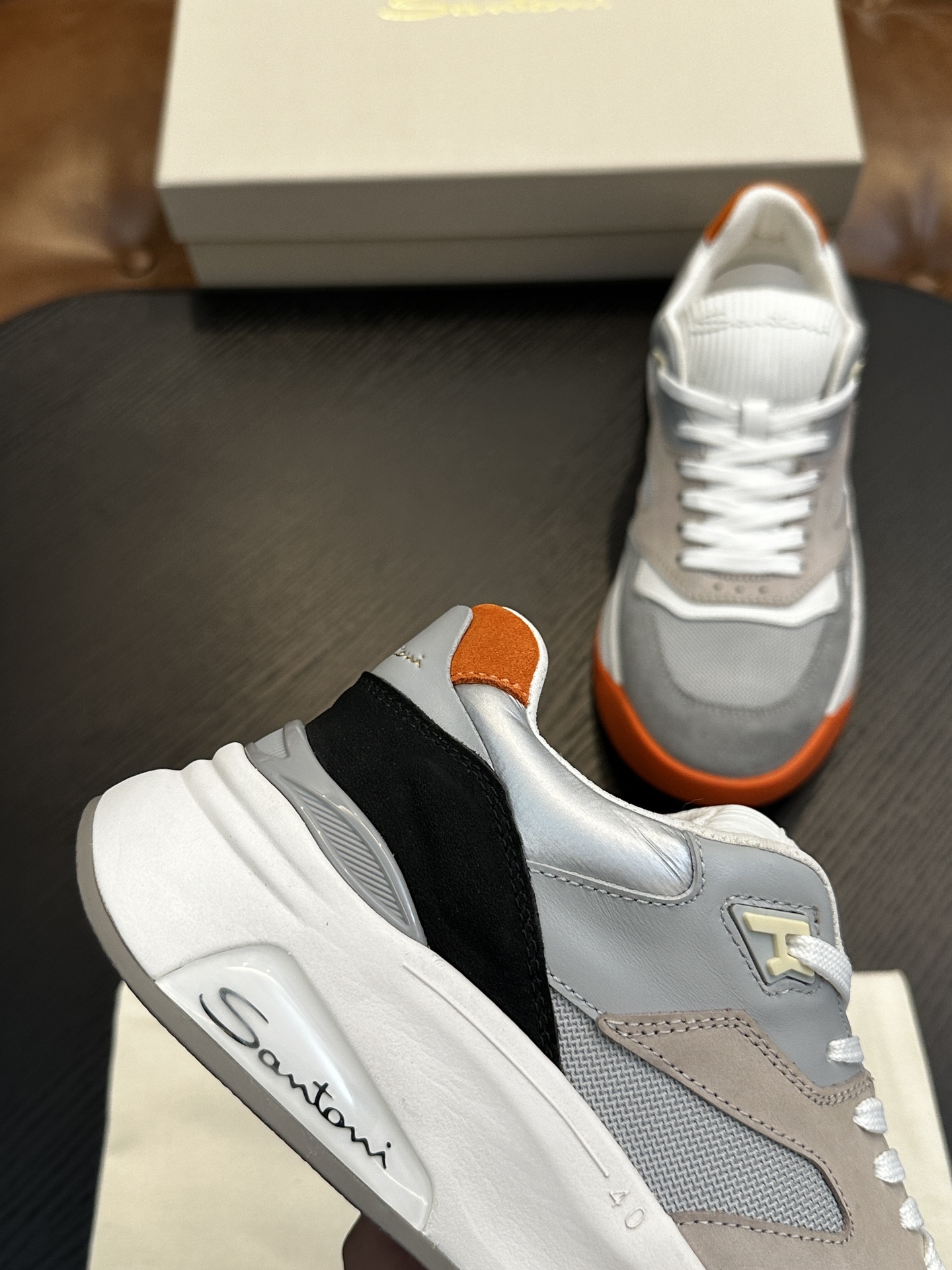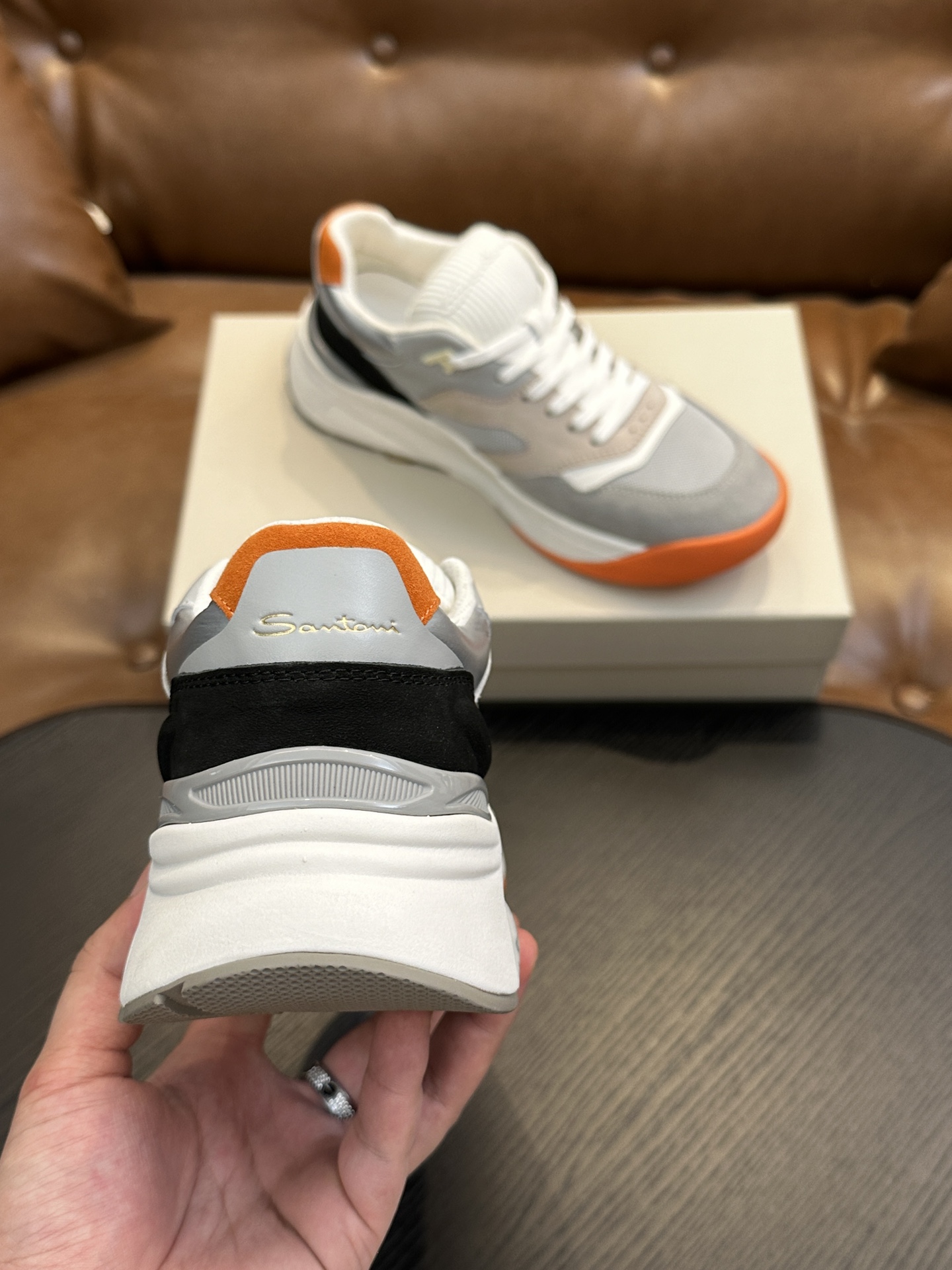 这款鞋子是AAAAA 1:1 质量 (非常棒). 使用了和原版一模一样的材料. 商标部分也保持了和Santoni一样. 图片拍摄是实物鞋子拍摄, 您所收到的实物保证和我们图片一模一样.