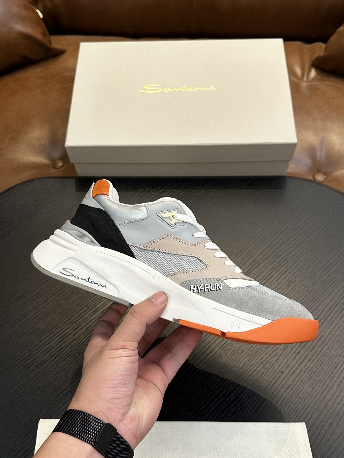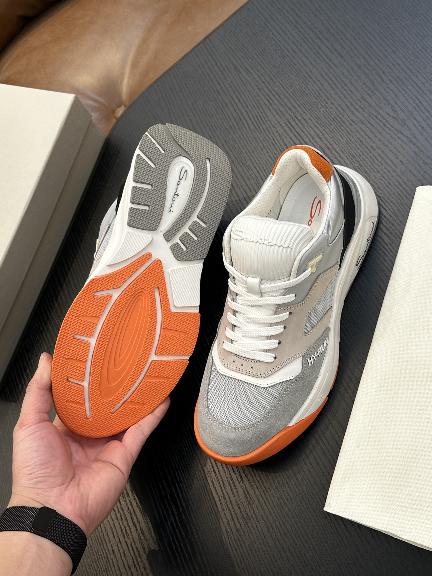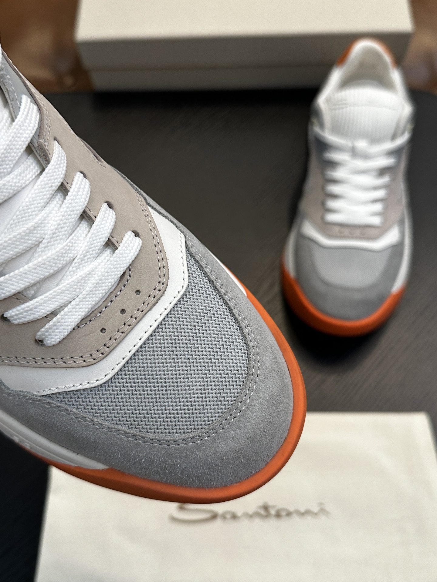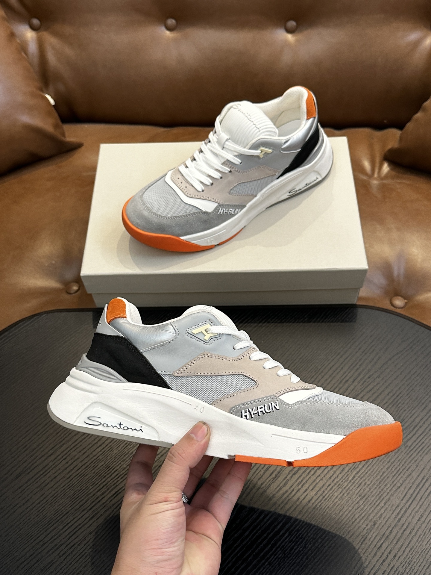 这款鞋子是AAAAA 1:1 质量 (非常棒). 使用了和原版一模一样的材料. 商标部分也保持了和Santoni一样. 图片拍摄是实物鞋子拍摄, 您所收到的实物保证和我们图片一模一样.