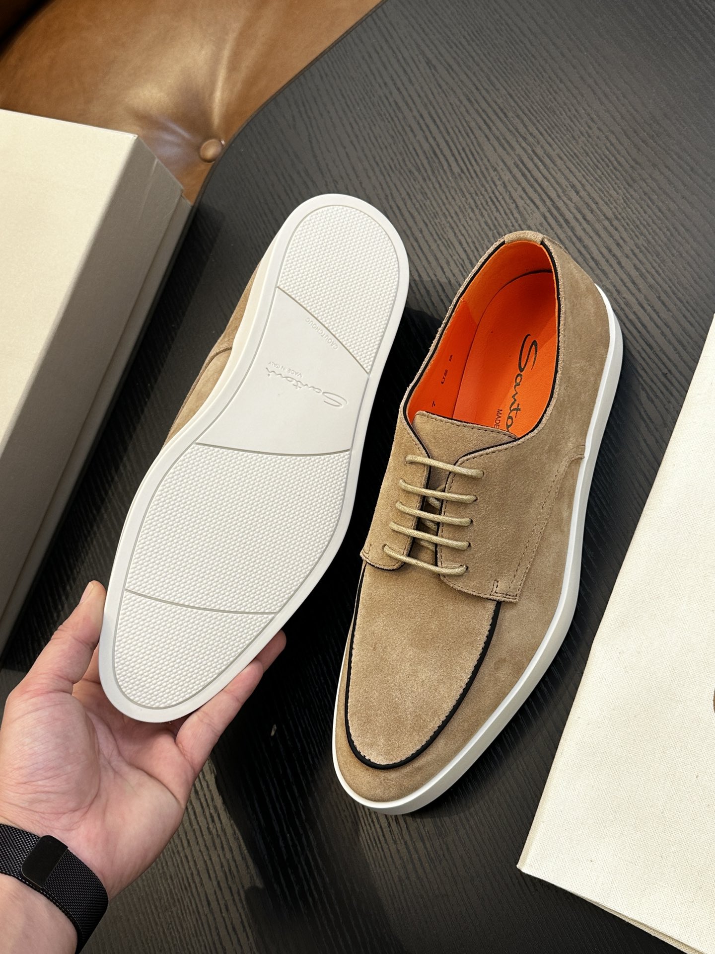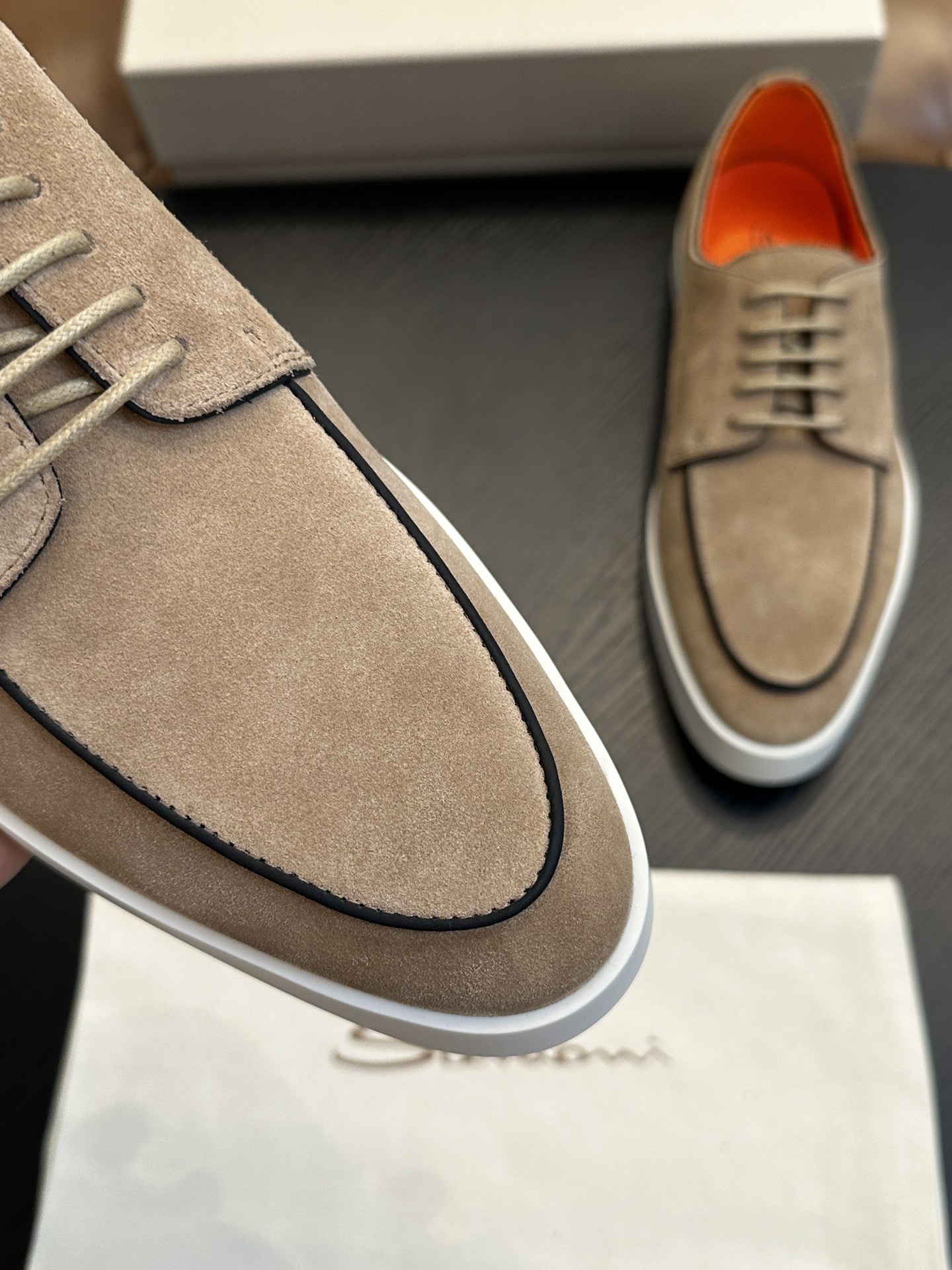 这款鞋子是AAAAA 1:1 质量 (非常棒). 使用了和原版一模一样的材料. 商标部分也保持了和Santoni一样. 图片拍摄是实物鞋子拍摄, 您所收到的实物保证和我们图片一模一样.