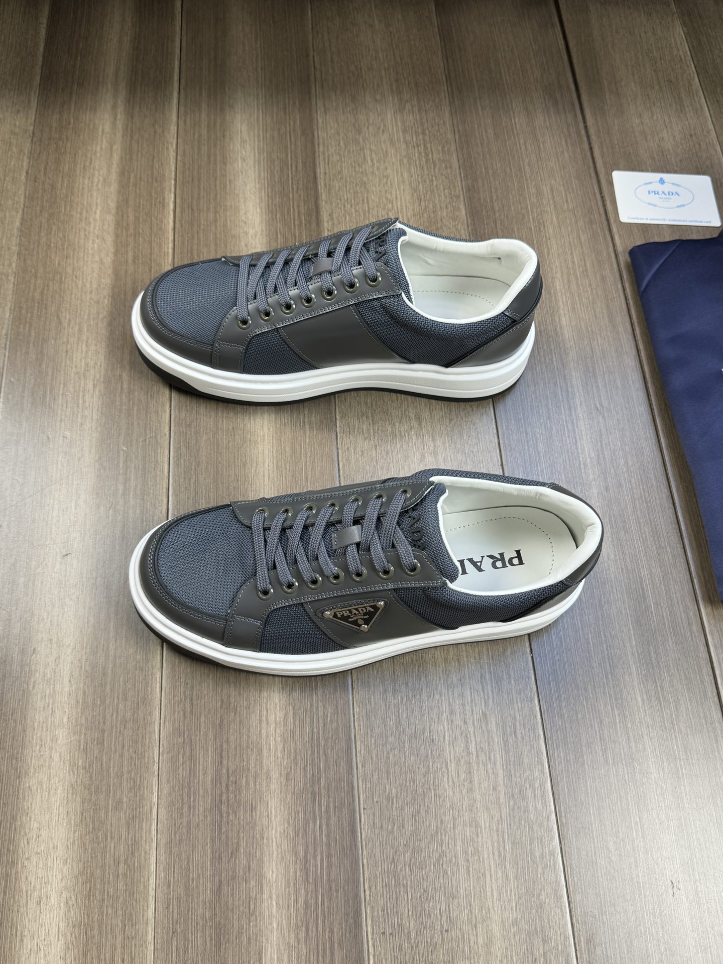 这款鞋子是AAAAA 1:1 质量 (非常棒). 使用了和原版一模一样的材料. 商标部分也保持了和普拉达/Prada一样. 图片拍摄是实物鞋子拍摄, 您所收到的实物保证和我们图片一模一样.
